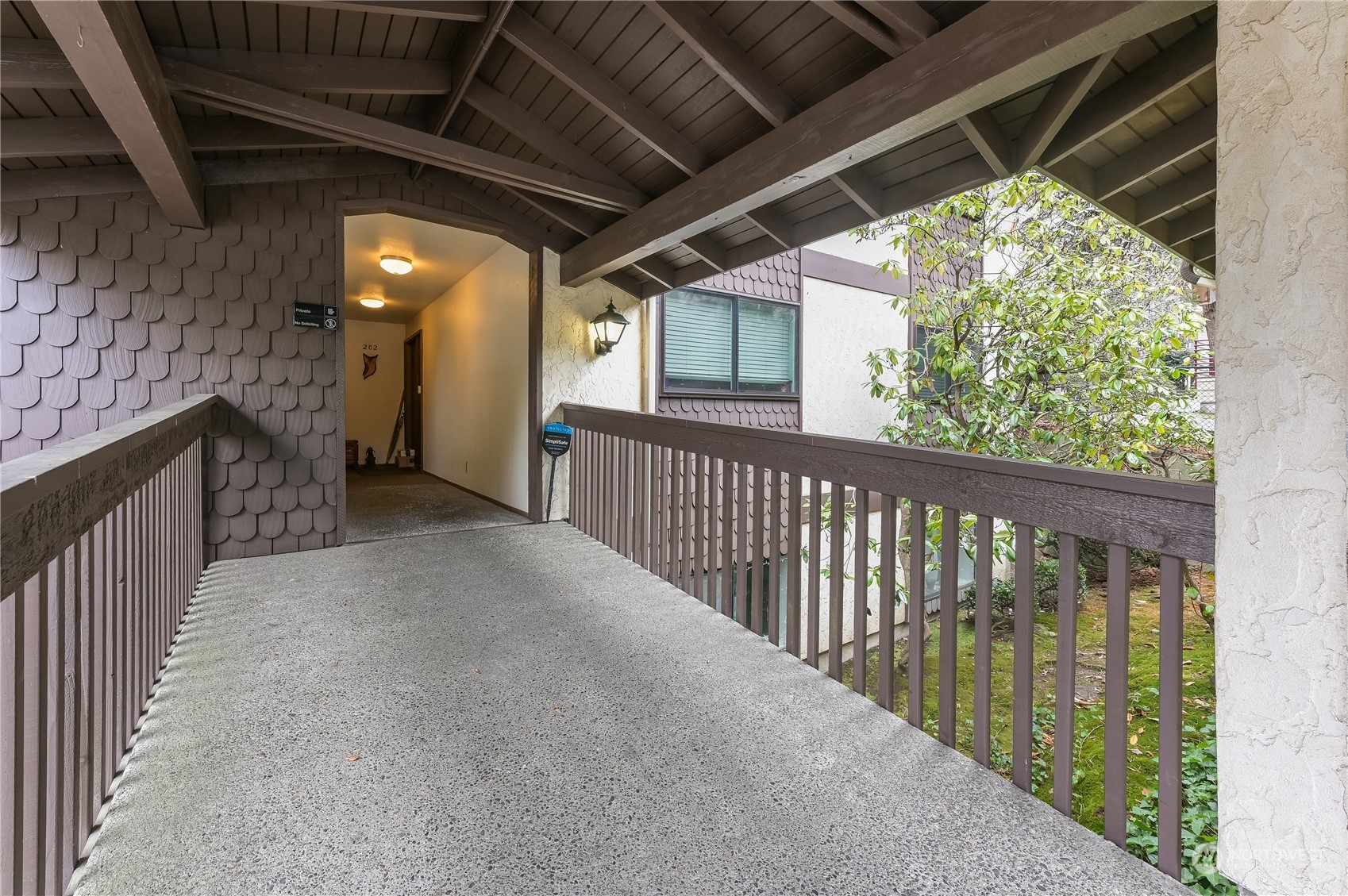 Do you know what's difficult to find in a condo? Space, privacy and views, but this unit has all of these things! This unit is BIG, as big as a ranch style home. Top floor unit and NO SHARED WALLS! The generous living area features a kitchen that opens to a dining/living room with a wood burning fireplace. A wall of windows with a slider opens to the deck where there are lovely songbirds, territorial views of the plentiful trees plus the Cascades and Mt Baker. The bedrooms and bathrooms are quite spacious and there are 2 storage areas, a covered parking space and an extra-long garage. There's a clubhouse with game room PLUS this complex is super close to the new light rail and within walking distance to North City's restaurants and shops.