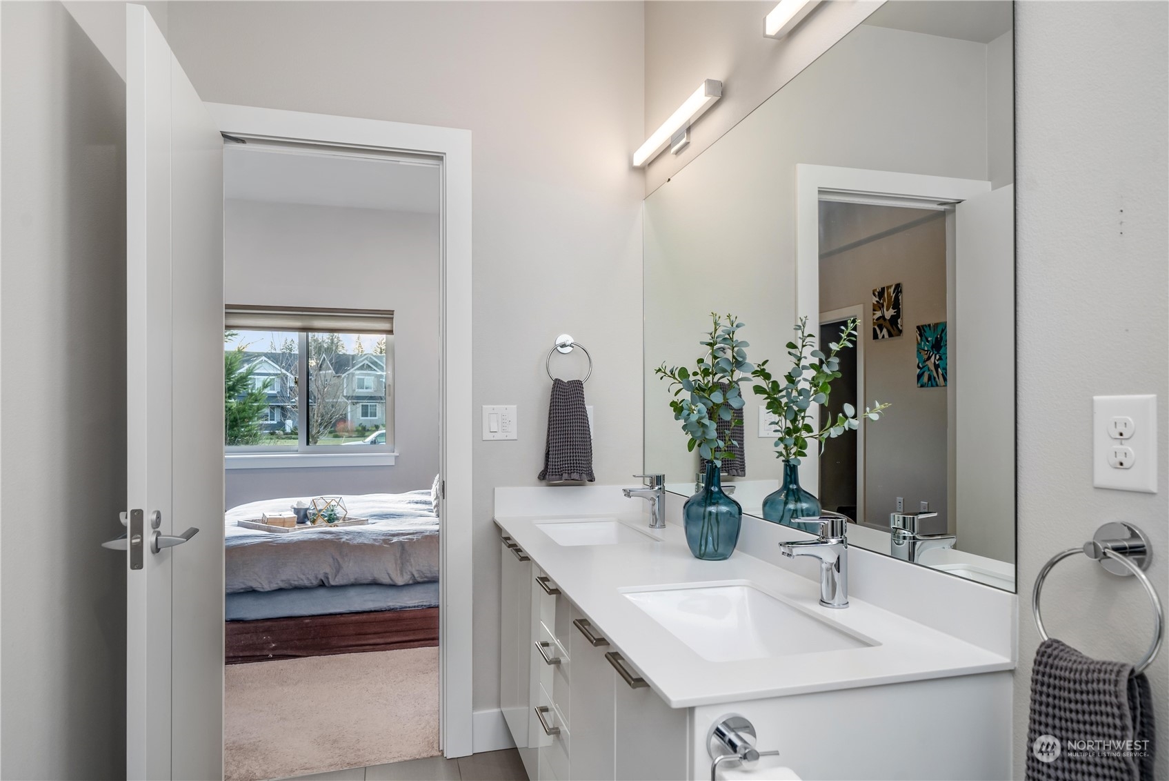 Stunning Ichijo Former Model Home on a Premium Mt Rainer View Lot! THE Best value in Ten Trails! Enjoy monthly savings $$ from solar panels & potential to assume a 2.875% VA loan! All you desire on the main level: primary suite, great room & utility- all roomy & well located. This sleek modern smart home has Ring & Nest features. Relax & enjoy the open floorplan & outdoor patio off the dining area. Dream kitchen features cabinet organizers, quartz & stainless appl. Owner's suite w/sitting area, 5-piece bath & walk-in closet. Move-in ready w/window coverings, ring doorbell & Nest thermostat. Landscaping & Wave internet included in the dues. Full irrigation system w/3 zone rain system. Close to amazing trails, sports courts, dog park & more.