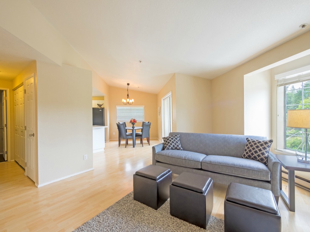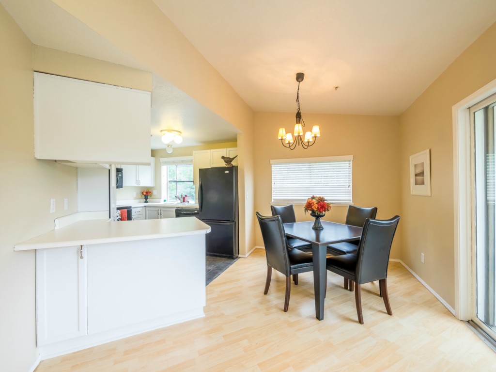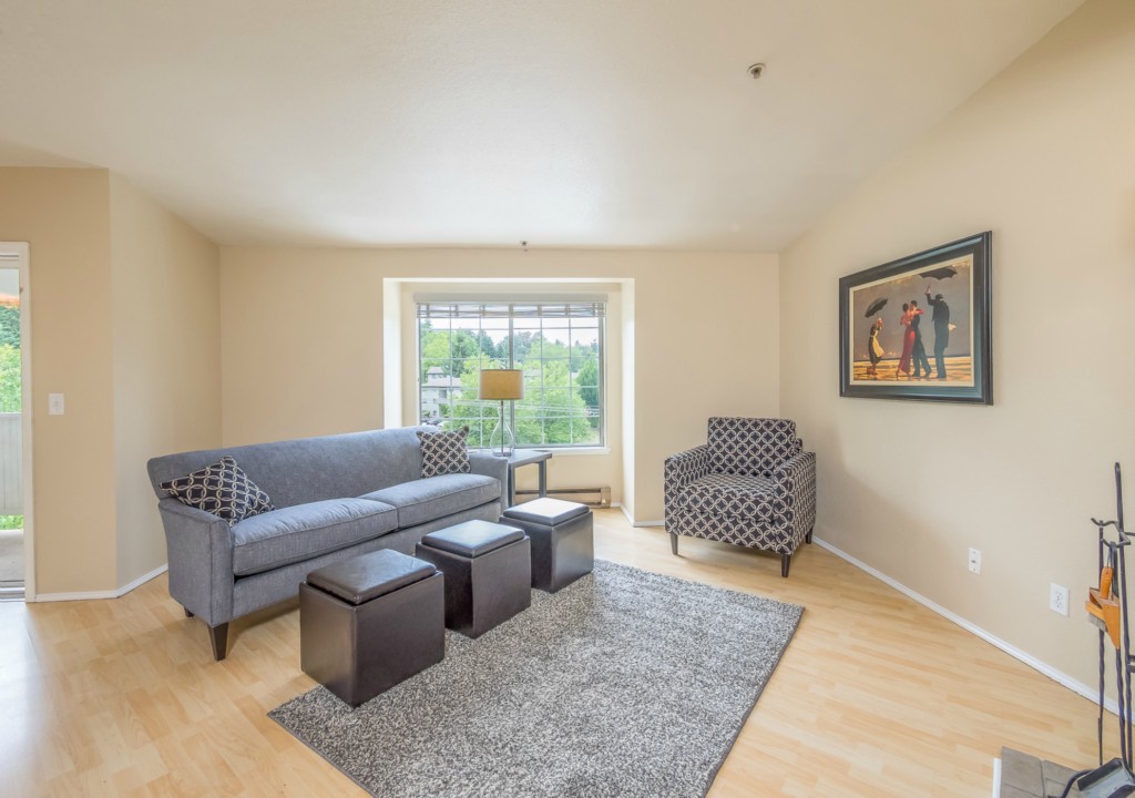 Rare Ambaum Manor resale - 3 bedroom/2 bath, top floor, end unit condominium. It has a well thought out floor plan that makes it feel bigger than the square footage would suggest. You won't find better natural light. Freshly painted and new carpet in bedrooms. Laminate floors in living areas and master bedroom. The deck has additional storage. One reserved carport space, plus one additional parking space. Easy access to SeaTac, I-5, Burien shopping and dining, Southcenter Mall and area parks.