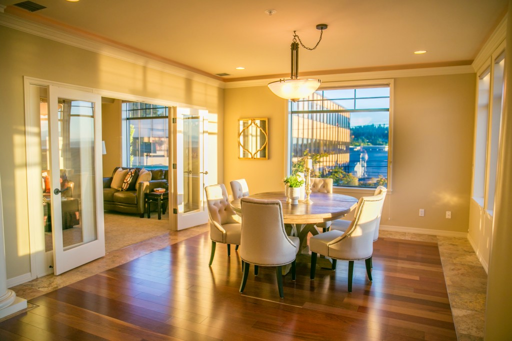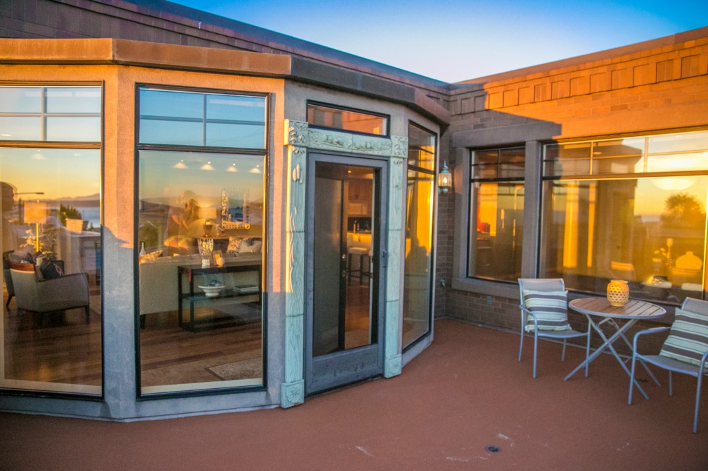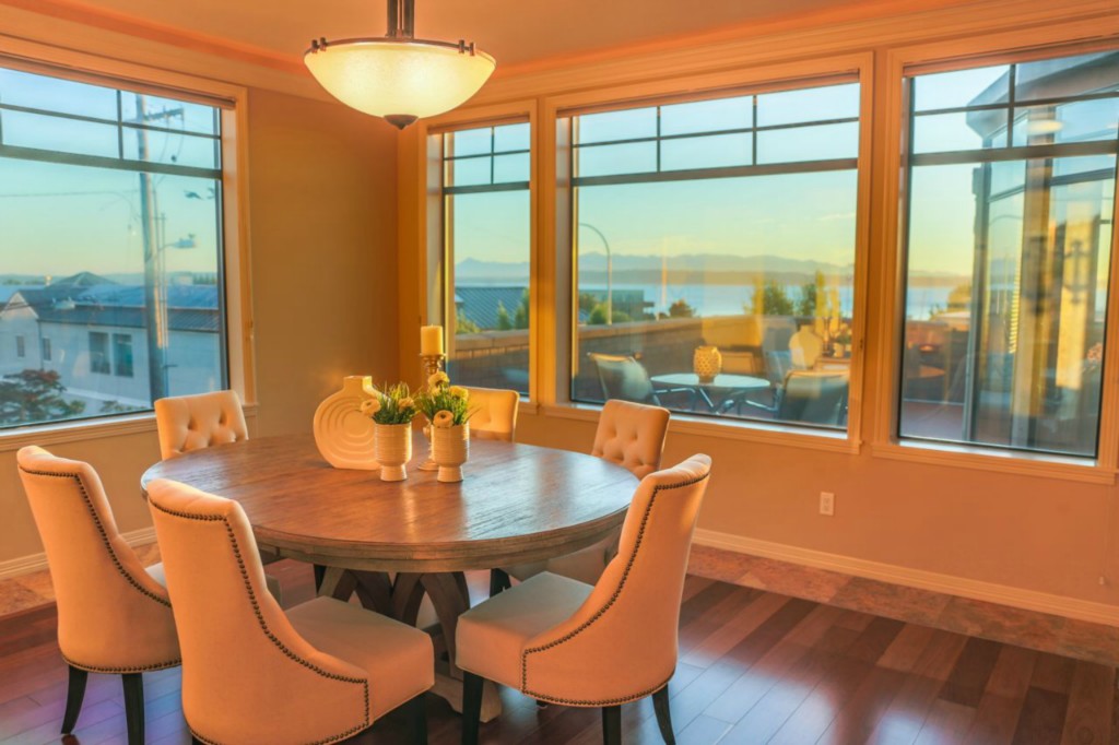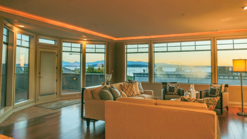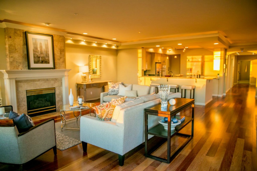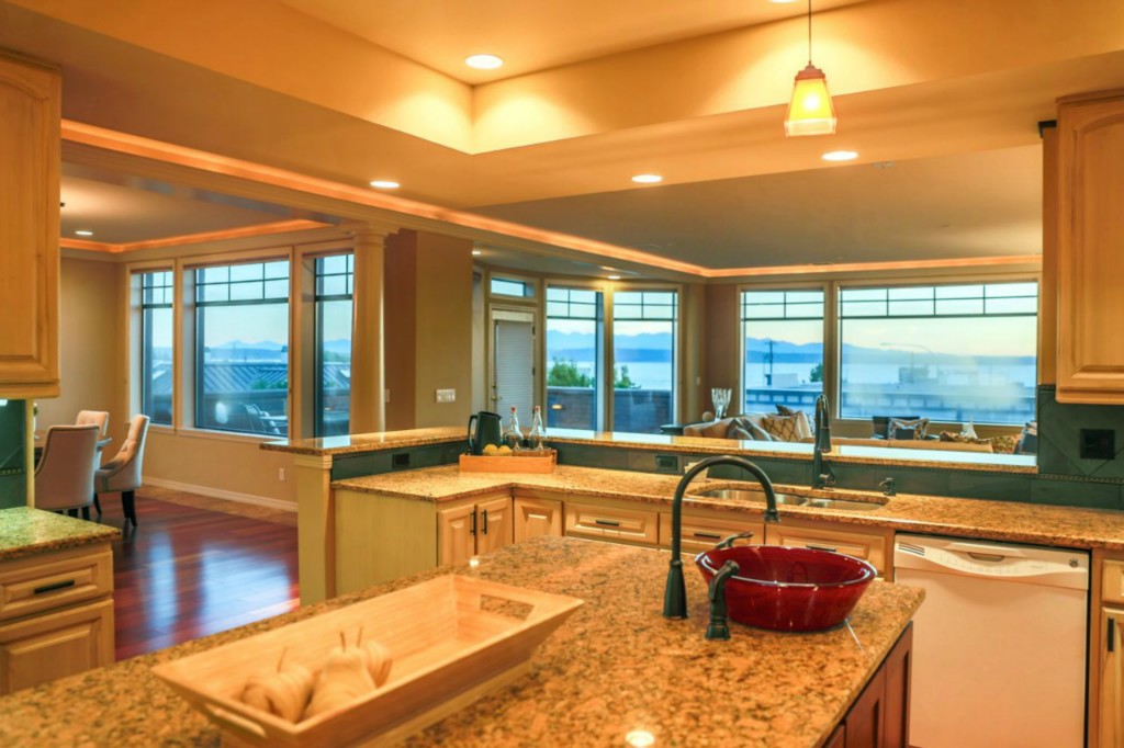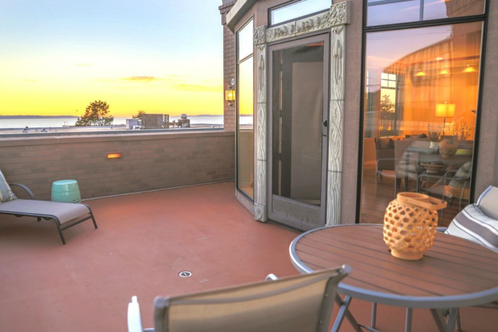 Rare opportunity on Main Street in Downtown Edmonds with Puget Sound & Olympic Mountain views. Restaurants and shops just steps away! Designer home with Brazilian cherry hardwood floors & unique lighting features. Master bath includes an incredible LED twinkling star ceiling. Entertain guests in the gourmet kitchen. Patio deck with water faucet & gas line for BBQ. Only 4 units in building! Possibility to convert den to 3rd bedroom. Extra large (approx. 20' x 20') storage room. Low HOA Dues!