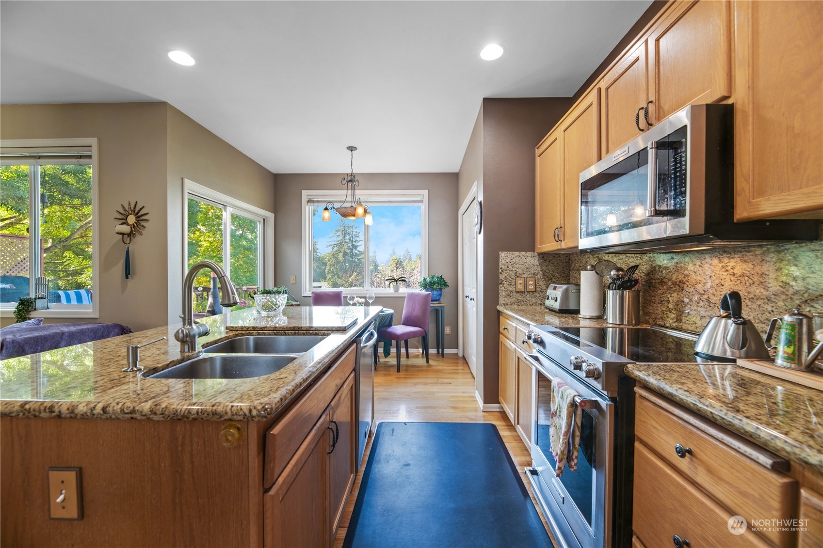 Back on market after a holiday break! Lovely, Upper Kennydale home, beautifully maintained by original owners. Hardwood floors just refinished. 3 Bedrooms, 3 Full Baths, with option to wall off upstairs office for 4th bedroom. Home comes with built in Sauna, Hot Tub and high end appliances. Territorial View and private yard filled with trees and garden spaces. Light and bright with large west facing living room and kitchen. Amazing deck for entertaining and viewing sunsets. Large bedrooms with plenty of walk in-storage. Central A/C to keep you cool in the Summer. Additional storage area in Sauna room. Fully finished media room. Large recreation room downstairs with option to keep pool table. RV-Boat parking on side of garage.