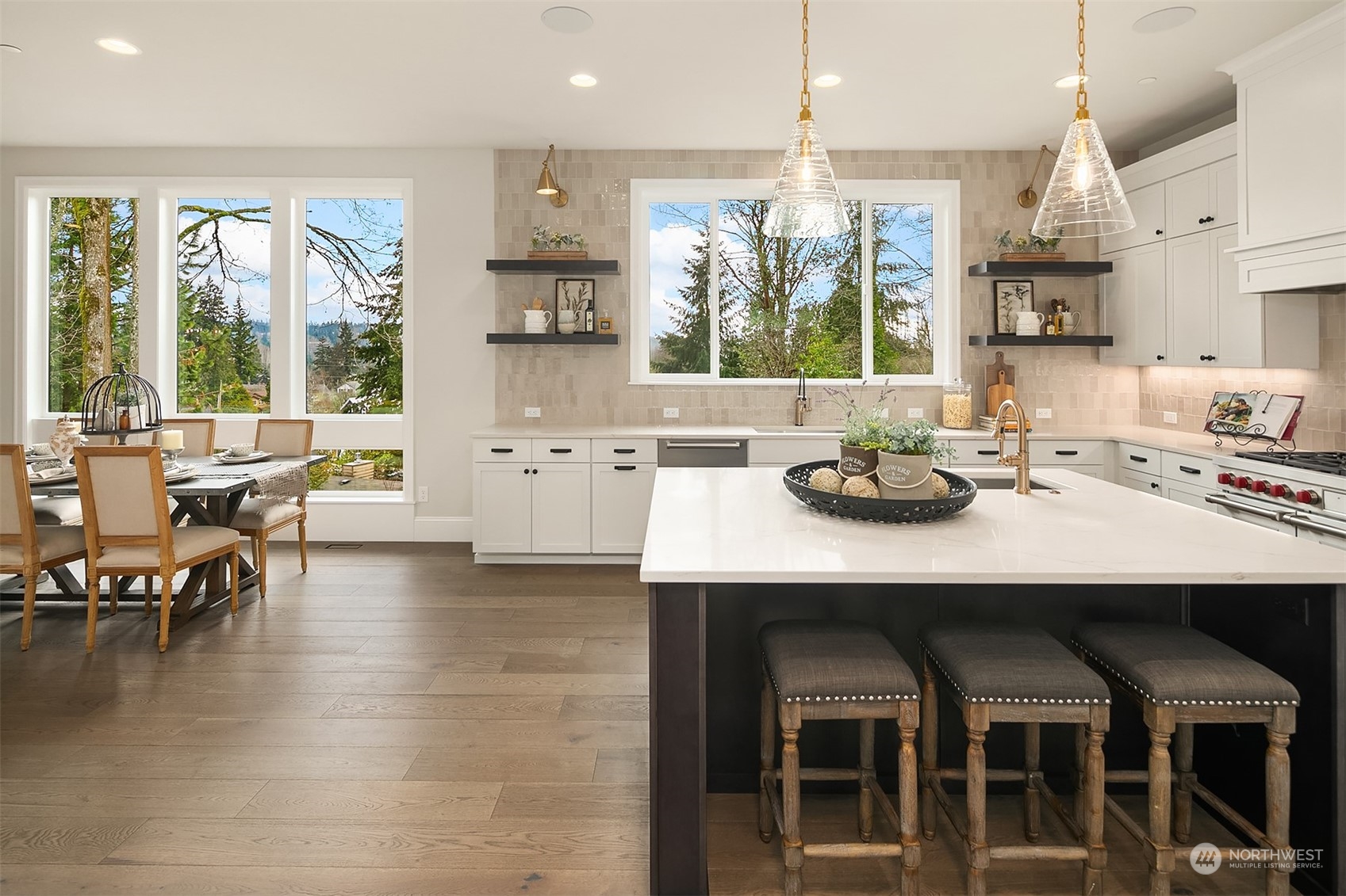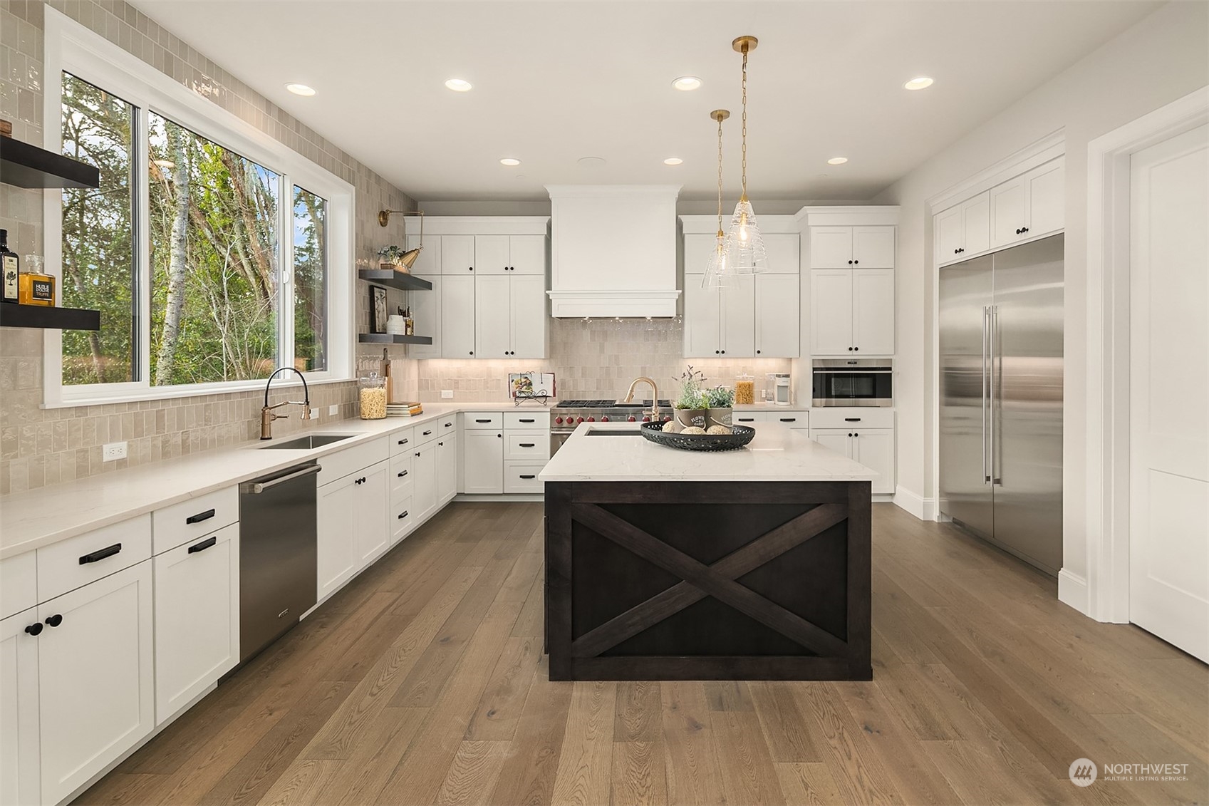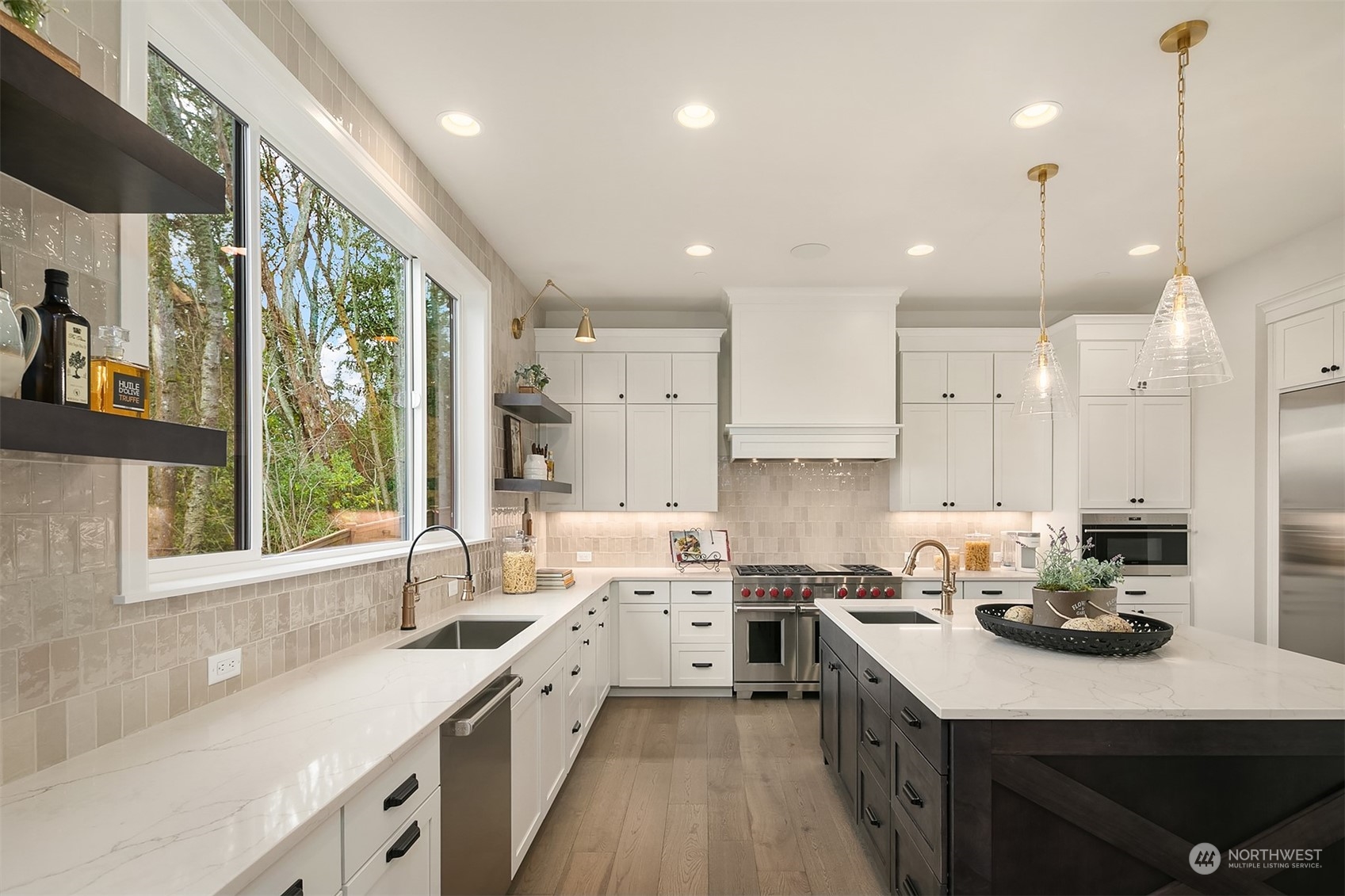 Final home remaining at Kirkland's newest 6-home community-Crestwood Estates. Now beautifully staged, trimmed with Murray Franklyn's highest level of finishes & ready to occupy! Soaring entry leads to grand family room w abundance of windows capturing southerly light & territorial and Mt Rainier views. Exquisite kitchen w stainless steel Wolf 48" range & SubZero fridge. Main level en suite off entry, separate office & hardwoods throughout. Two fireplaces, outdoor covered deck w ceiling heater & stairs to grass & gas firepit for entertaining. Stunning outlook from primary suite & spa bath. Lg bonus rm & laundry up. Fully finished lower level w bed, bath, huge rec room & storage. Exquisite detail, includes A/C. GPS mapping use 400 15th Ave.