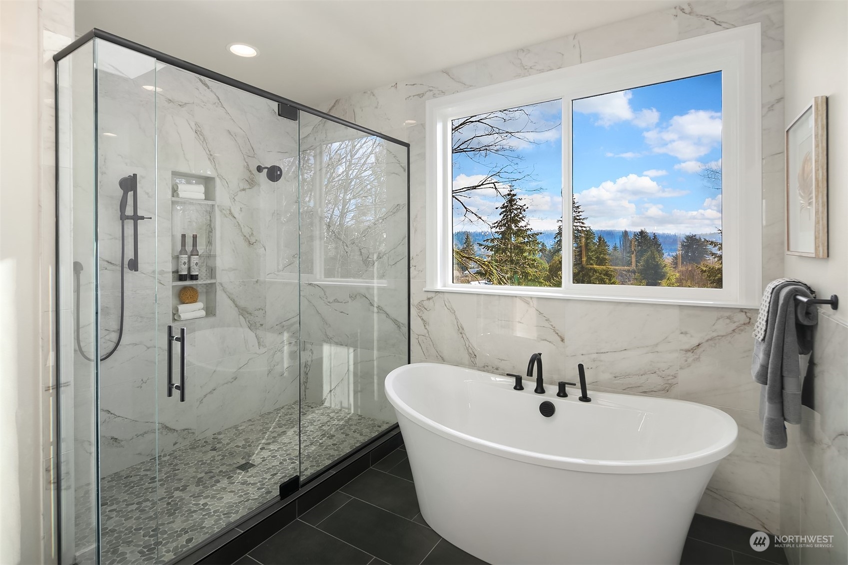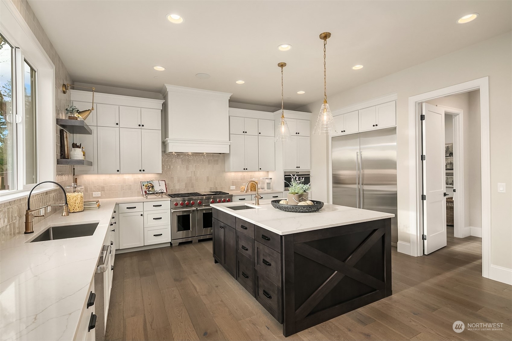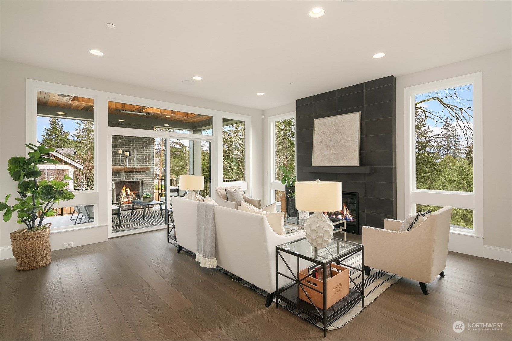 Final home remaining at Kirkland's newest 6-home community-Crestwood Estates. Now beautifully staged, trimmed with Murray Franklyn's highest level of finishes & ready to occupy! Soaring entry leads to grand family room w abundance of windows capturing southerly light & territorial and Mt Rainier views. Exquisite kitchen w stainless steel Wolf 48" range & SubZero fridge. Main level en suite off entry, separate office & hardwoods throughout. Two fireplaces, outdoor covered deck w ceiling heater & stairs to grass & gas firepit for entertaining. Stunning outlook from primary suite & spa bath. Lg bonus rm & laundry up. Fully finished lower level w bed, bath, huge rec room & storage. Exquisite detail, includes A/C. GPS mapping use 400 15th Ave.