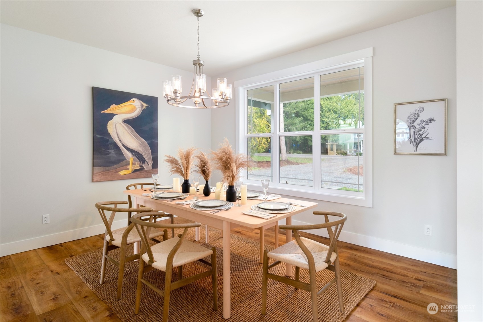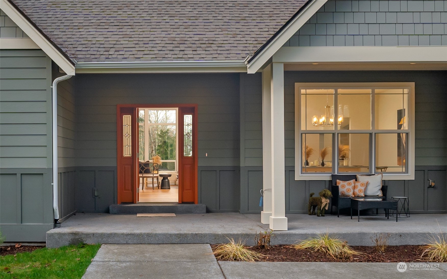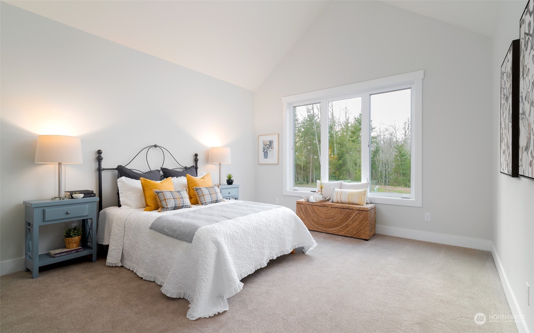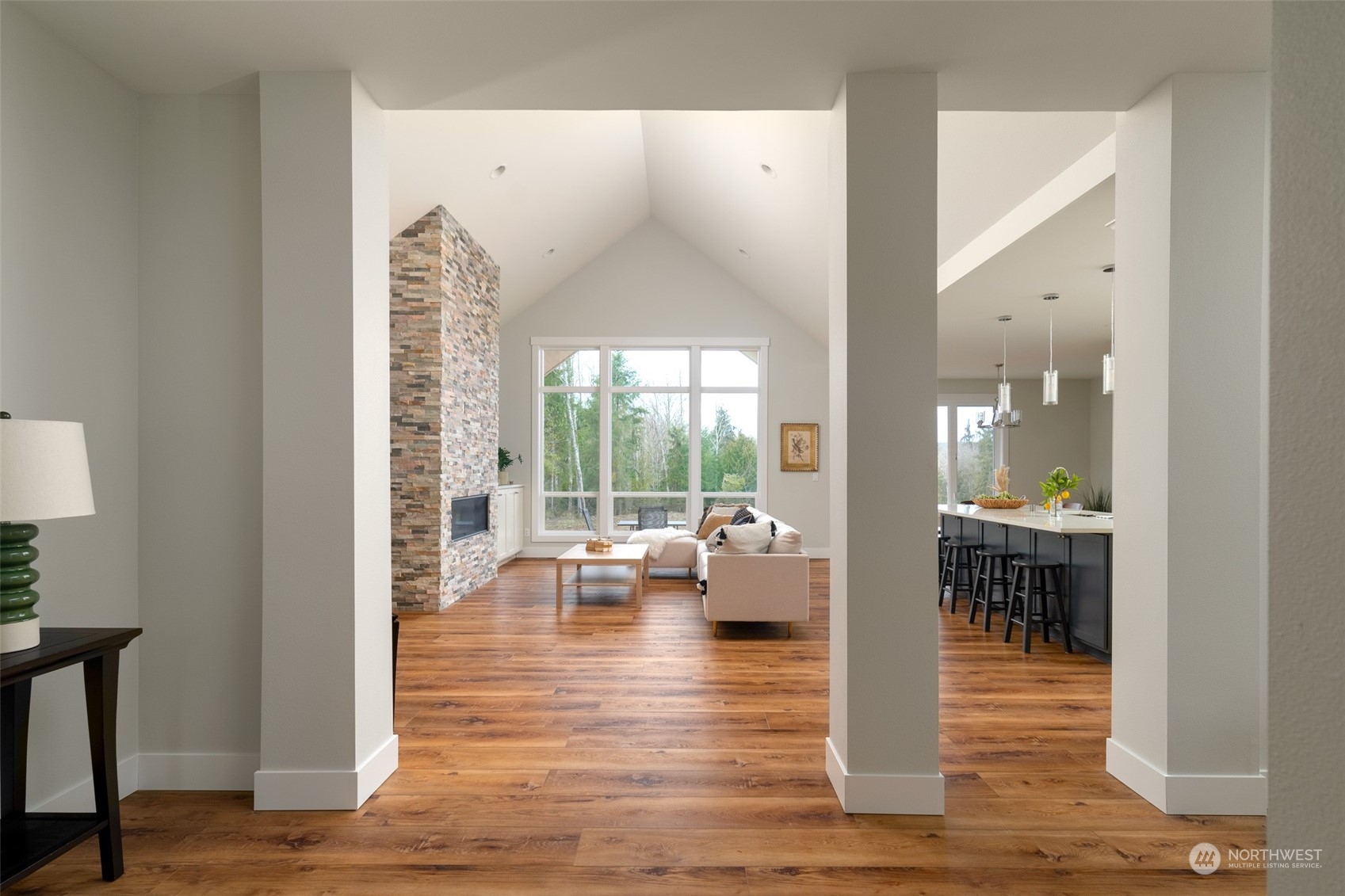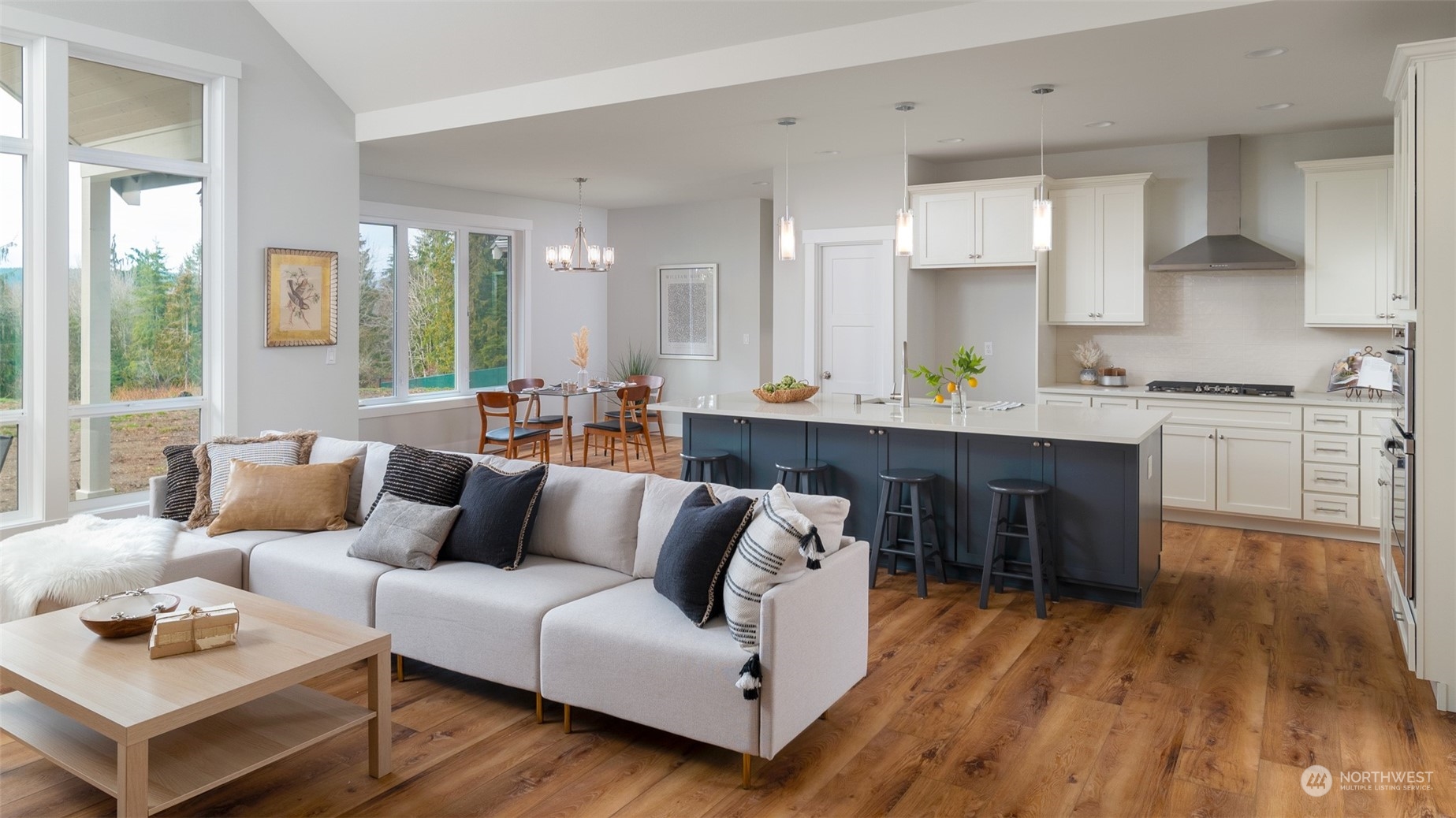 A winning combination - New construction on a tranquil 3+ acres just minutes to ferries. This peach, by Central Sound Construction, was created for discerning buyers searching for one level living with stylish finishes. This floorplan's flow gets an A+ & you will love the stunning great room with it's vaulted ceilings, floor to ceiling stone hearth, abundant windows & a deluxe Chef's kitchen with a pretty dining nook. The attractive entry is flanked by an office & formal dining room & the large, level yard can be enjoyed from the covered patio. A spacious, deluxe primary suite boasts a gorgeous, ensuite bath. 2 additional bedrooms grace the main floor. Media/bonus room, 3 car garage, heat pump & tankless hot water, partial mountain view.