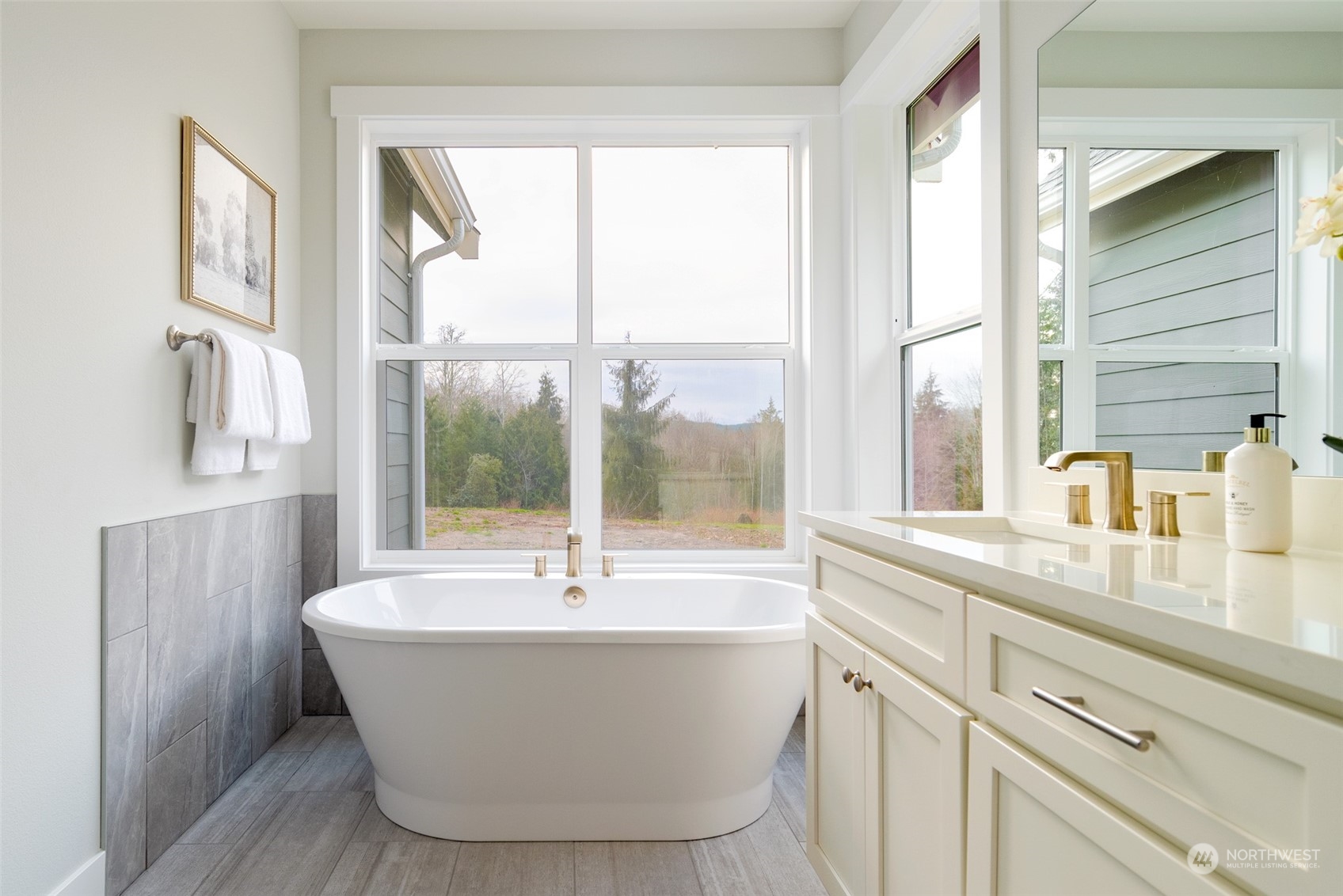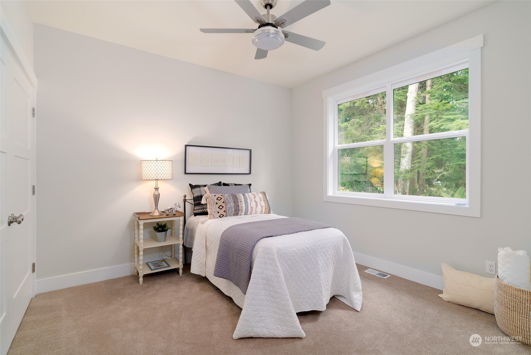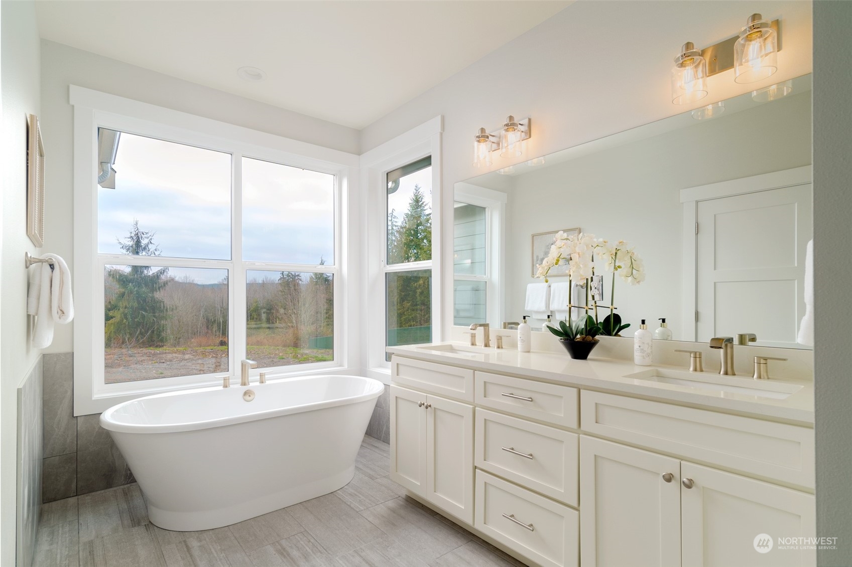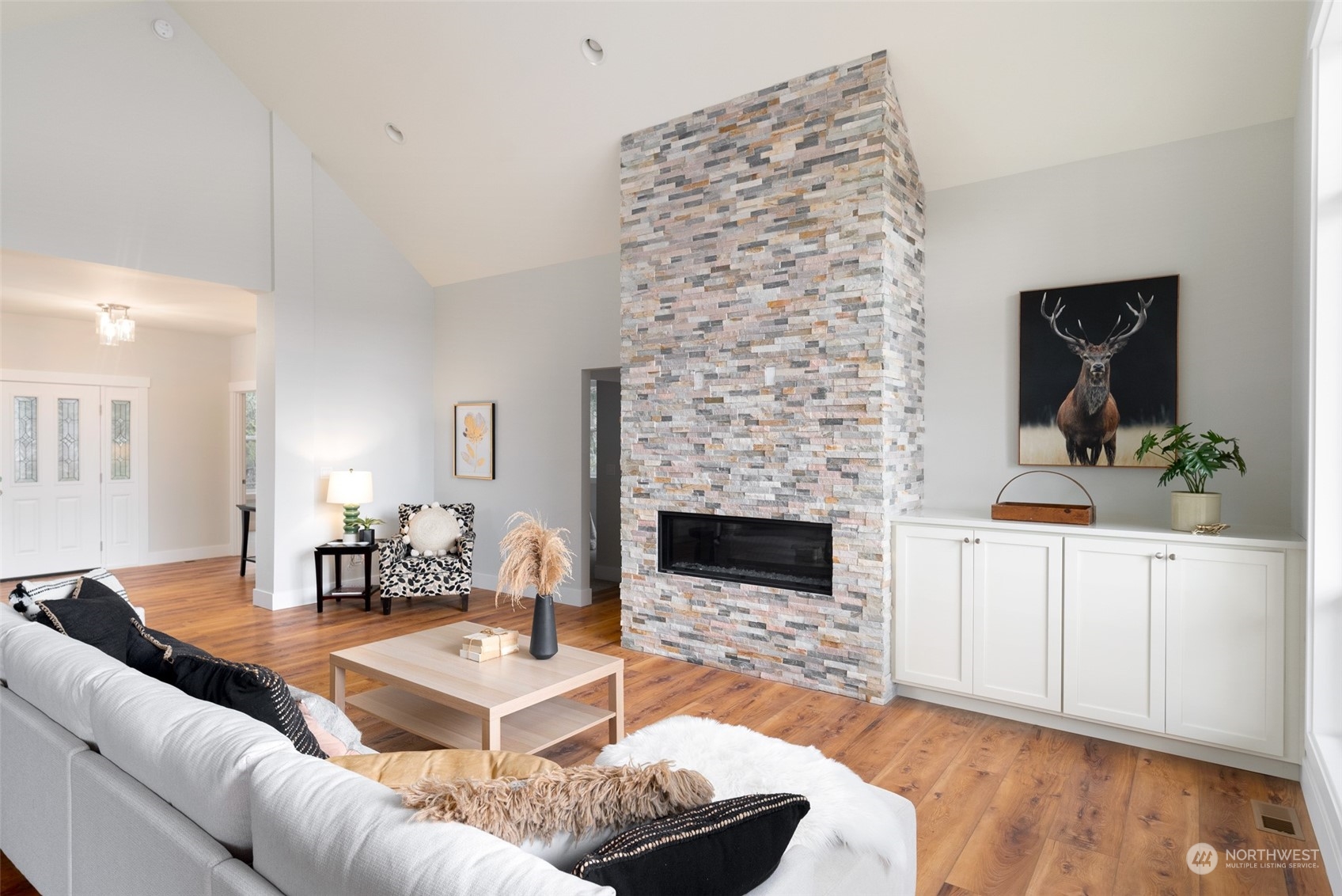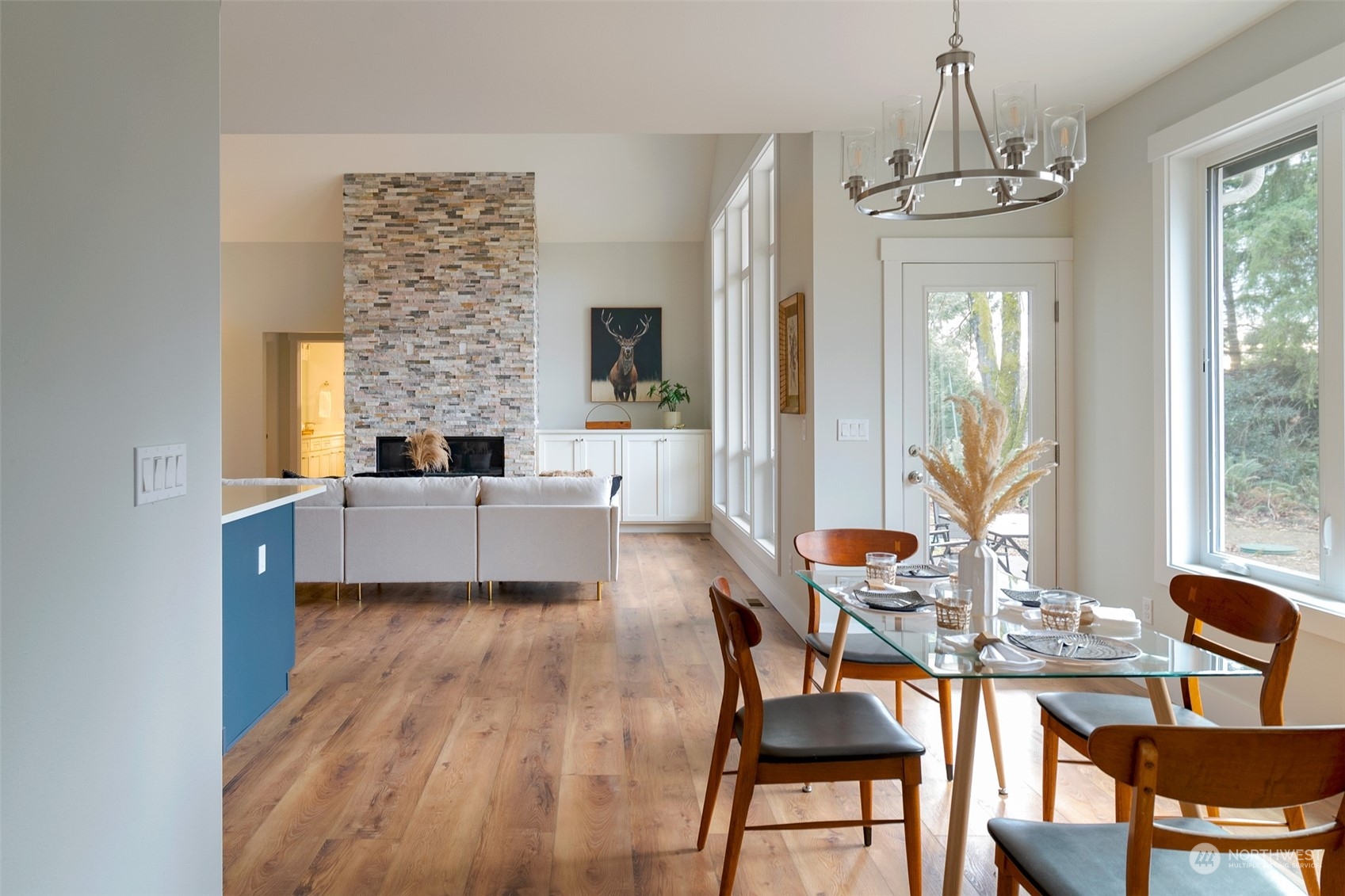 A winning combination - New construction on a tranquil 3+ acres just minutes to ferries. This peach, by Central Sound Construction, was created for discerning buyers searching for one level living with stylish finishes. This floorplan's flow gets an A+ & you will love the stunning great room with it's vaulted ceilings, floor to ceiling stone hearth, abundant windows & a deluxe Chef's kitchen with a pretty dining nook. The attractive entry is flanked by an office & formal dining room & the large, level yard can be enjoyed from the covered patio. A spacious, deluxe primary suite boasts a gorgeous, ensuite bath. 2 additional bedrooms grace the main floor. Media/bonus room, 3 car garage, heat pump & tankless hot water, partial mountain view.