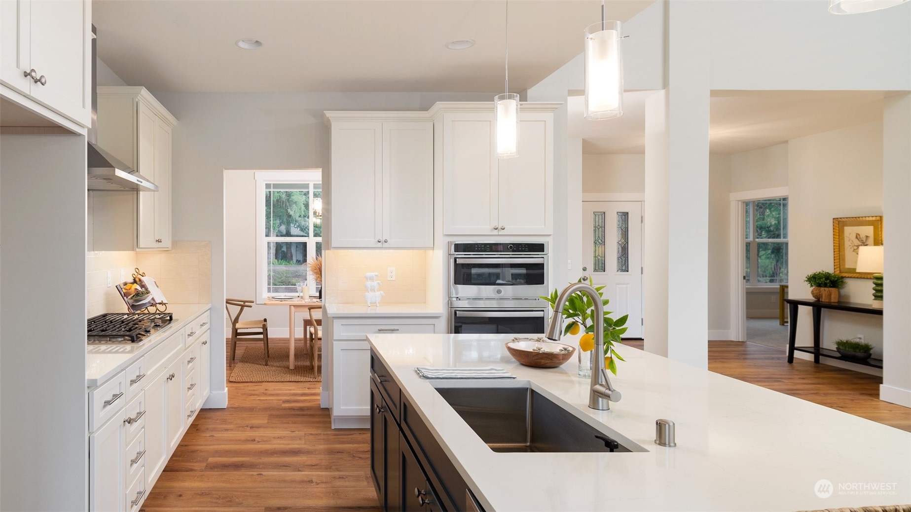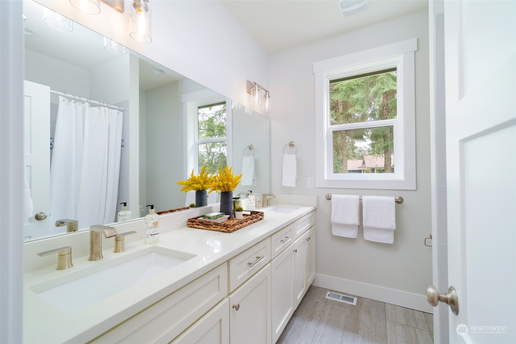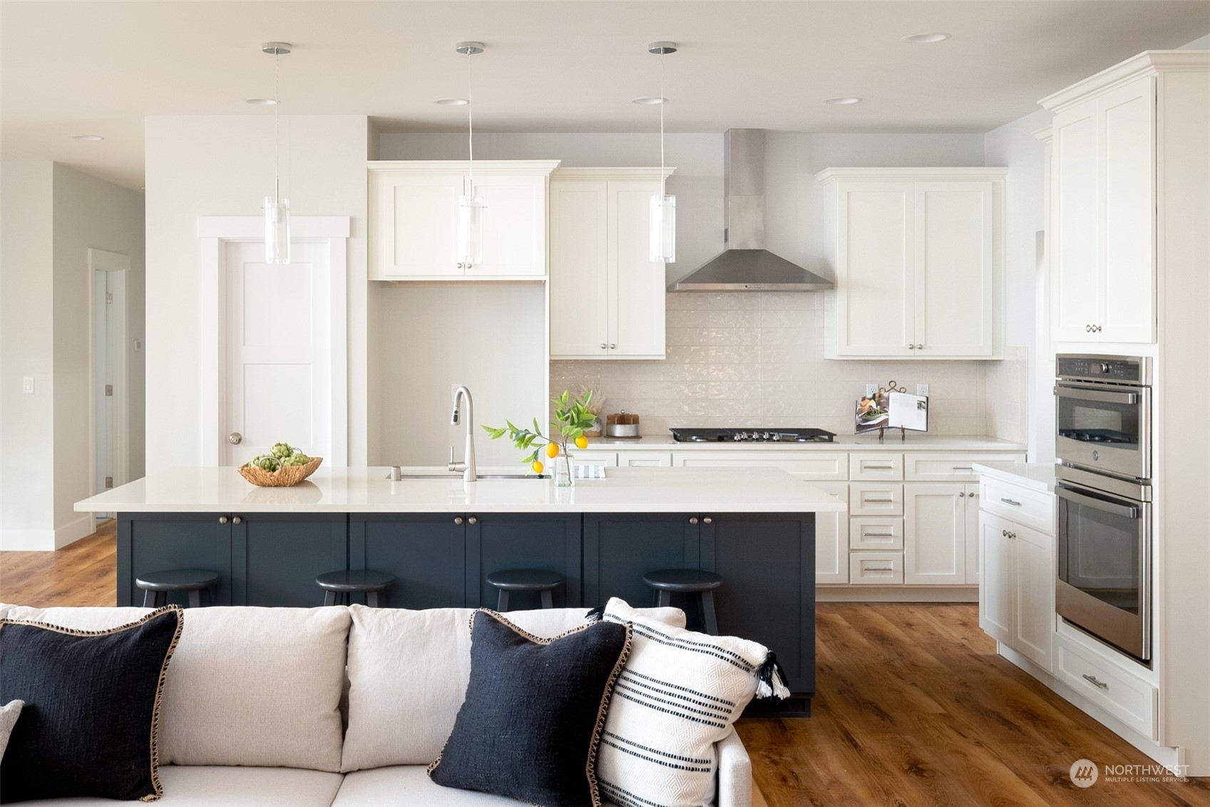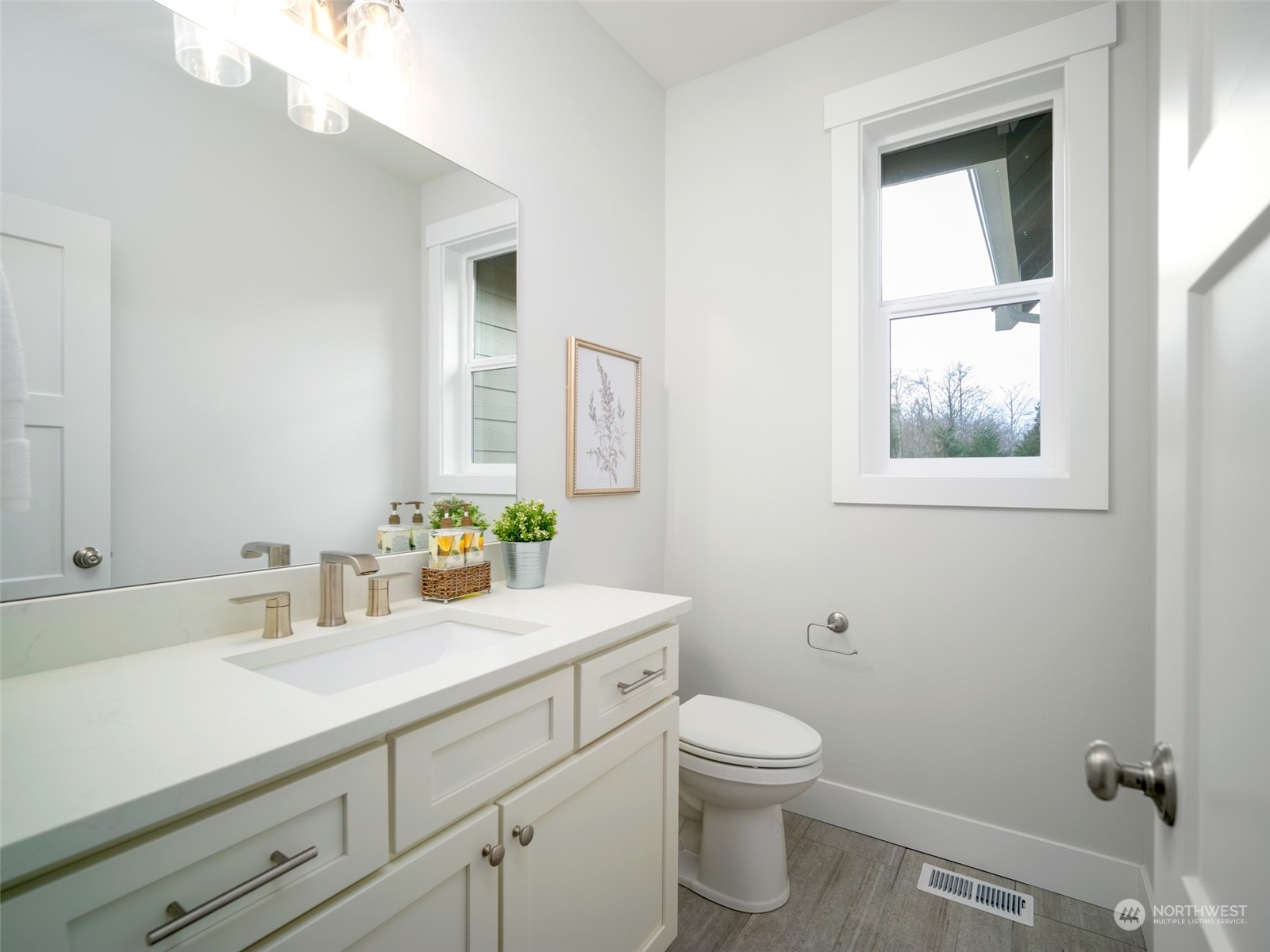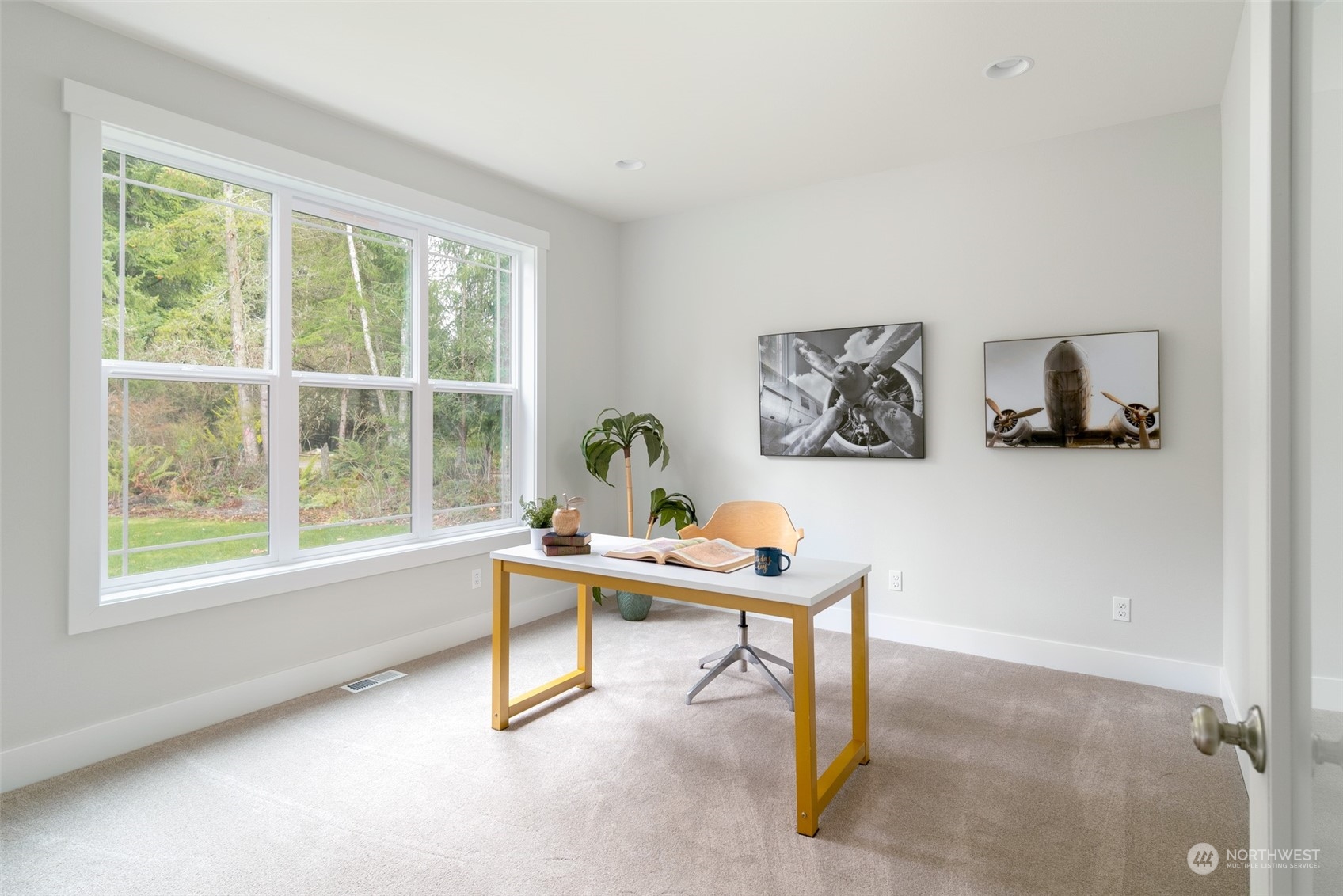 A winning combination - New construction on a tranquil 3+ acres just minutes to ferries. This peach, by Central Sound Construction, was created for discerning buyers searching for one level living with stylish finishes. This floorplan's flow gets an A+ & you will love the stunning great room with it's vaulted ceilings, floor to ceiling stone hearth, abundant windows & a deluxe Chef's kitchen with a pretty dining nook. The attractive entry is flanked by an office & formal dining room & the large, level yard can be enjoyed from the covered patio. A spacious, deluxe primary suite boasts a gorgeous, ensuite bath. 2 additional bedrooms grace the main floor. Media/bonus room, 3 car garage, heat pump & tankless hot water, partial mountain view.