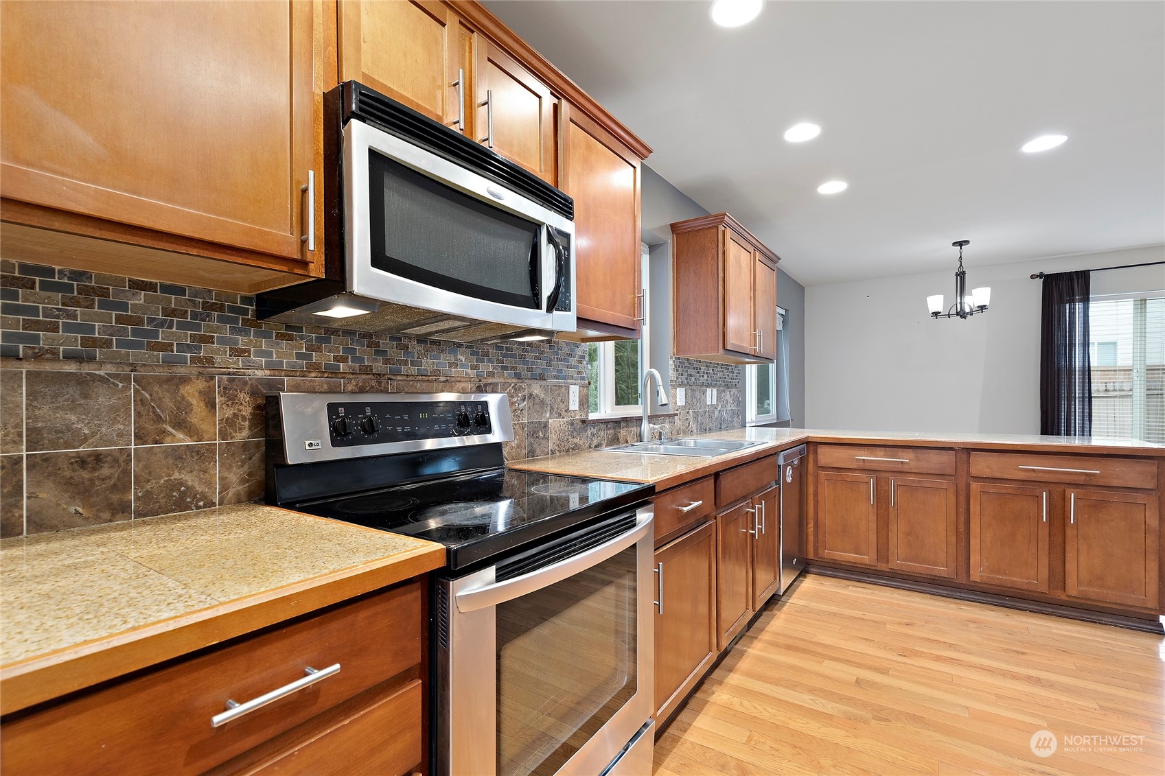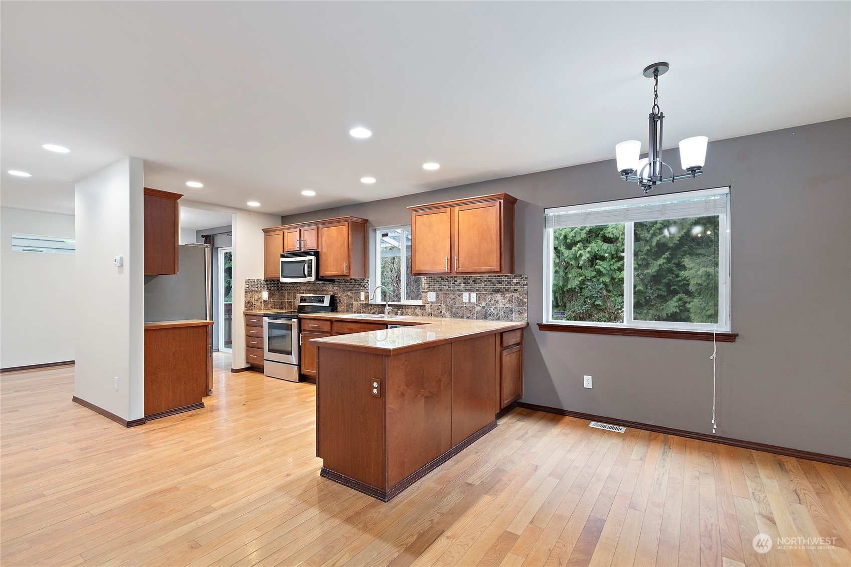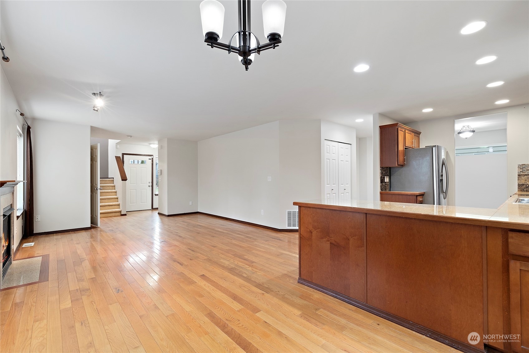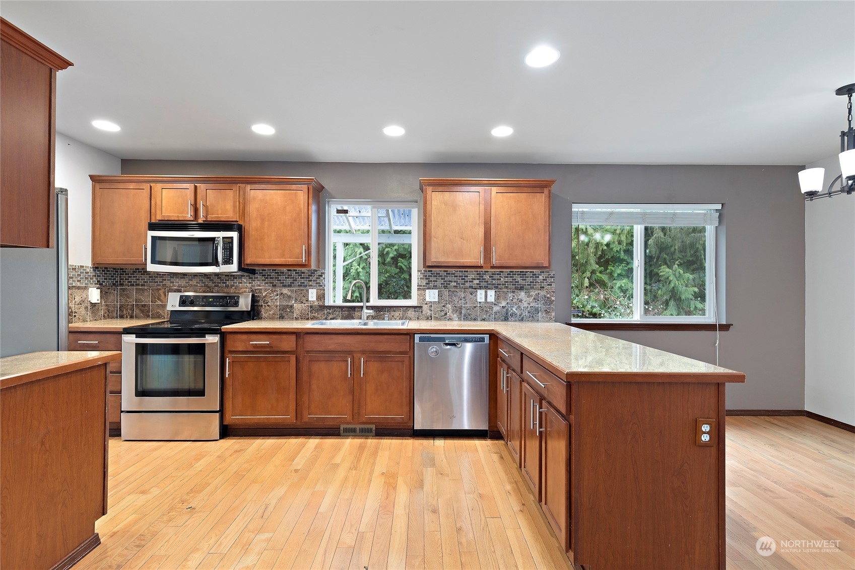 Welcome to Ashley Place! This 3 bedroom 2.5 bath home is the best lot in the complex located on the green belt. Private and spacious with REAL hardwood floors, this home includes an open kitchen with gorgeous maple cabinets, granite countertops, titled backsplash, SS appliances, casual and formal dining areas. The great room is spacious and features a cozy fireplace and adjacent powder room. Primary en-suite includes a private bath and walk-in closet. Upstairs boasts a spacious bonus area and separate "nook" great for an office space or? Enjoy your large coved deck, great for those summertime BBQs and large fenced rear yard. Convenient location, close to Boeing, shopping, dining and EZ freeway access!