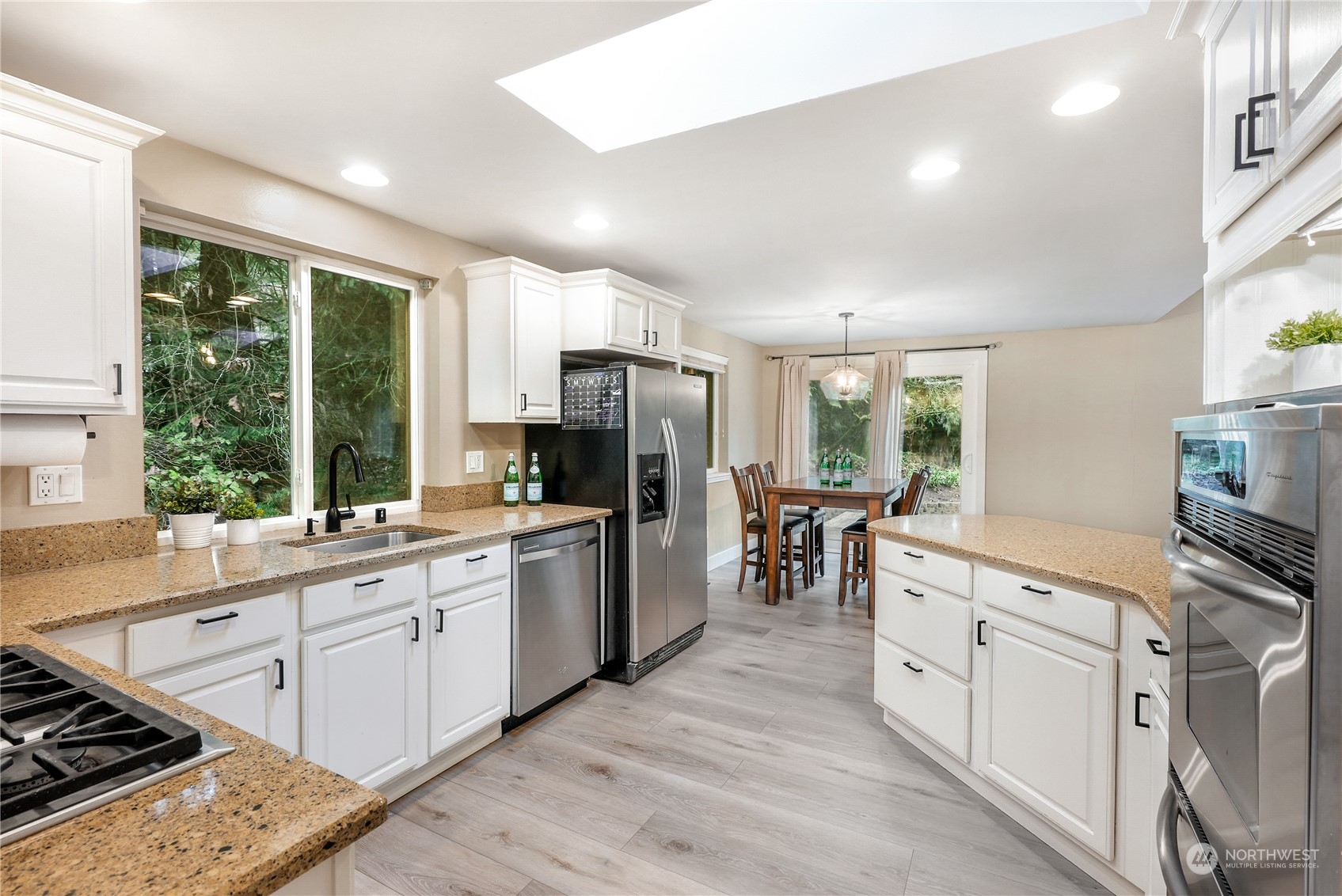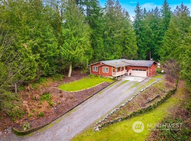 Wonderful 1280 sq ft rambler on a private .86 acre features 2 bedrooms & 1.75 baths. Gourmet kitchen features stainless steel appliances, double ovens & gas range! Cozy gas fireplace, vaulted ceilings, and open concept living. Bathrooms have been updated as well has all flooring. Hour from skiing, hiking or touring Tacoma and Seattle. All this not to mention just 10 minutes from downtown Enumclaw. This home boast privacy as well as convenience.