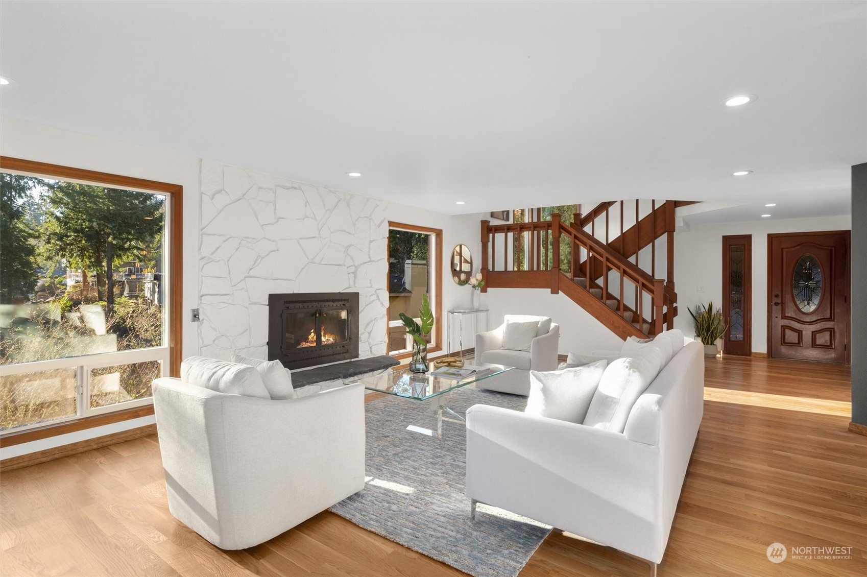 Stunning, fully remodeled, and redesigned, 4 Bedroom/3.5 Bath 4,460 sf NW Contemporary with gorgeous Lake Sammamish Views located in the sought-after City of Bellevue! This better than new home not only is turn-key but is private and serene. From the brand-new spacious Chef’s kitchen to the oversized Owners suite boasting beautiful views, fireplace, dual walk-in closets, and spa-like bath featuring a soaking tub with view and stunning design and features, this home will not disappoint! So many different spaces provide endless options for relaxing, entertaining, or simply enjoying. Plenty of outdoor spaces, from the massive deck and fully fenced backyard and large lot. Easy access that is close to Microsoft, shopping, parks & more!