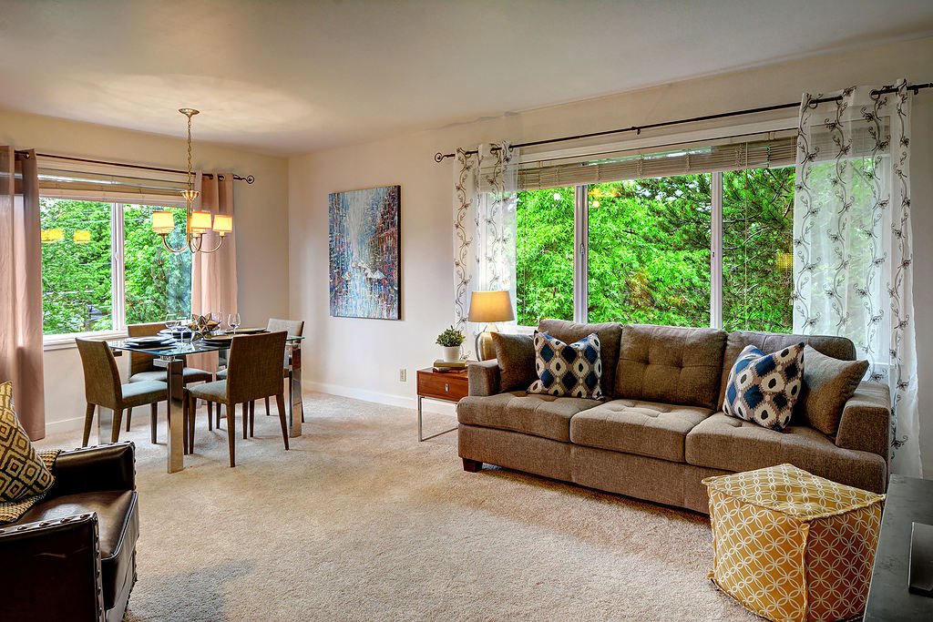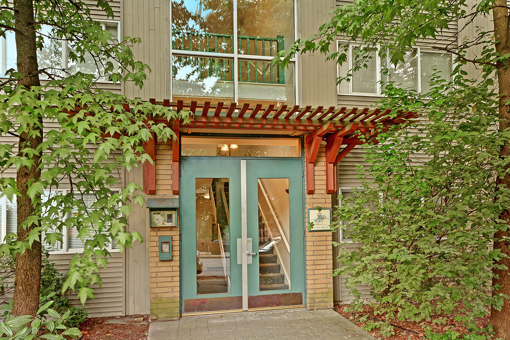 Don't miss this top floor corner unit located in the vibrant Capitol Hill community. Great commuter location and situated on a quiet, tree-lined street away from the hustle and bustle of the Pike/Pine corridor, yet still close enough to amenities, parks, and entertainment galore! Fresh carpet and paint, vinyl windows, assigned secure storage space AND off-street parking, washer and dryer in unit, low monthly dues, bike storage room, shared community BBQ area, and FHA approved. Welcome home!