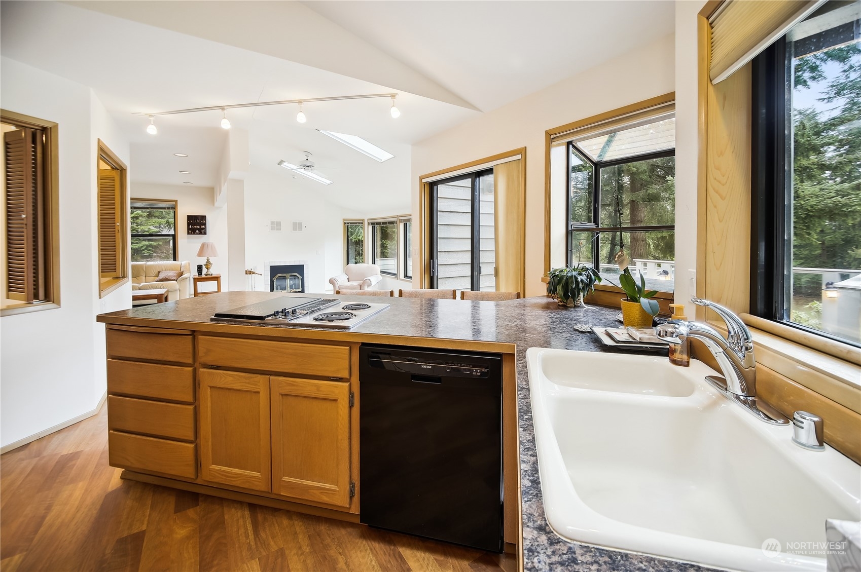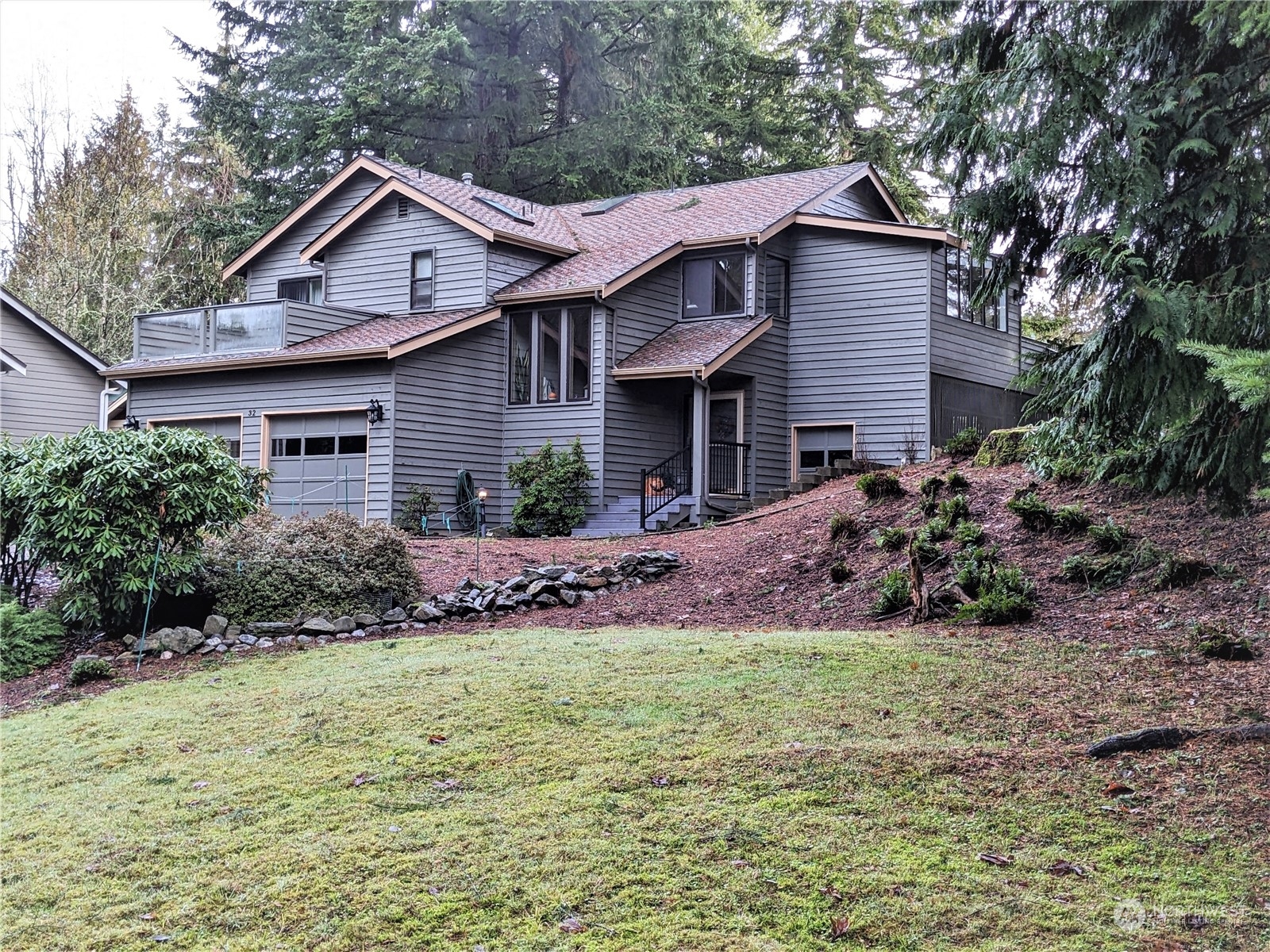 This extremely well maintained, "First Time on Market", home presents an excellent opportunity to live in one of the most serene areas bordering the highly rated Sudden Valley Golf Course. The home, near the green, borders the 14TH fairway and features a near new roof, new exterior paint, newer laminate flooring on the main floor and the Sun Room off of the Dining Area. The Master Bedroom has a walk-in closet and a Double Closet, a Private Deck, and an attached Full Bath. The Large Living Room has Vaulted Ceilings, a Wood Fireplace, Skylights and an amazingly soothing view of the pristine area of the Golf Course and access to the Huge Back Deck. The Lower Floor has 2 good sized Bedrooms, Utility Room, Full Bath and Large Family Room/Bedroom