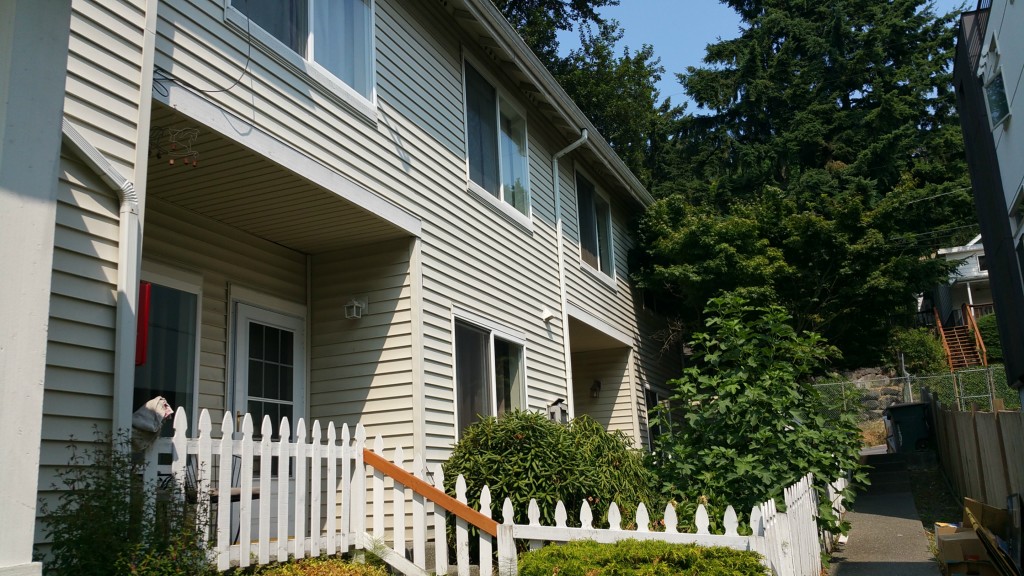 complex w/1-car garage. Well-maintained home features H/W floors, gas fireplace, ceiling fans, a great kitchen & two spacious bedrooms with their own separate bathrooms. Master BR has a large walk-in closet. Landscaped fenced patio area. Great location close to Downtown, Alki beach, golf course and parks.