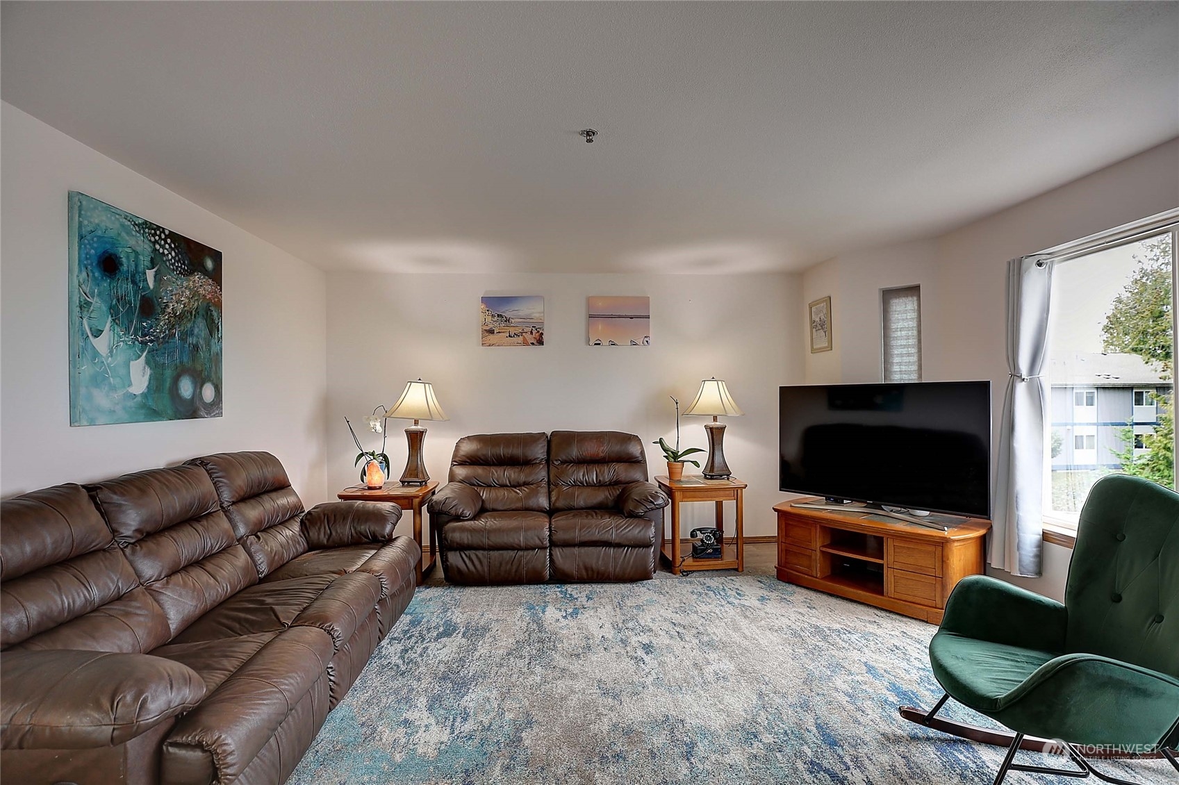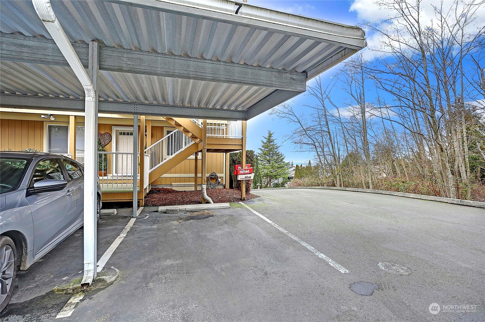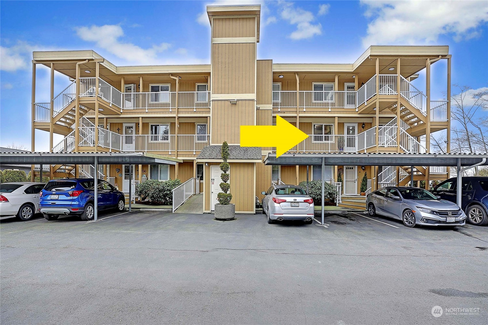 Incredible Single-Level END-UNIT Condo with Magnificent Sound Views nestled back in the woods for peaceful setting! Elevator brings you up for privacy and view, but absolutely ZERO Stairs. Mostly Owner-Occupied with just 12-units provides a unique, friendly & safe lifestyle. Covered parking spot #7 is right in front. Household pets allowed, no restrictions. Deck, Westerly VIEWS and In-Town. Kept with Pride; minutes to shopping, medical, schools & more! 2 Large Bedrooms, 2 Bathrooms, plus Open Kitchen with Bar, Family Room +Fireplace, Washer/Dryer, Garbage Pickup, Mail Delivery. Newer Siding, Pavement, Paint, Carpet, Plank Flooring & More. This is the Condo that feels like a Home. Don't Miss this One-of-a-Kind Value, Location, & Investment!