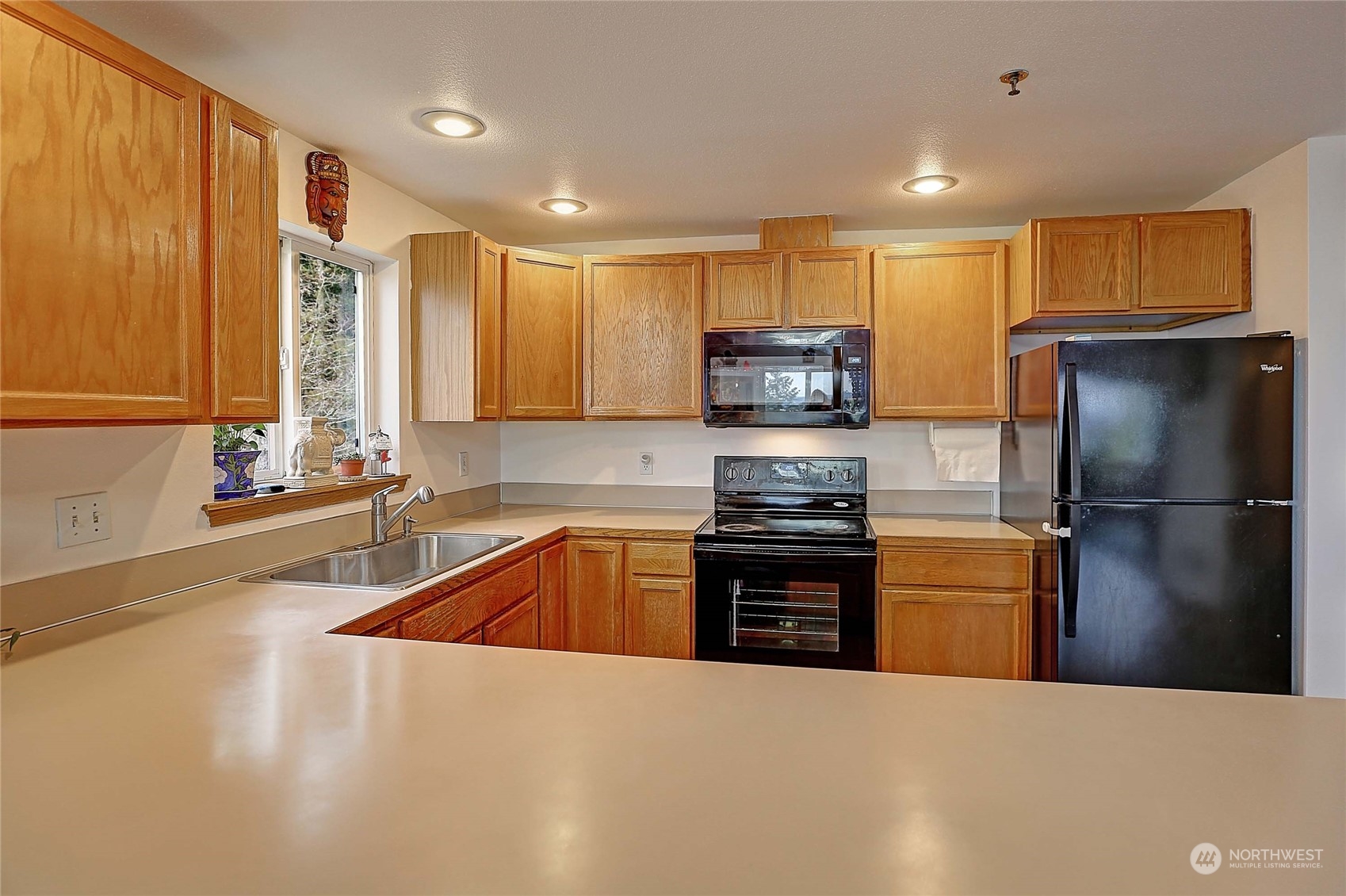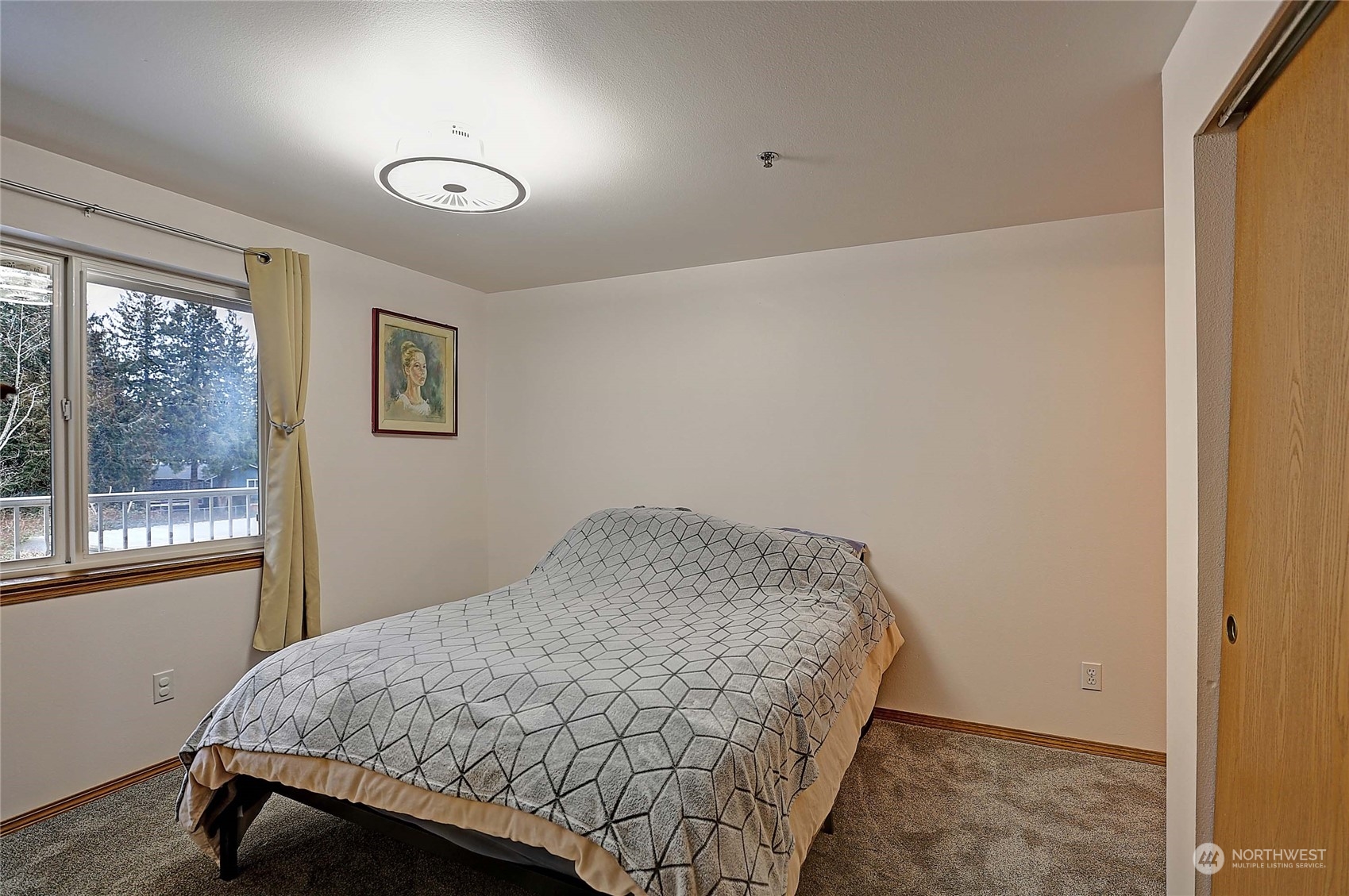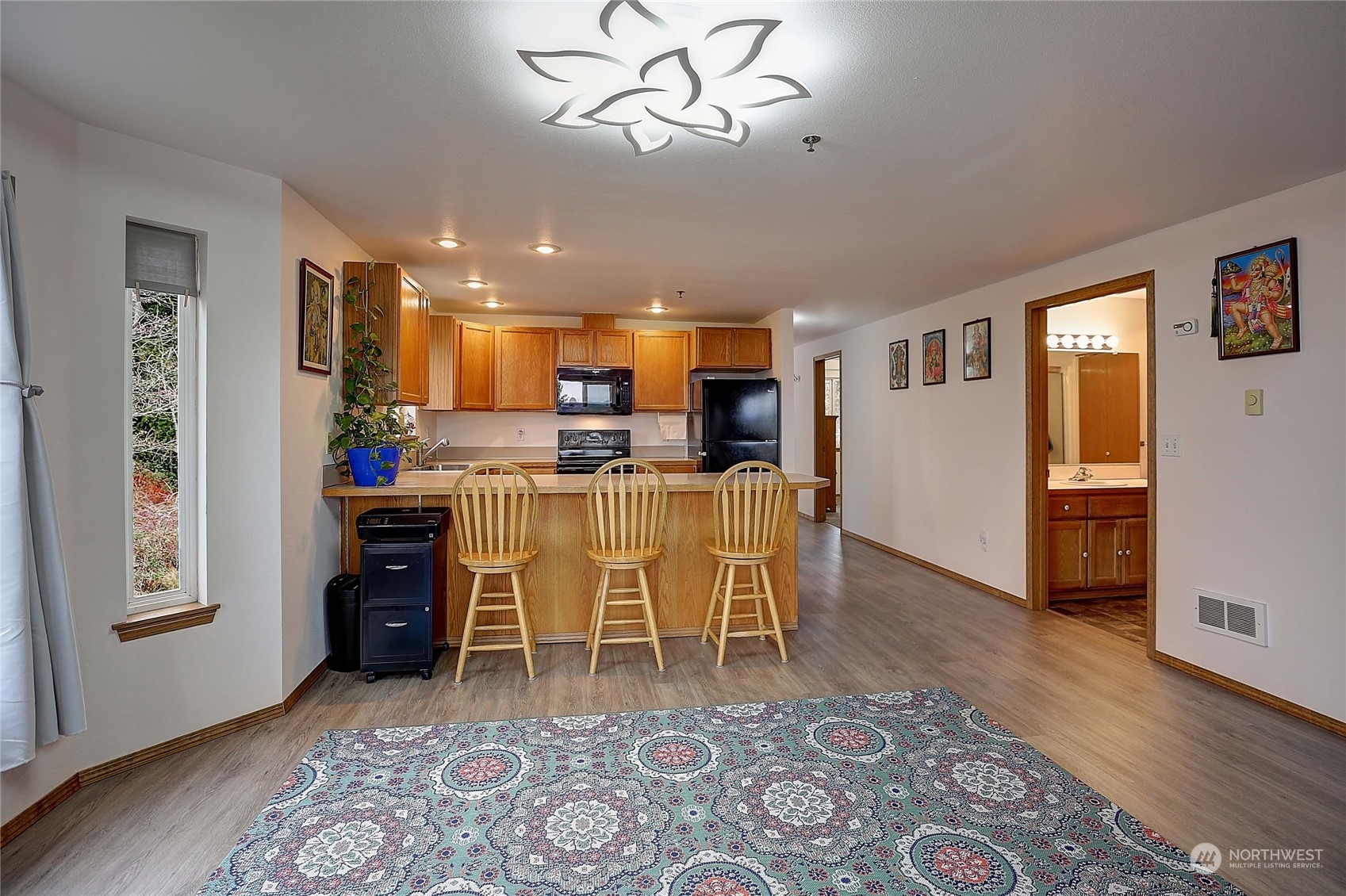 Incredible Single-Level END-UNIT Condo with Magnificent Sound Views nestled back in the woods for peaceful setting! Elevator brings you up for privacy and view, but absolutely ZERO Stairs. Mostly Owner-Occupied with just 12-units provides a unique, friendly & safe lifestyle. Covered parking spot #7 is right in front. Household pets allowed, no restrictions. Deck, Westerly VIEWS and In-Town. Kept with Pride; minutes to shopping, medical, schools & more! 2 Large Bedrooms, 2 Bathrooms, plus Open Kitchen with Bar, Family Room +Fireplace, Washer/Dryer, Garbage Pickup, Mail Delivery. Newer Siding, Pavement, Paint, Carpet, Plank Flooring & More. This is the Condo that feels like a Home. Don't Miss this One-of-a-Kind Value, Location, & Investment!