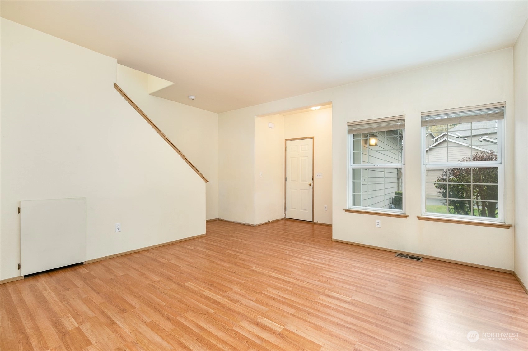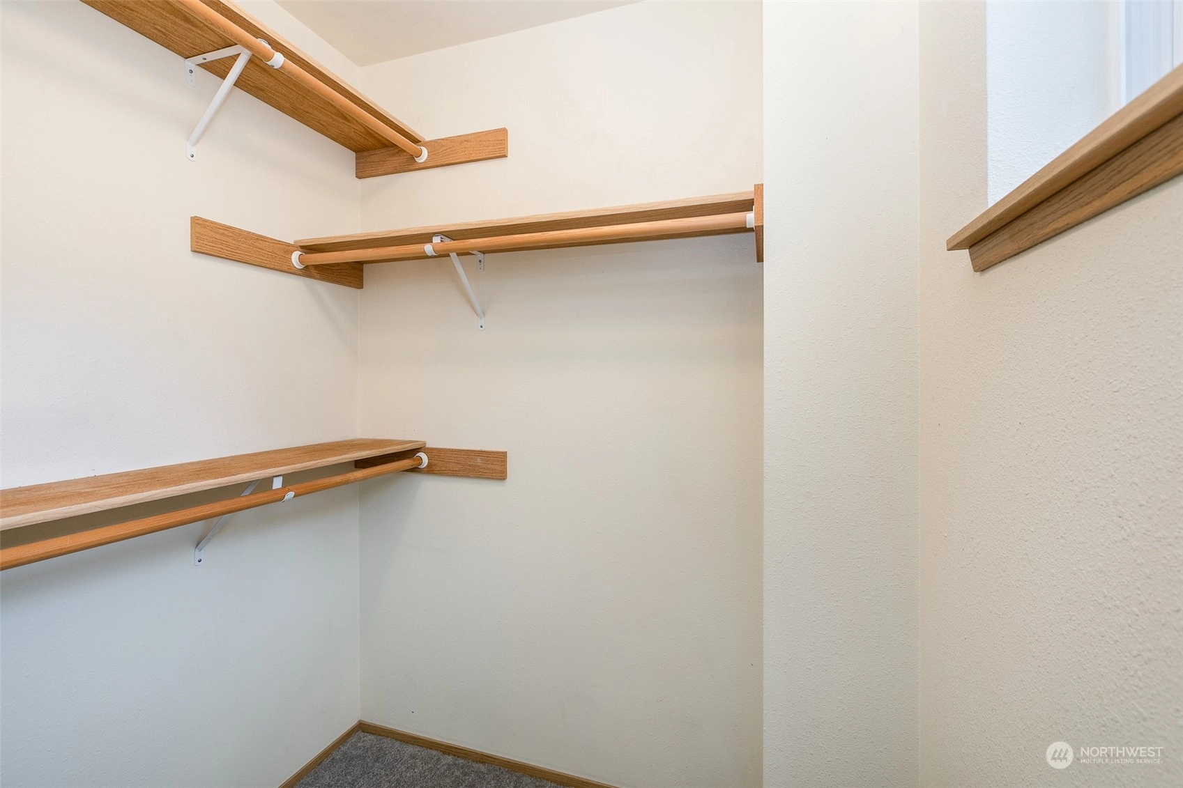 Offer verbally accepted. Lovely two bedroom, 2.5 bathroom townhouse just minutes from freeway access, downtown Puyallup restaurants and shops, and the fairgrounds. Low HOA dues include lawn maintenance allowing you to spend your time off enjoying life. Lower level entry from outdoors or private garage, a large living room w/gas fireplace, half bathroom, dining room, kitchen and utility room. The upper floor features new carpeting, a huge primary suite w/walk-in closet and full bathroom, and a 3/4 bathroom. The 2nd upper bedroom features drop down ladder access to a large storage area in the attic freeing up space in the garage for parking. Newer PEX plumbing, central AC. Buyer to verify all info to satisfaction.