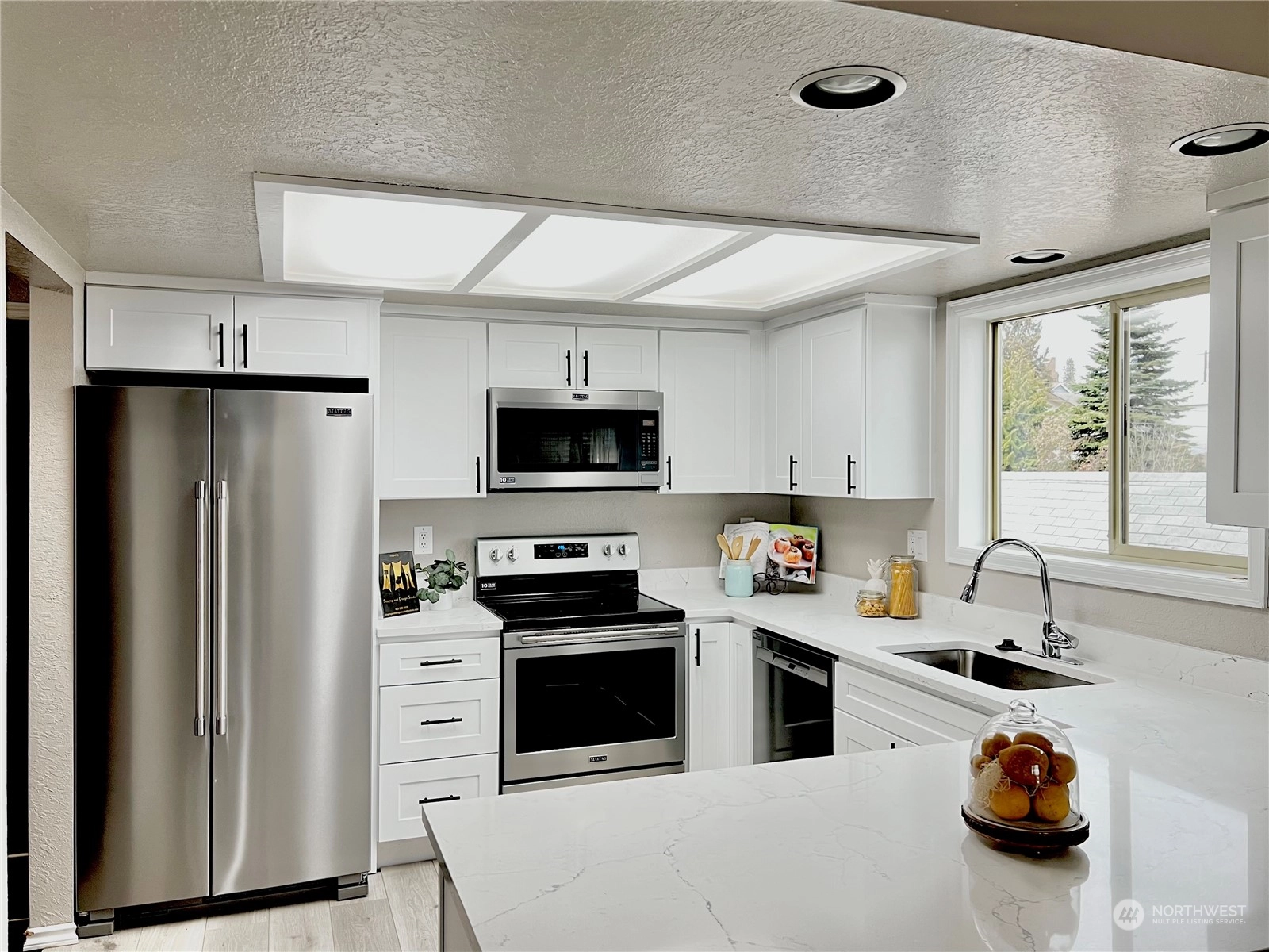 ~GEM OF A CONDO AT FABULOUS PRICE~ SELLER CREDIT $10K towards buy down rate/closing costs. Magnificent unobstructed view of the Cascade Mountains & beautiful sunrises. Home overlooks the Everett Stadium & has a great view of all the sporting events right from your generously sized balcony. 2 story condo with brand new remodeled kitchen & brand new stainless steel appliance. Dining room & living with fireplace. Guest bath on the main level. Upstairs you will find the master with walk-in closet & full bath. Covered parking below unit. Minutes to BOEING, EZ access to I-5! Condo complex offers yard and road maintenance, window washing, water, sewage, garbage, and insurance included in HOA dues.