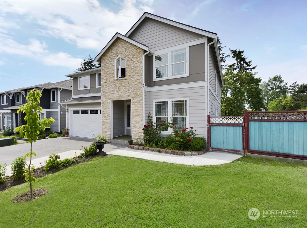 Gorgeous traditional 6 bedroom home with modern touches, beautiful stack stone entry features 6 spacious bedrooms, 9ft ceilings, 3.5 baths. Hardwood floors throughout main floor. Chefs Kitchen with large Island at center stage with plenty of seating featuring spacious walk in pantry. Solid stone counter tops and stainless steel appliances . Kitchen opens to large "Great" room. Separate formal dining area. Junior Suite on main level with full bath. Primary suite with double doors & luxurious 5 piece bath on 2nd floor. Fenced yard with garden space and lots of patio area great for little tikes play toys or sports court. Large covered back deck with patio for entertaining, backs to green space. No CCR's.