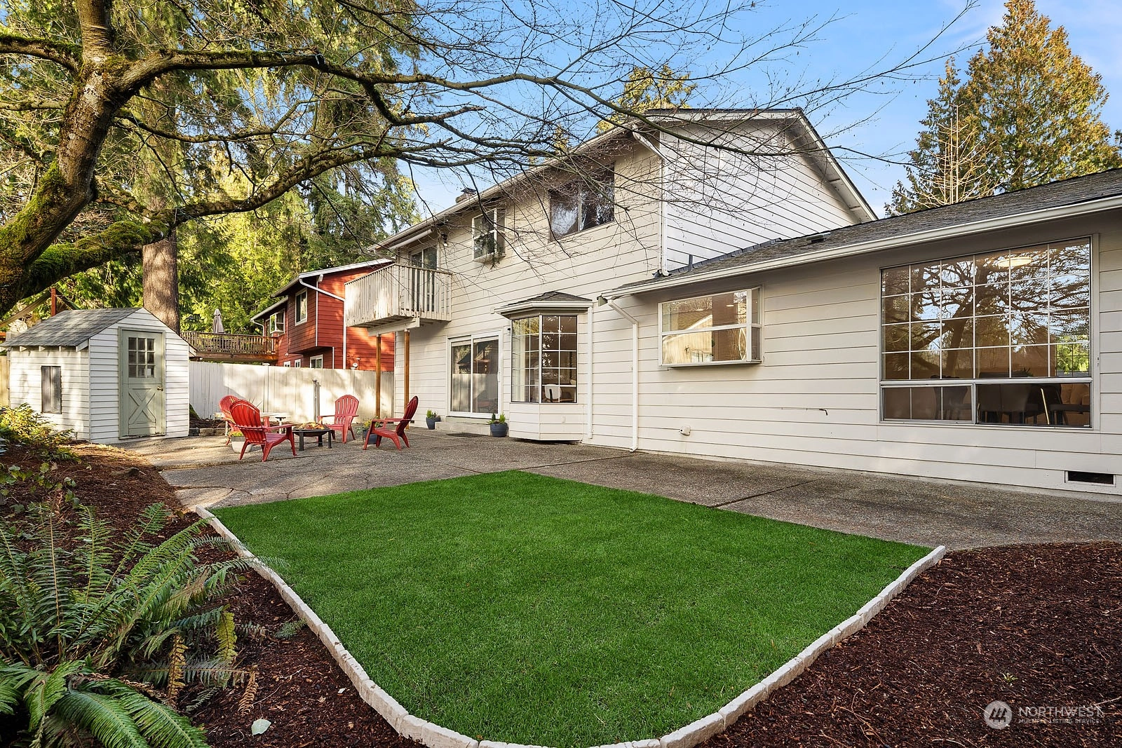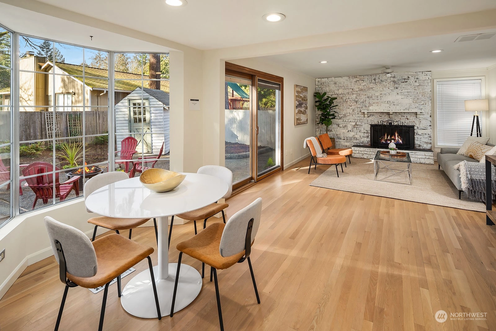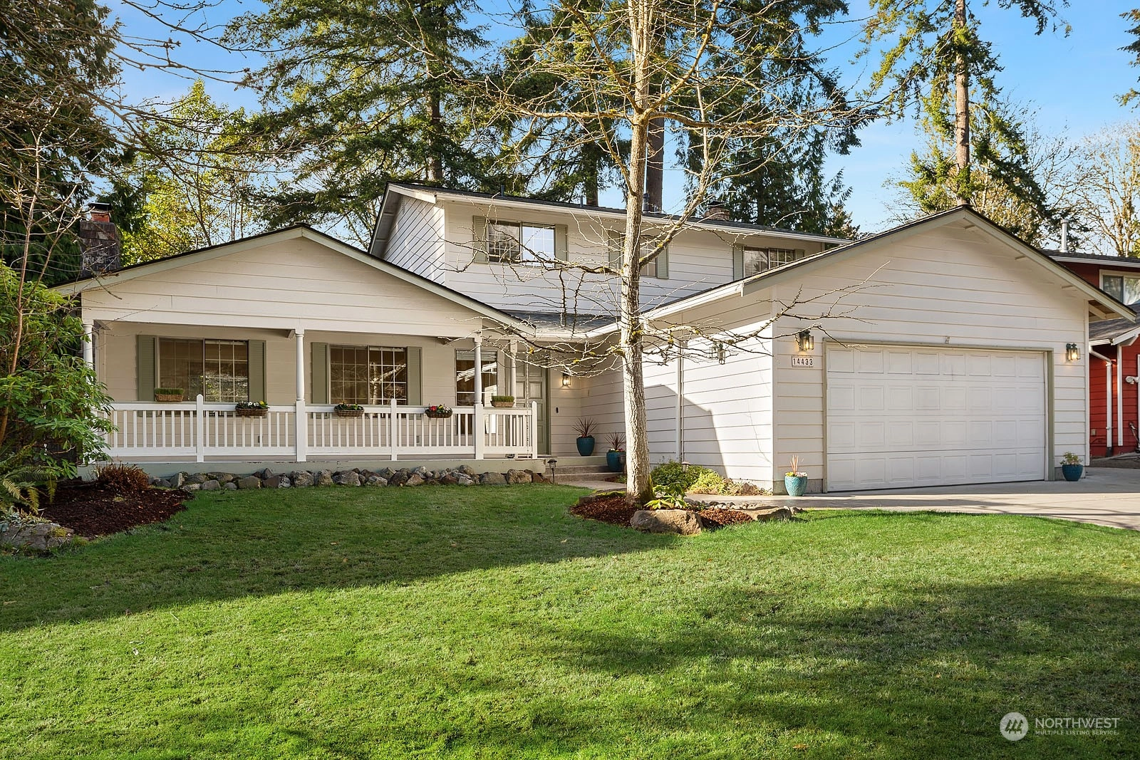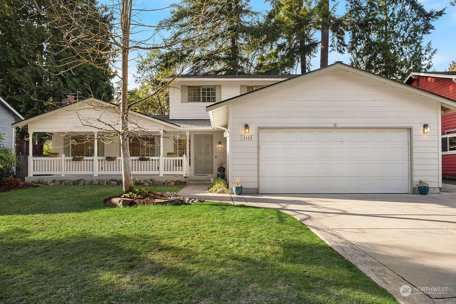 Beautiful Two Story House in high demand in North Juanita. This spacious 4 bd 2.5 bath is the best layout you can get! You pass the lovely large front porch, entering to the main floor that has a large living room with vaulted ceiling, dining room, open concept kitchen with breakfast nook, SS appliances, powder room, and extra-large utility room. The upper floor primary bedroom has a fully remodeled bathroom and sliding door open to a deck. Additional 3 more spacious bedrooms and a full bath. Two wood fireplaces in each living room, a fully fenced yard, a large patio for gathering, and fresh grass for playing outside. House has been pre-inspected. Easy access to 405 and award-winning LWSD.