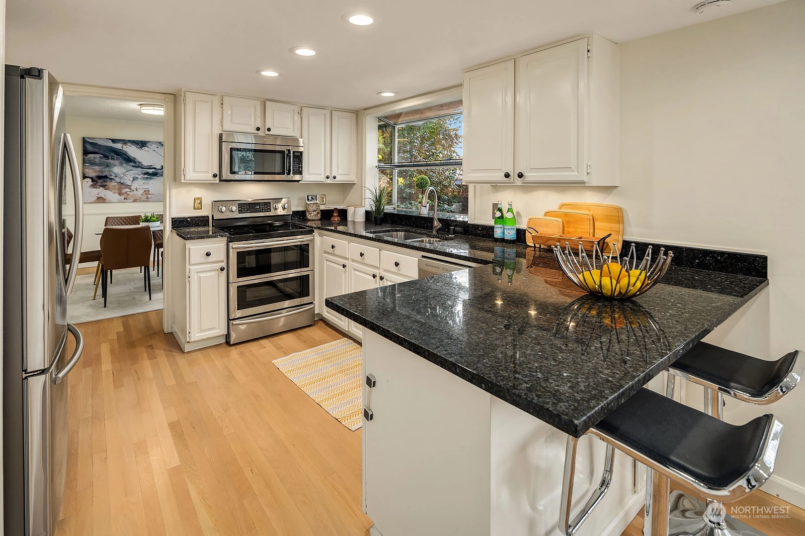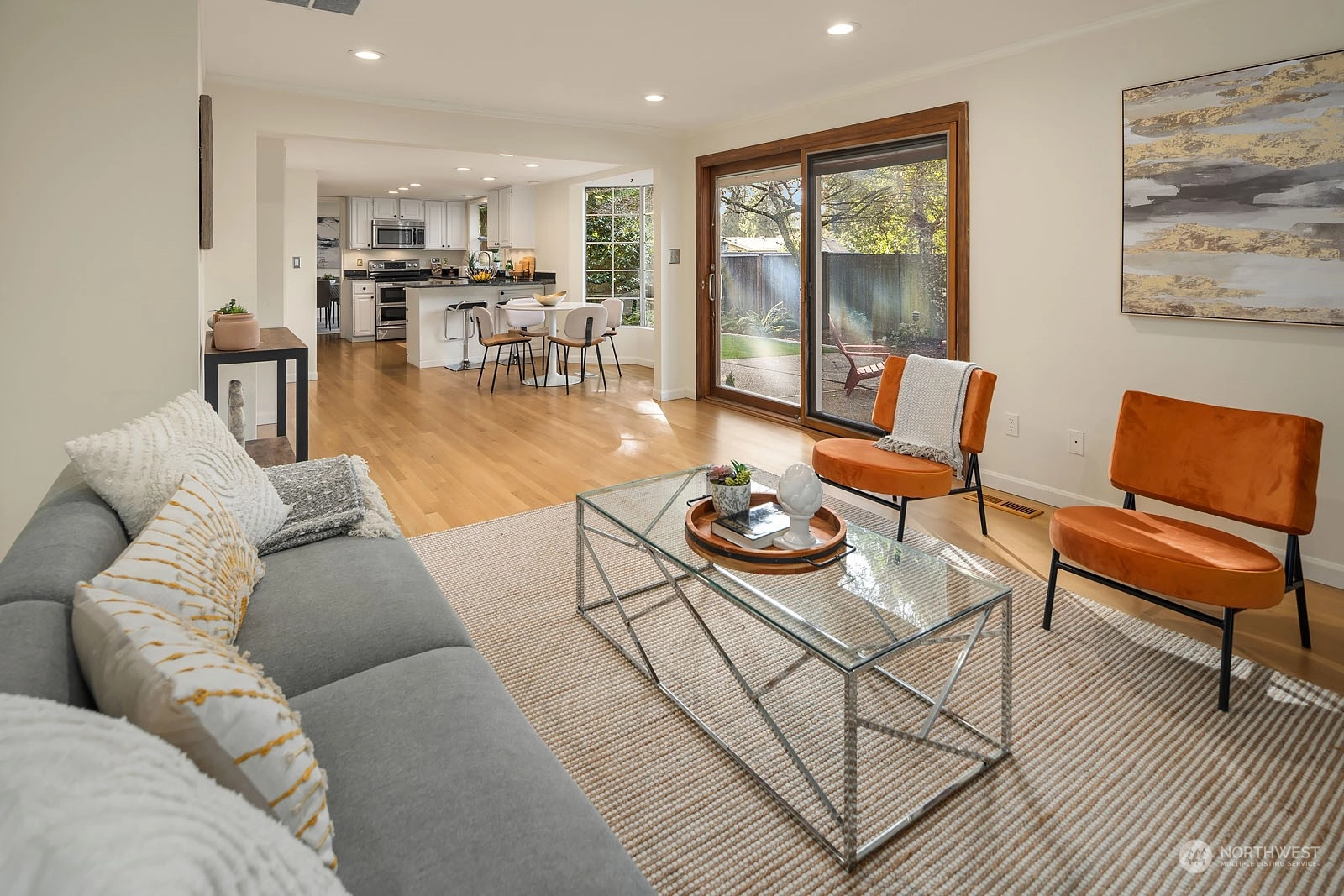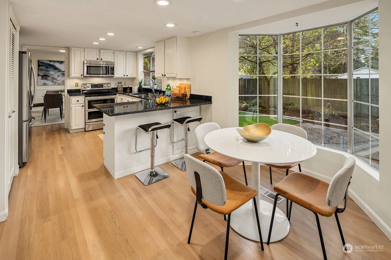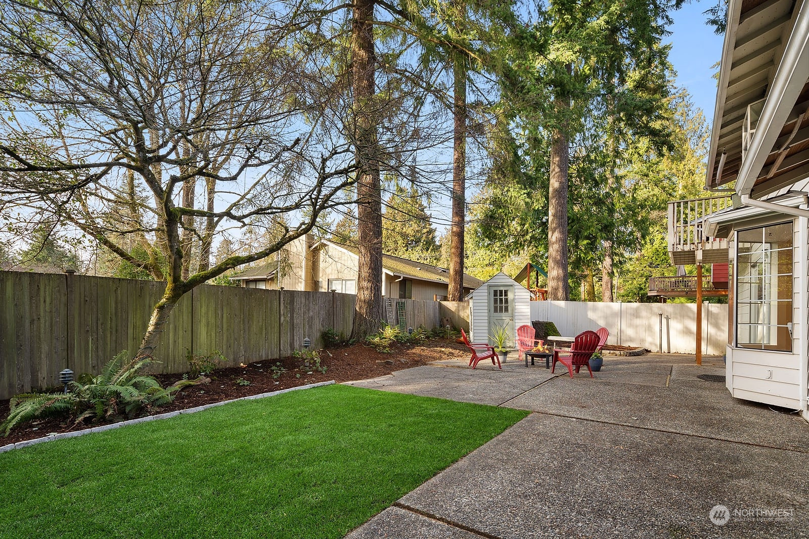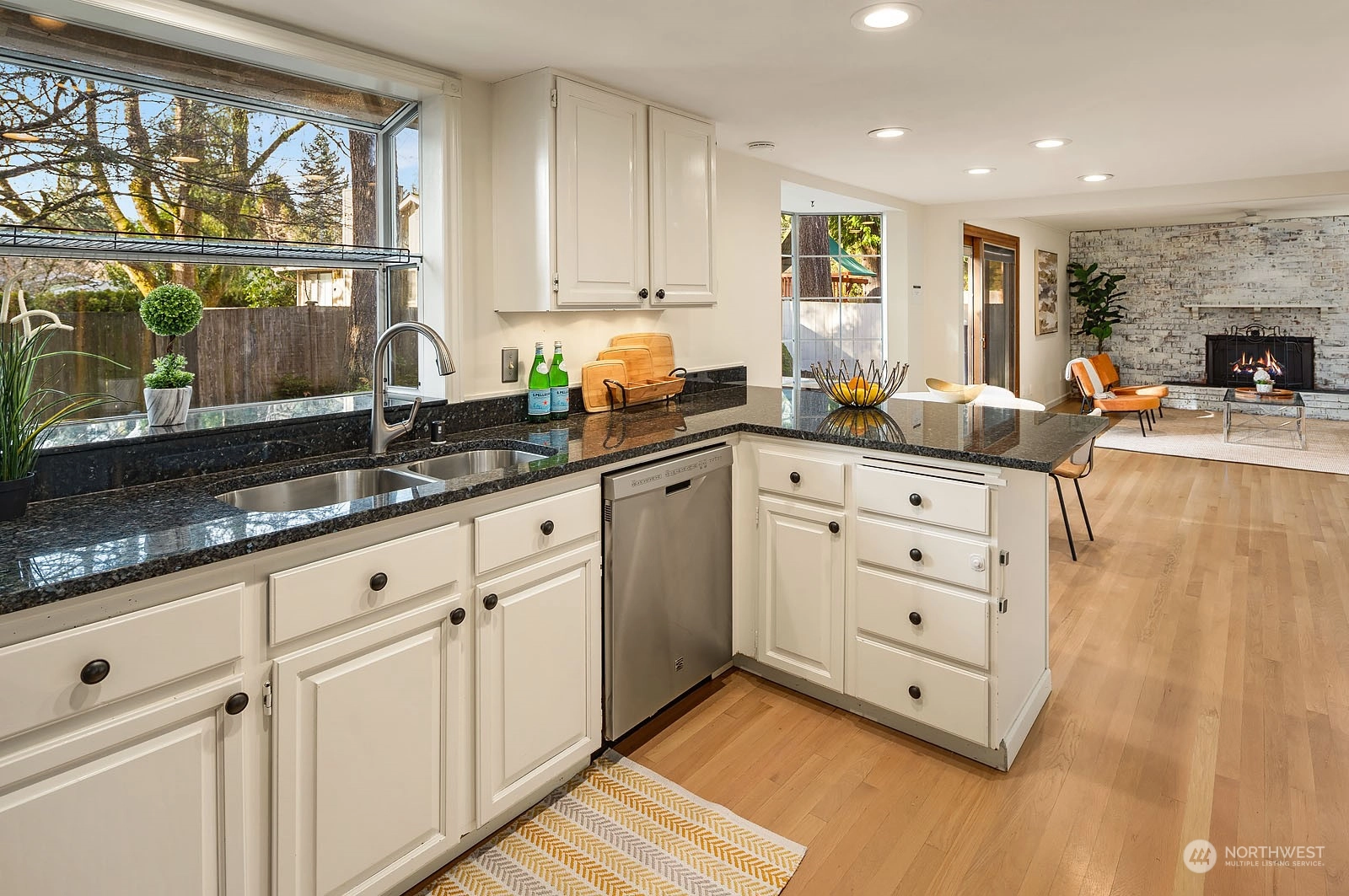 Beautiful Two Story House in high demand in North Juanita. This spacious 4 bd 2.5 bath is the best layout you can get! You pass the lovely large front porch, entering to the main floor that has a large living room with vaulted ceiling, dining room, open concept kitchen with breakfast nook, SS appliances, powder room, and extra-large utility room. The upper floor primary bedroom has a fully remodeled bathroom and sliding door open to a deck. Additional 3 more spacious bedrooms and a full bath. Two wood fireplaces in each living room, a fully fenced yard, a large patio for gathering, and fresh grass for playing outside. House has been pre-inspected. Easy access to 405 and award-winning LWSD.