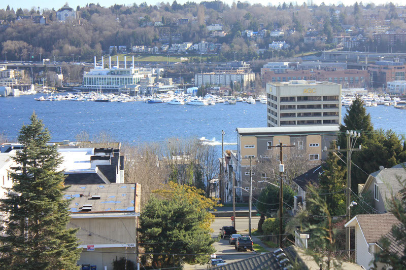 Beautiful 2 bedroom / 1 bath condo, 952SF, with large deck overlooking Lake Union & downtown & Space Needle. Secured building, covered walking. Covered assigned parking for two vehicles.