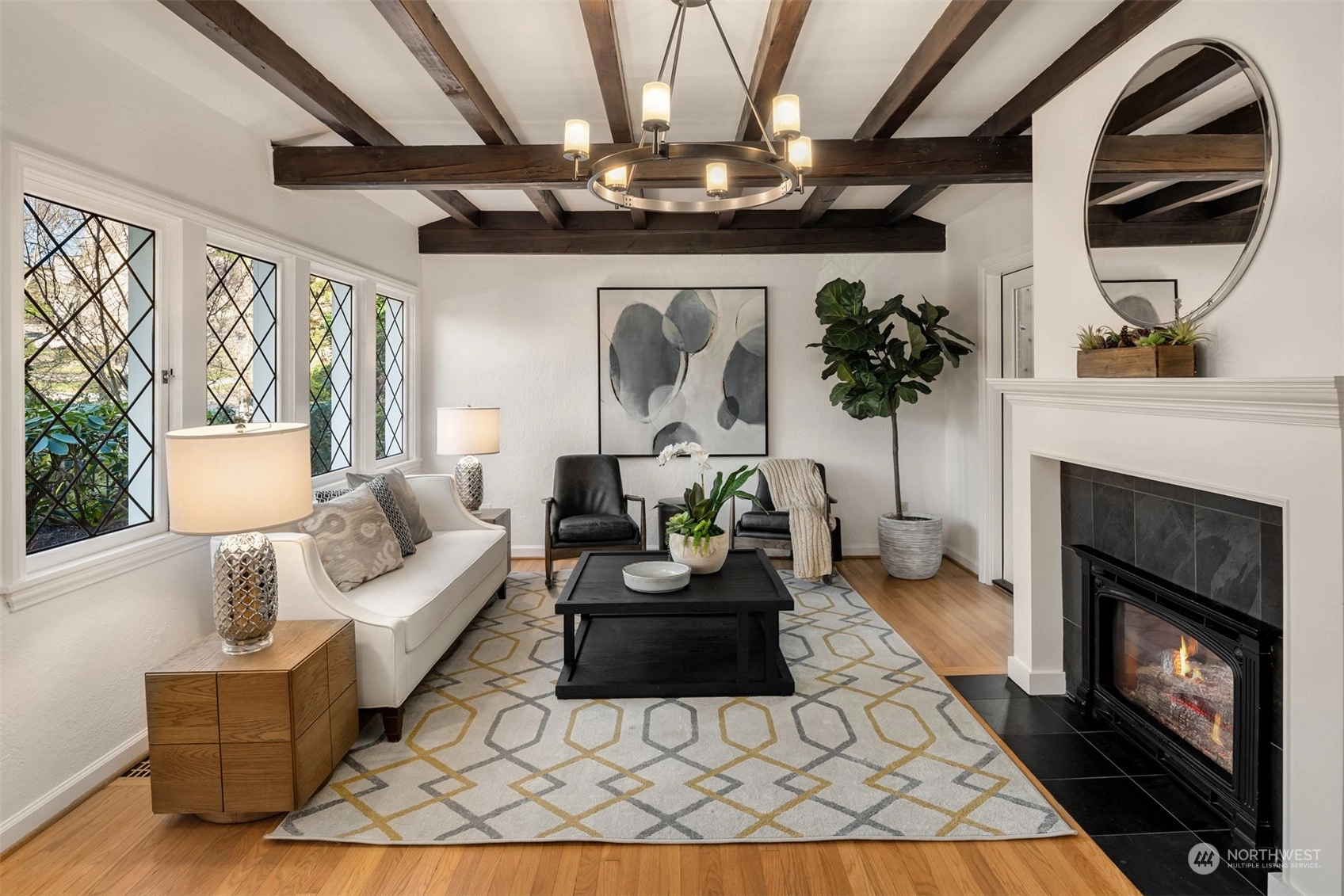Timeless Laurelhurst home, meticulously prepared for market. Rare, flexible floor plan with main floor primary bedroom, gathering areas on all three floors and Nano doors opening to a private, cozy outdoor living room. Incredible architectural features like box beam ceiling and lead glass windows. New paint, new sewer line and new hot water heater included in the extensive update list. Automatic Membership to Laurelhurst Beach Club enjoy sailing lessons and all beach activities, lifeguards June to October. Access to Light Rail from bus across the street. Steps to Laurelhurst Park, Children's Hospital, UW and University Village. Respected Laurelhurst Elem, Eckstein MS and Roosevelt HS. Endless options wrapped in this beautiful classic home.