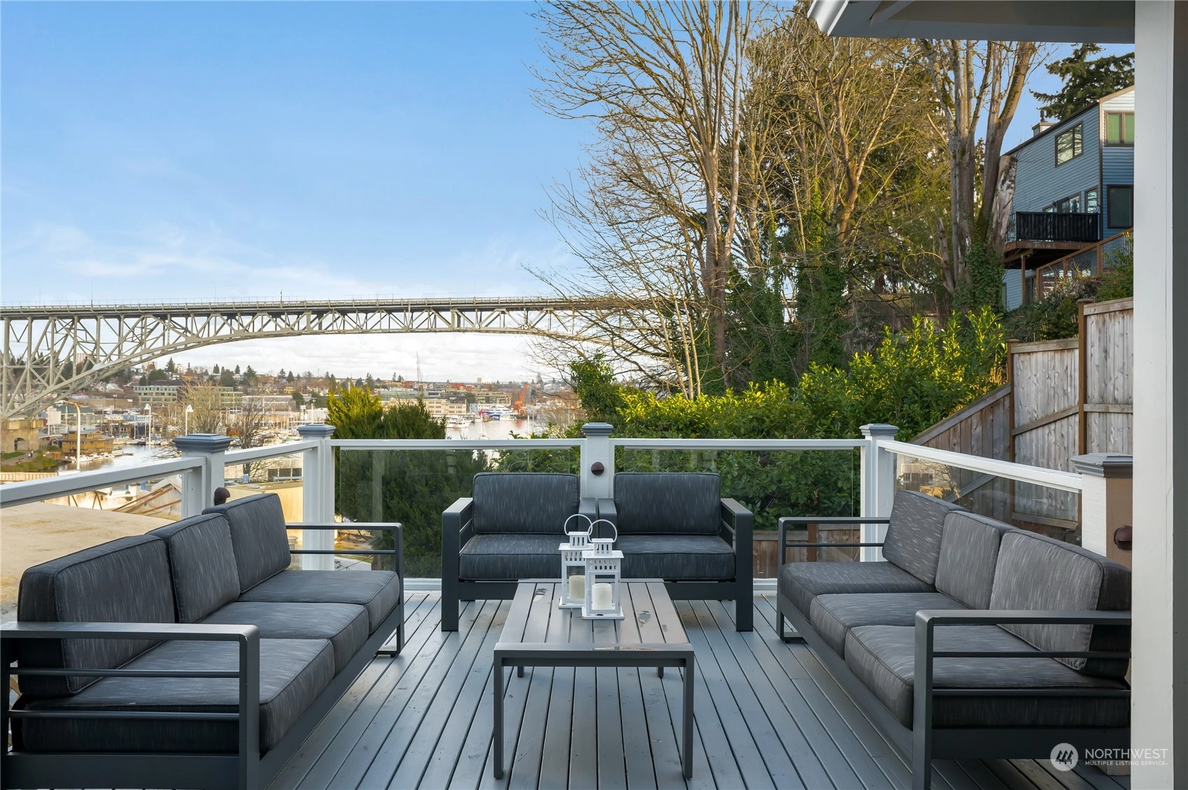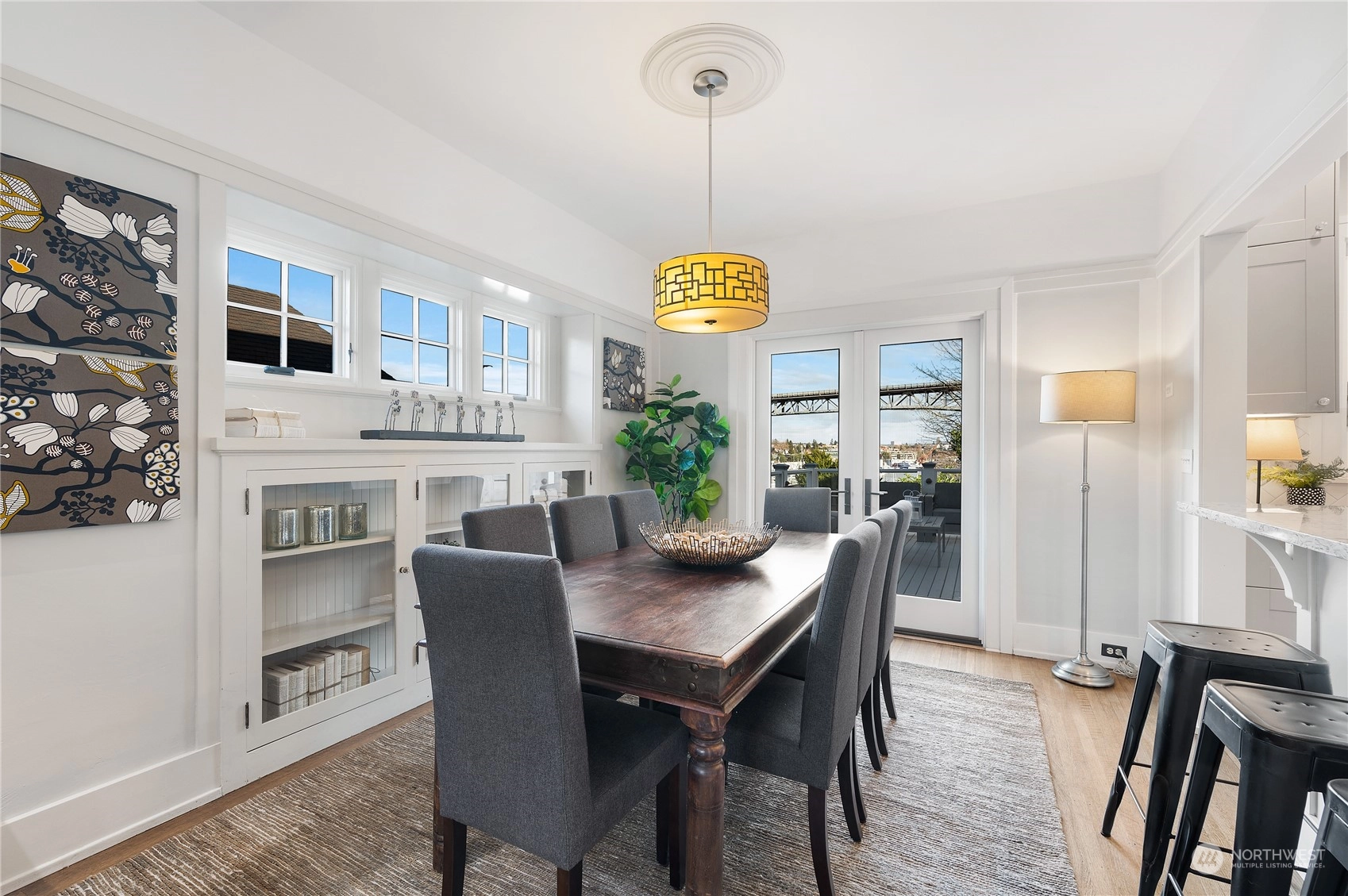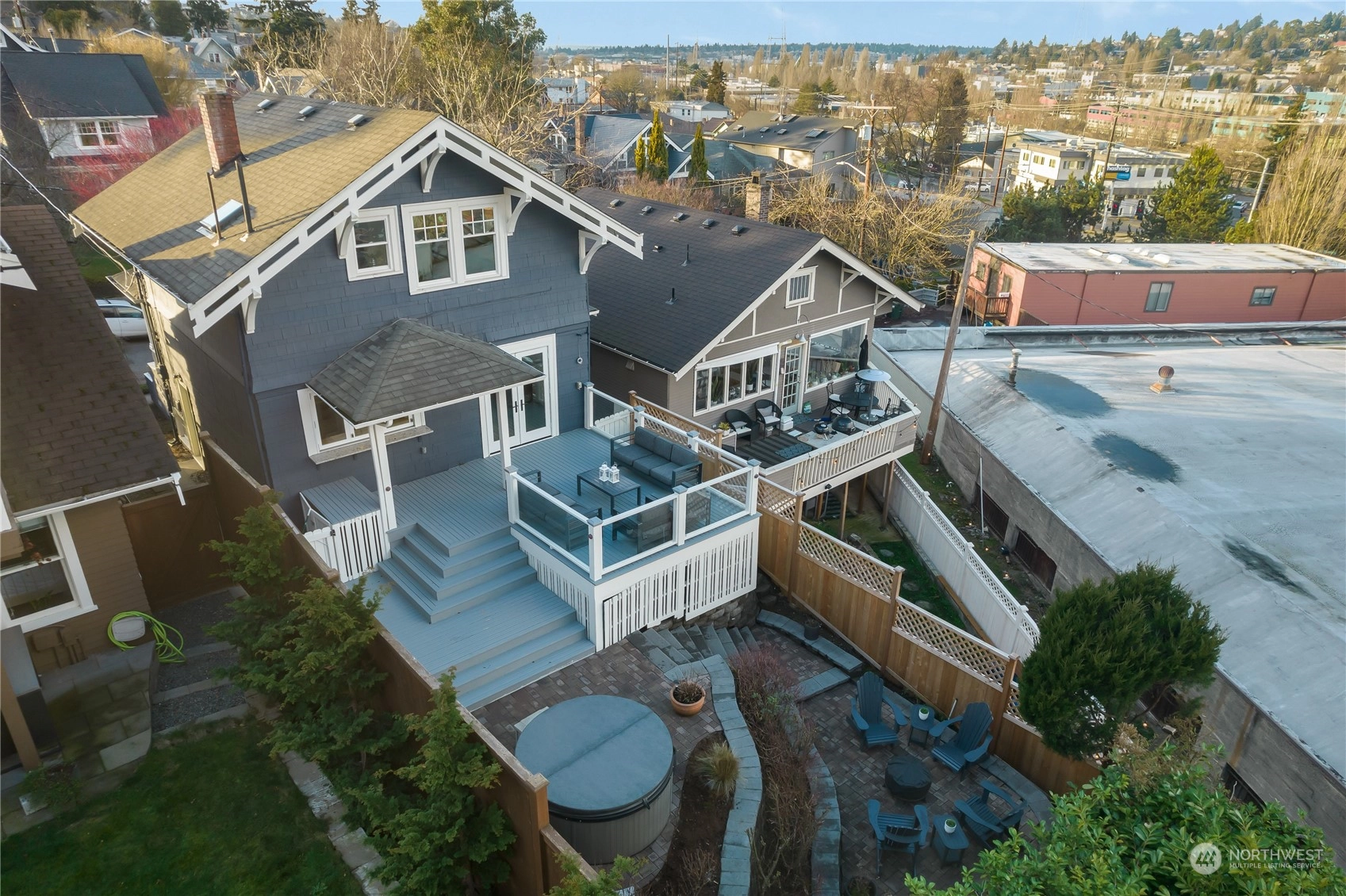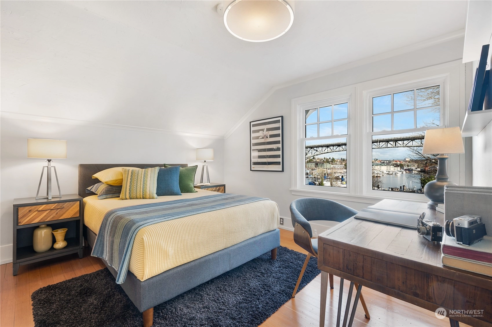 Classic Craftsman style Bungalow with views of Lake Union and the Cascade Mountains from the main floor and upstairs! But wait, there’s more! Striking curb appeal, charm and character throughout, an updated kitchen with a window above the sink that opens to a serving counter for your guests as they enjoy the deck views, a fenced-in back yard replete with garden beds and a hot tub, a dedicated en-suite office, and even a cozy movie room. Now the brass tacks; Pella windows installed throughout the home in 2021, a full exterior painting in 2020, new French doors to the deck & front door installed 2021, & even extra storage, including a cooled wine cellar. Easily walk from home across the Fremont Bridge to the PCC, restaurants, & yummy coffee.