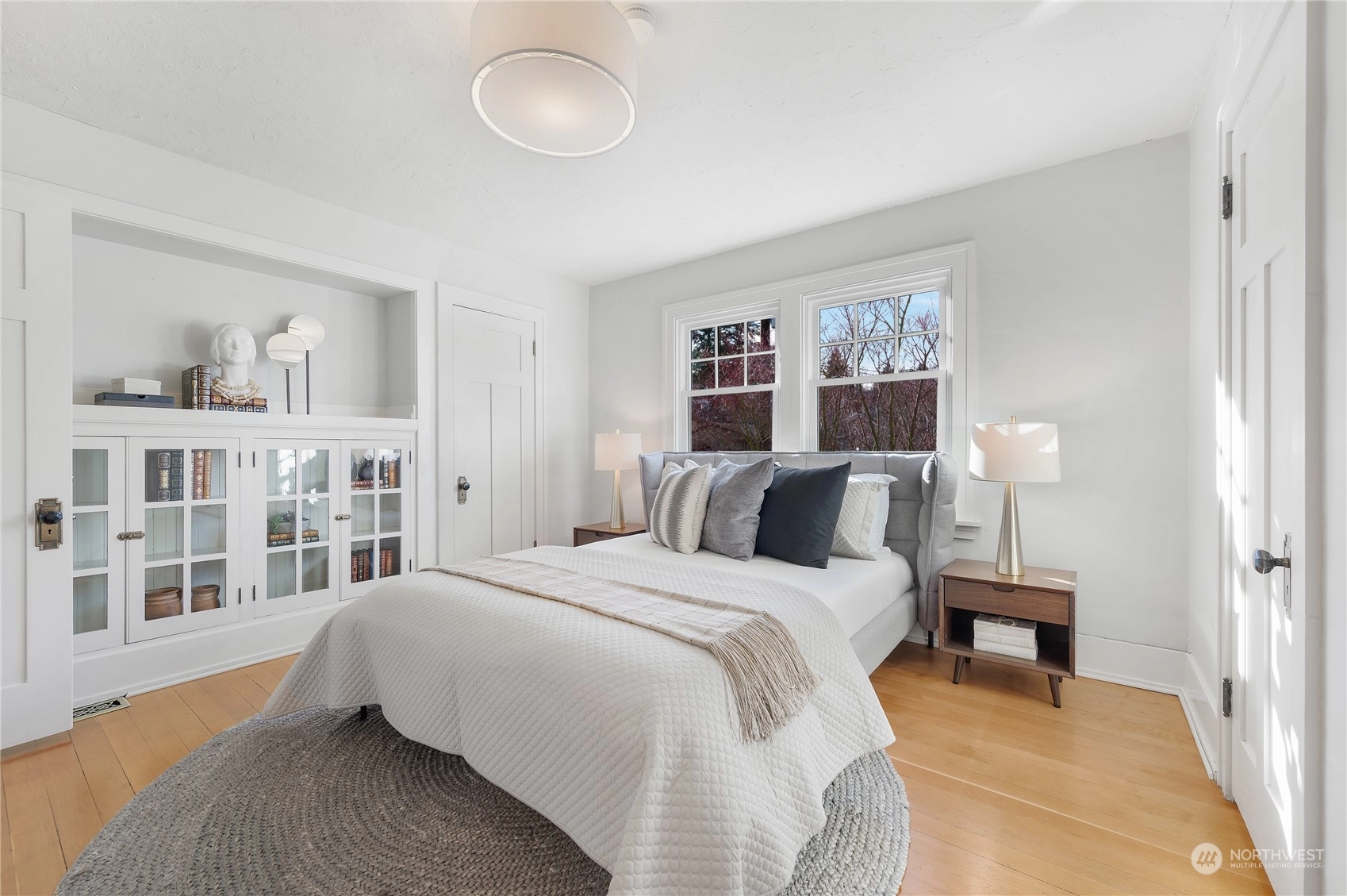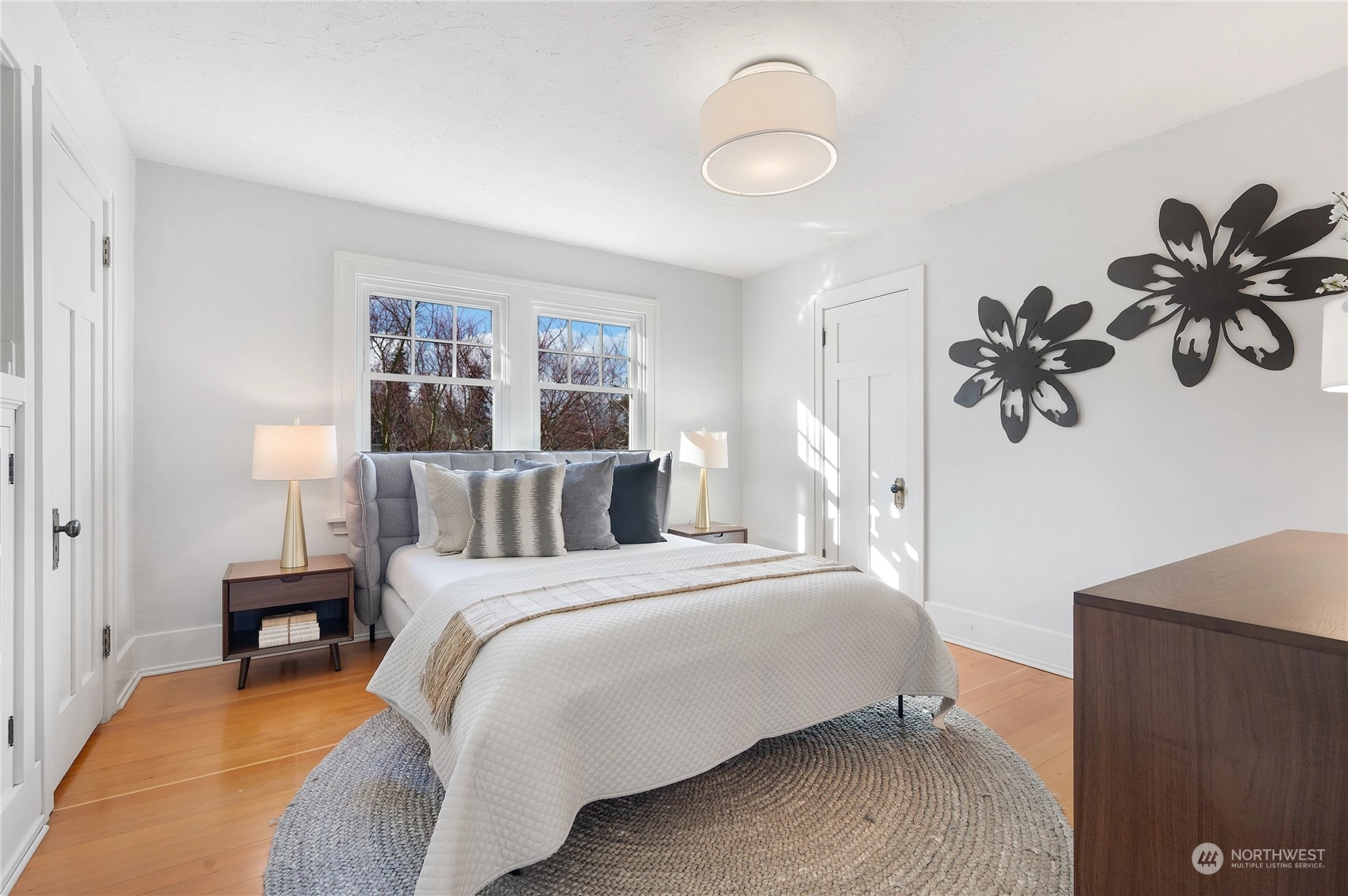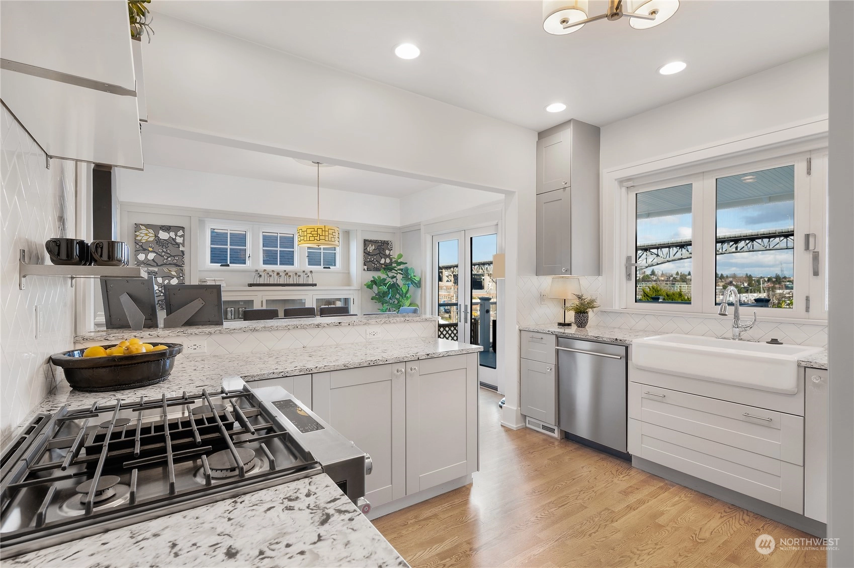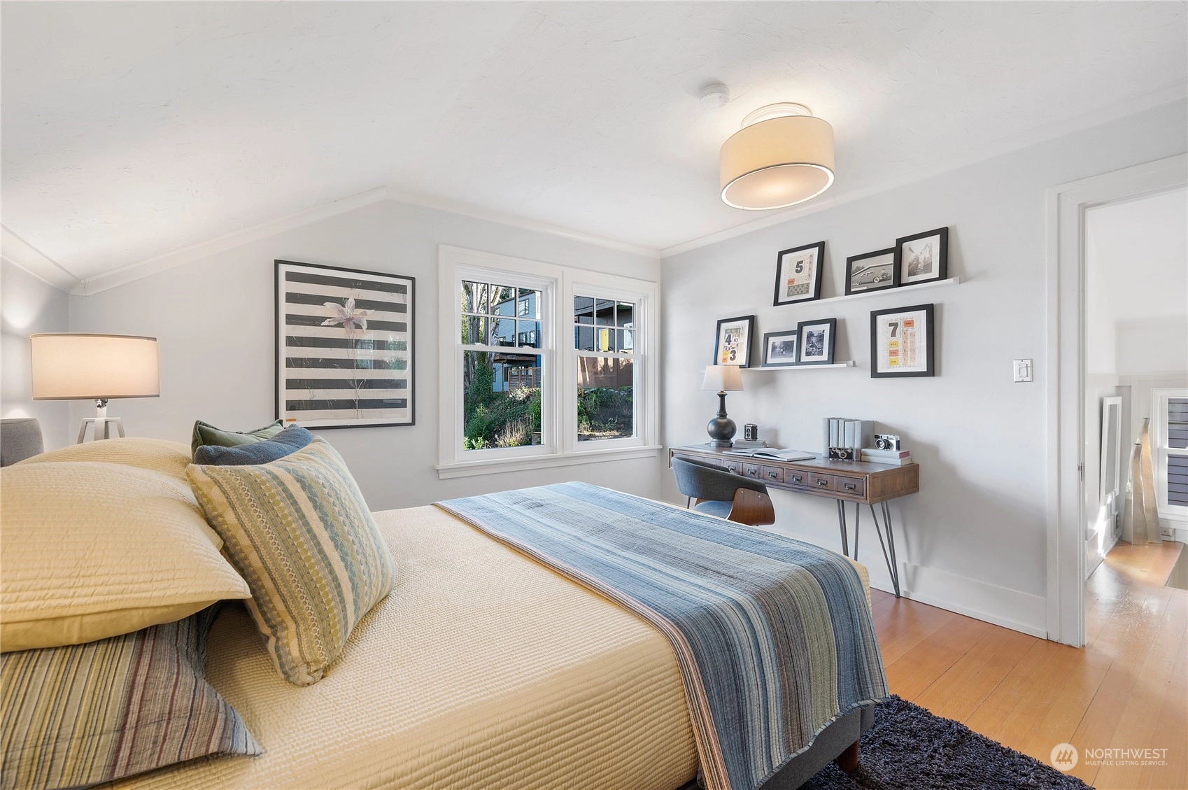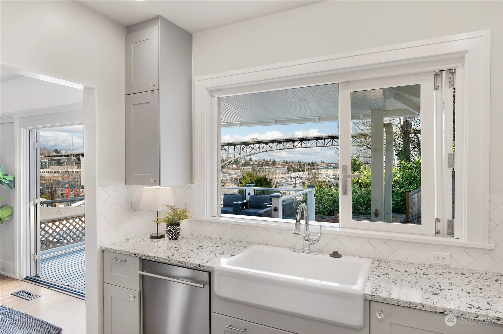 Classic Craftsman style Bungalow with views of Lake Union and the Cascade Mountains from the main floor and upstairs! But wait, there’s more! Striking curb appeal, charm and character throughout, an updated kitchen with a window above the sink that opens to a serving counter for your guests as they enjoy the deck views, a fenced-in back yard replete with garden beds and a hot tub, a dedicated en-suite office, and even a cozy movie room. Now the brass tacks; Pella windows installed throughout the home in 2021, a full exterior painting in 2020, new French doors to the deck & front door installed 2021, & even extra storage, including a cooled wine cellar. Easily walk from home across the Fremont Bridge to the PCC, restaurants, & yummy coffee.