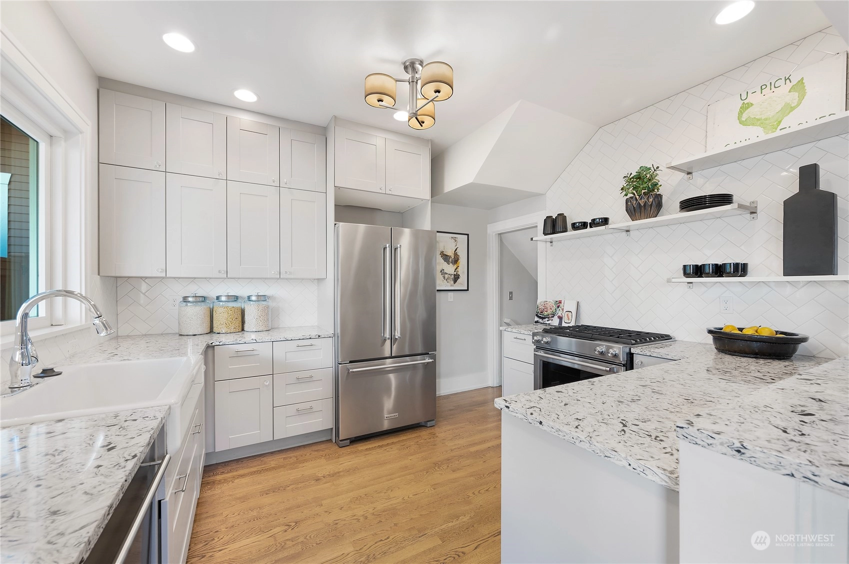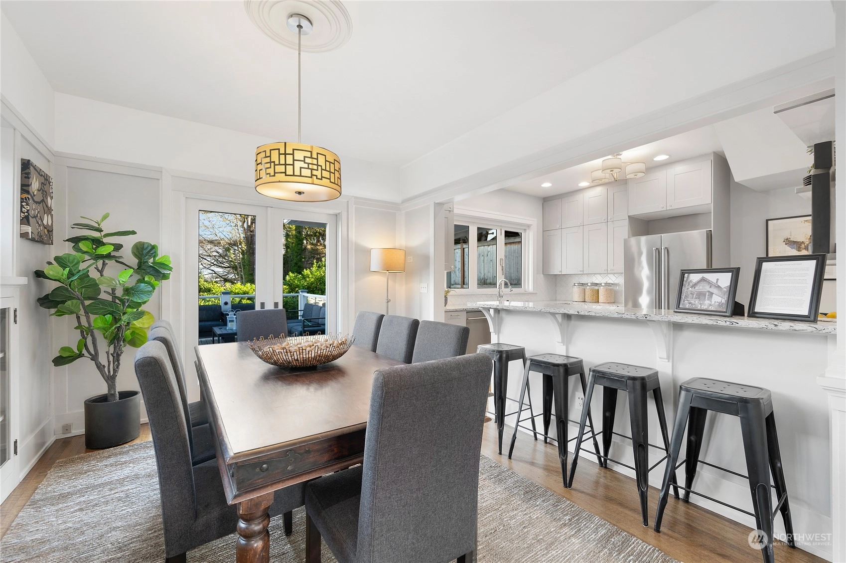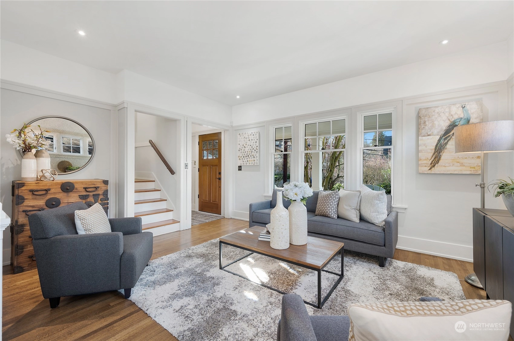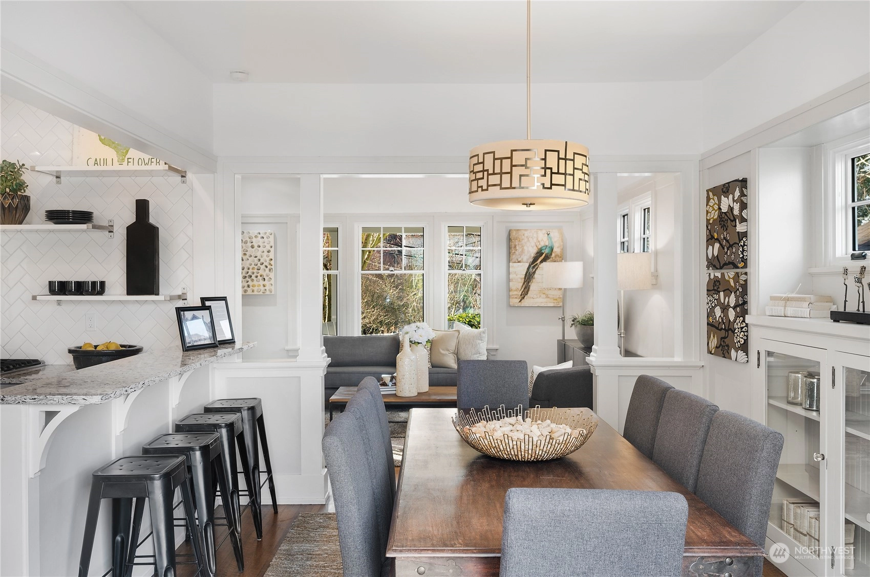 Classic Craftsman style Bungalow with views of Lake Union and the Cascade Mountains from the main floor and upstairs! But wait, there’s more! Striking curb appeal, charm and character throughout, an updated kitchen with a window above the sink that opens to a serving counter for your guests as they enjoy the deck views, a fenced-in back yard replete with garden beds and a hot tub, a dedicated en-suite office, and even a cozy movie room. Now the brass tacks; Pella windows installed throughout the home in 2021, a full exterior painting in 2020, new French doors to the deck & front door installed 2021, & even extra storage, including a cooled wine cellar. Easily walk from home across the Fremont Bridge to the PCC, restaurants, & yummy coffee.
