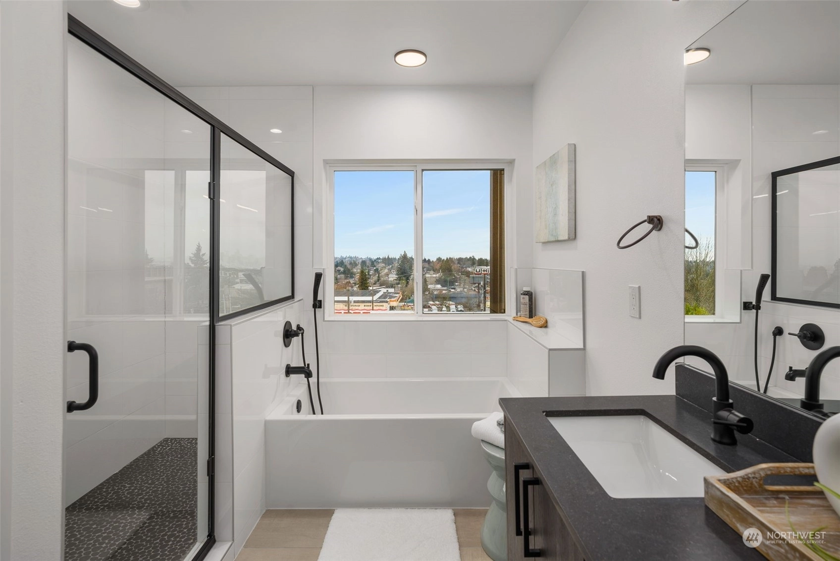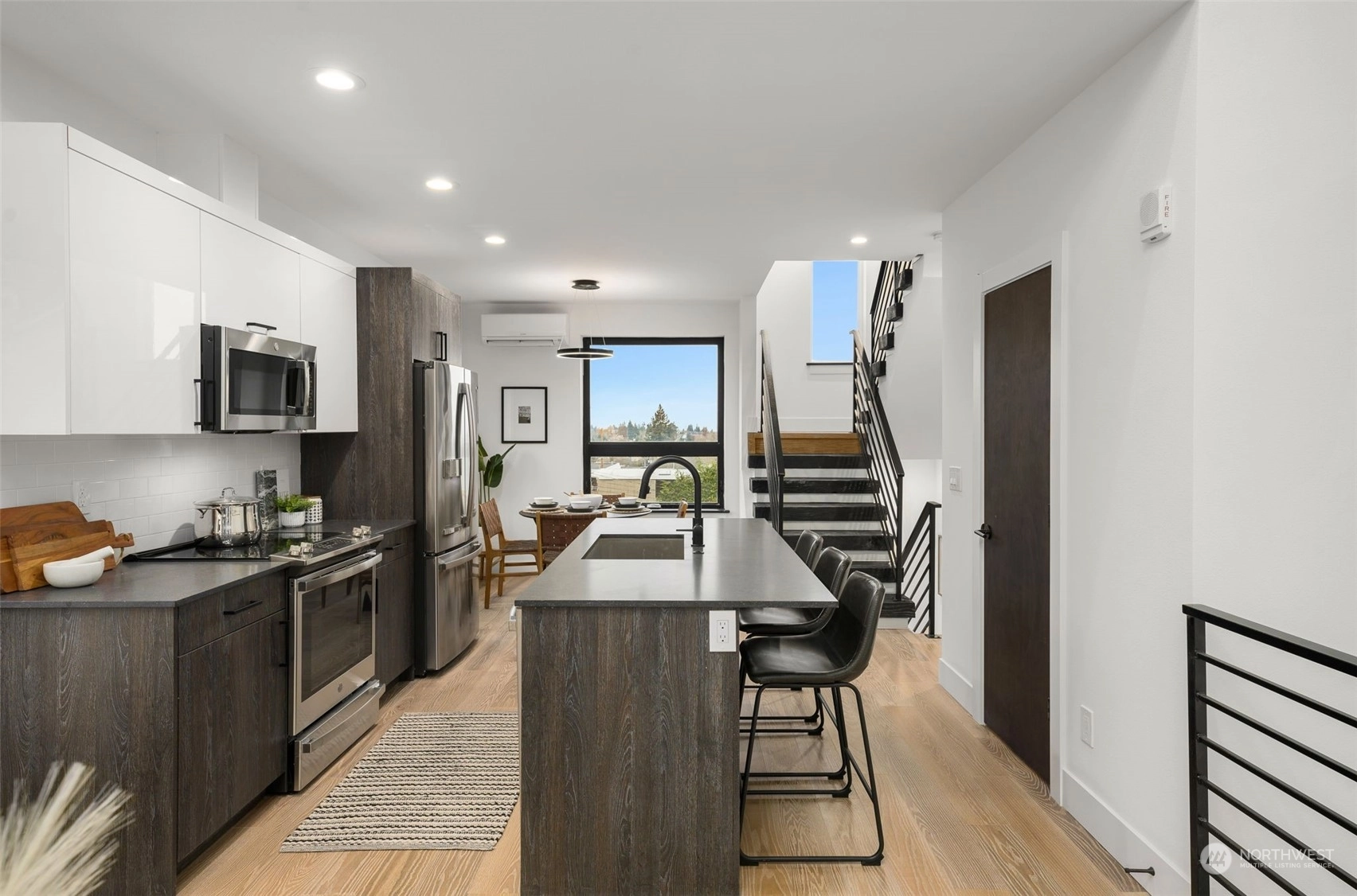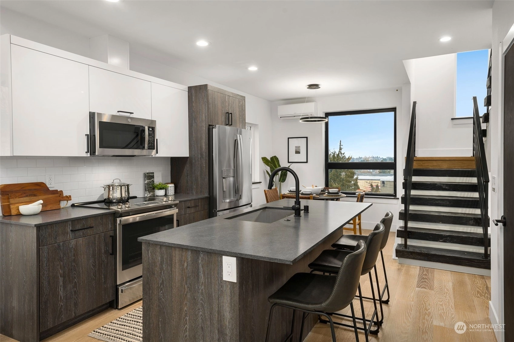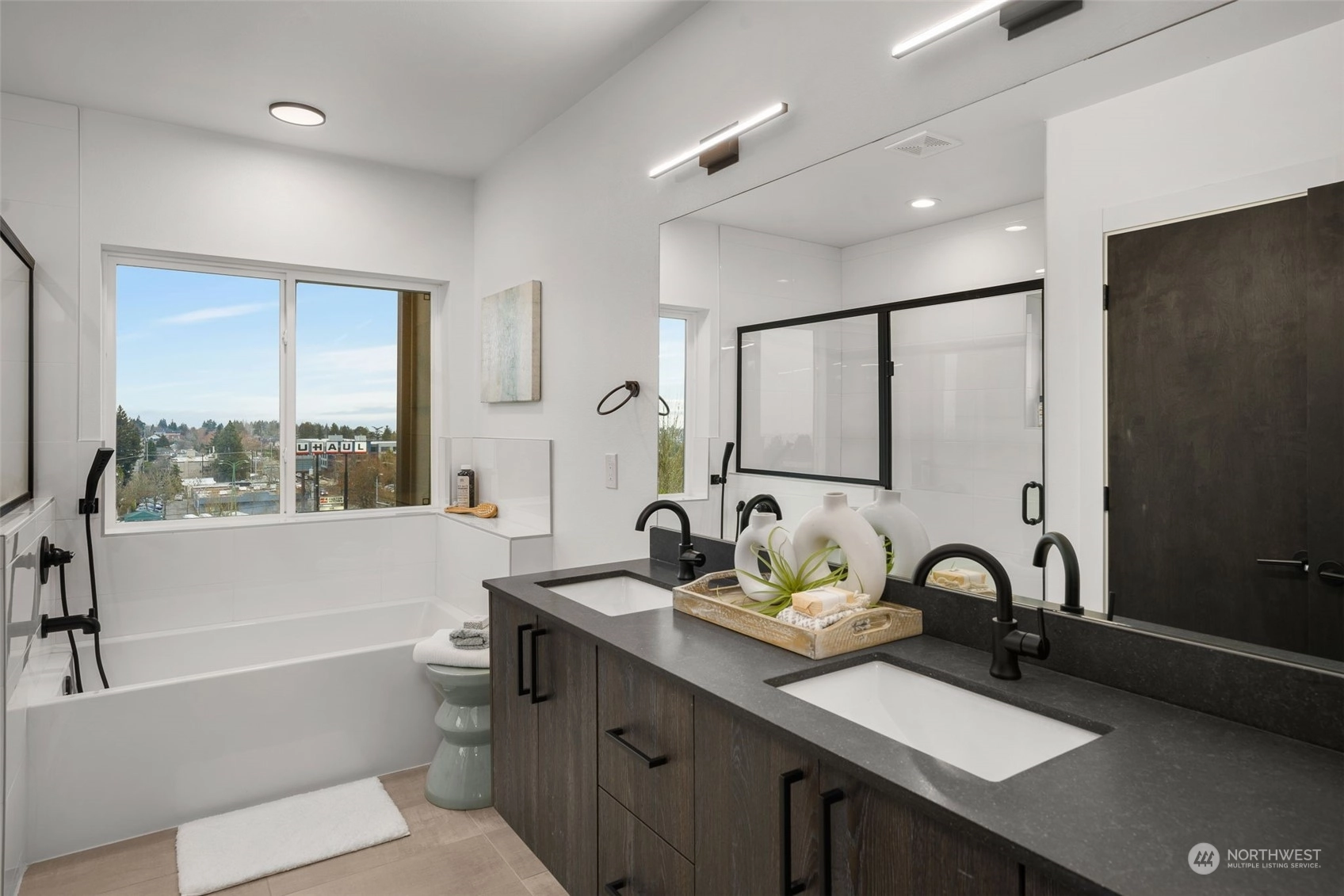These luxury residences in West Seattle live better than anything else on the market & YOU CAN MOVE IN TODAY! Elevated living & dining spaces offer vaulted ceilings, more privacy, better light, and gourmet kitchens w/ island seating. A significantly sized, lofted mezzanine level allows for a bonus media or study area. The primary suite is worthy of royalty with multiple closets, a dual vanity bath, standalone soaking tub, water closet, glass shower, and a private balcony. Upstairs, a generous roof deck provides sweeping views of sunrises to the east, sunsets to the west, downtown, the cascades, and everything in between! Your picturesque tree-lined courtyard and pad parking off the alley make this a once-in-a-lifetime opportunity!