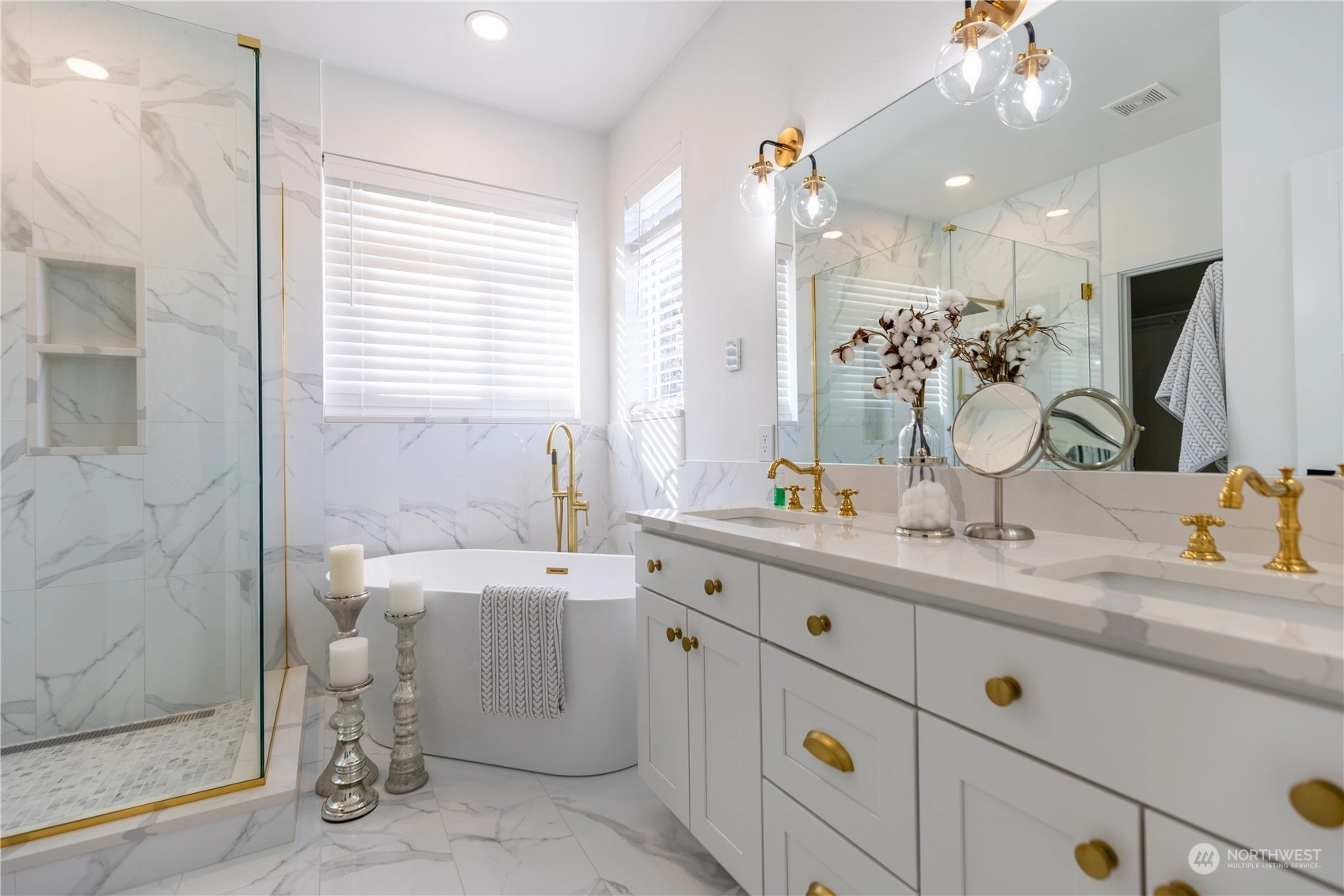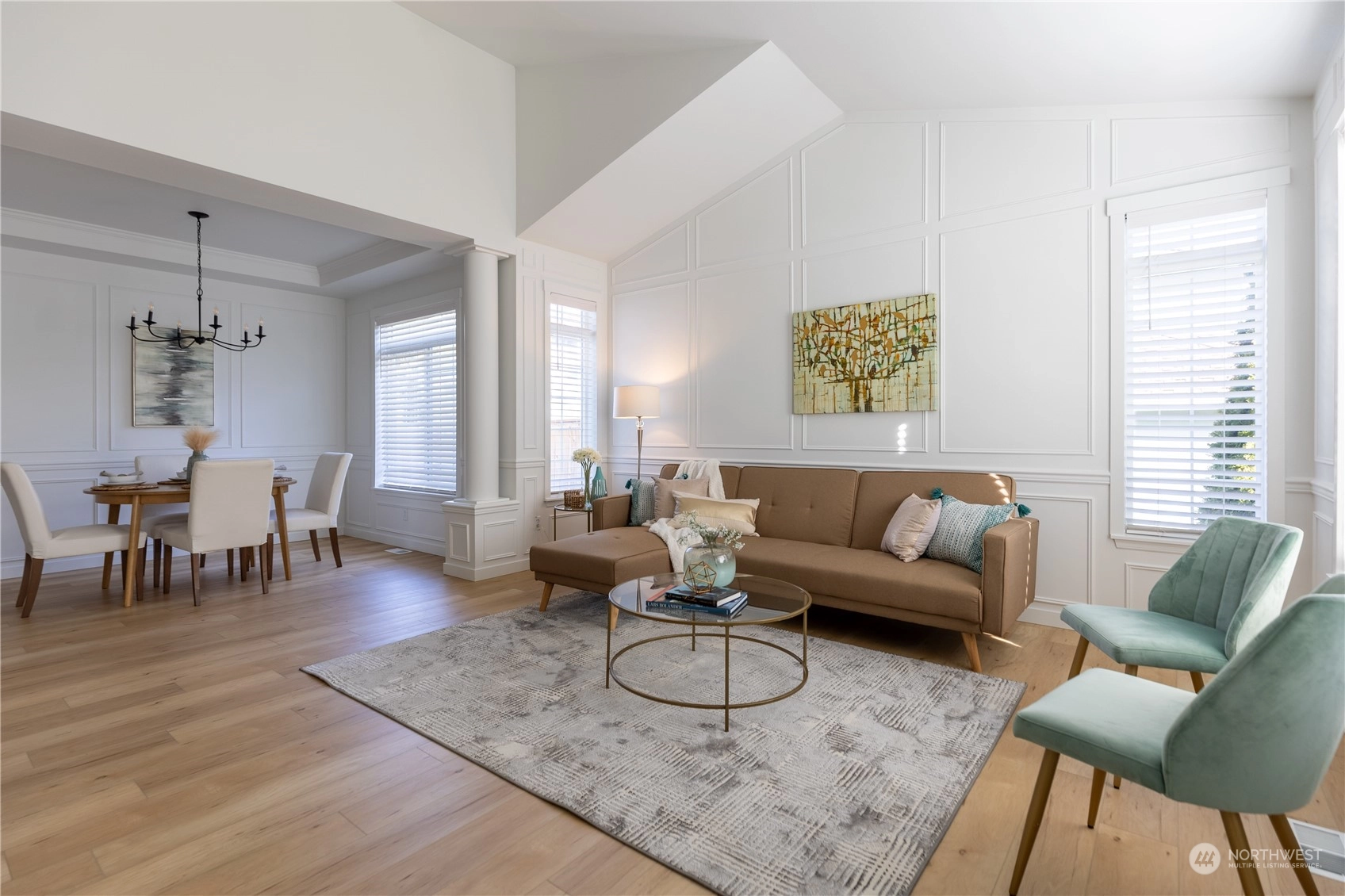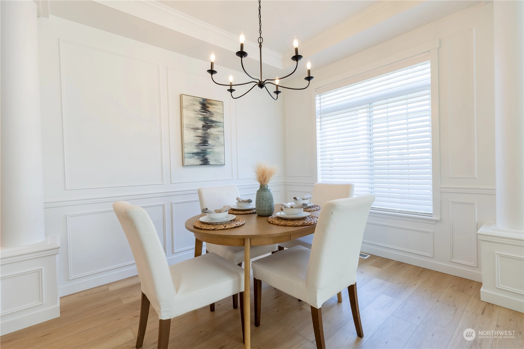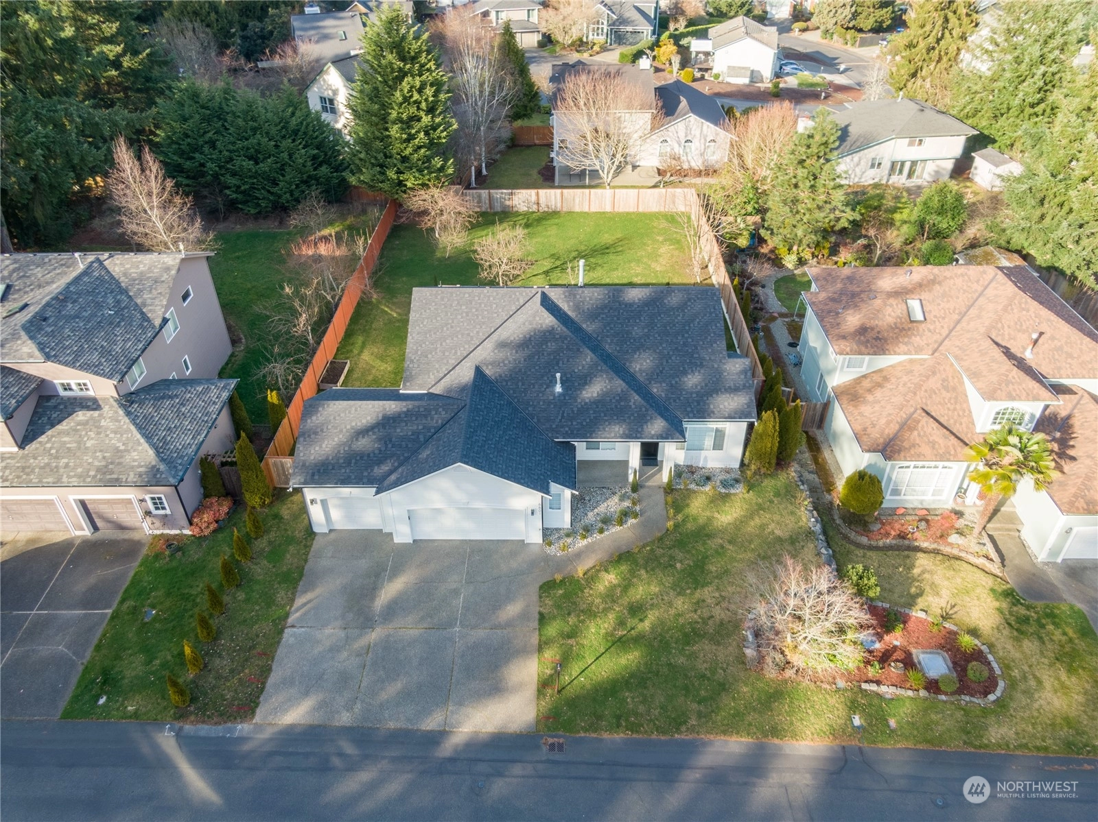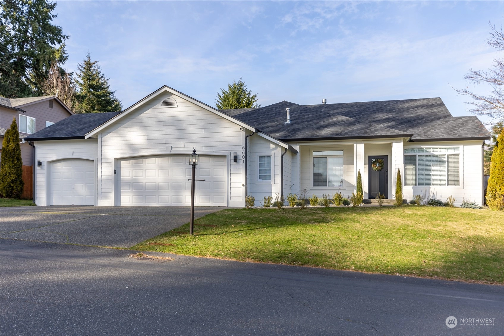 Beautiful and updated rambler in the highly sought after Chambers Creek Crossing Community! Open floorplan, with soaring vaulted ceilings, interior columns and wainscoting. Form living room and dining room, large kitchen is open to the cozy family room with gas fireplace. High ceilings and large windows make this home light and bright. Endless updates: new roof, new exterior and interior paint, new sprinkler system, new concrete patio in the backyard, new A/C, gas fireplace, new electric range, heated floors in primary bath, rigid core vinyl laminate flooring...simply turnkey! Fully fenced backyard with fruit trees...make this house your home!