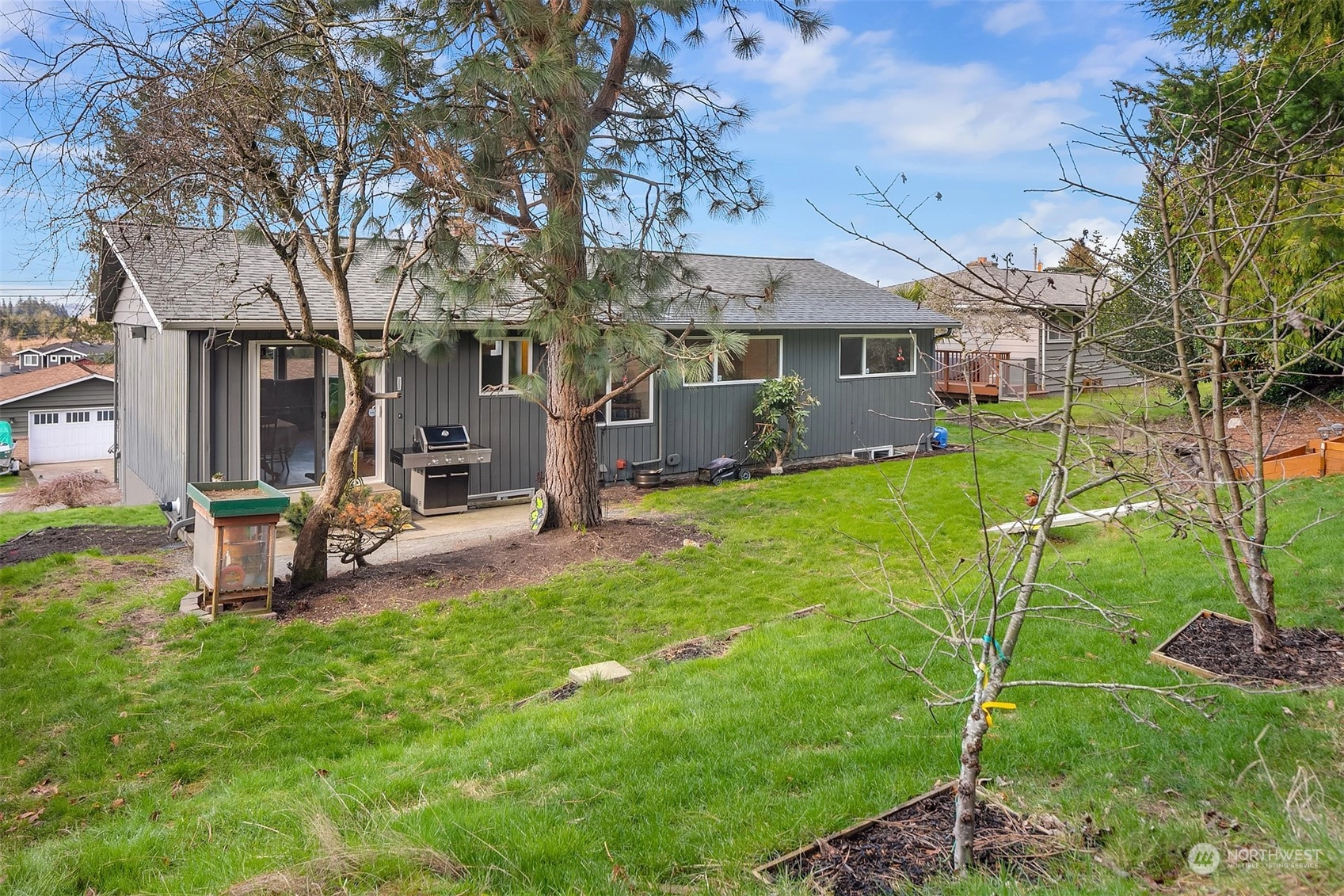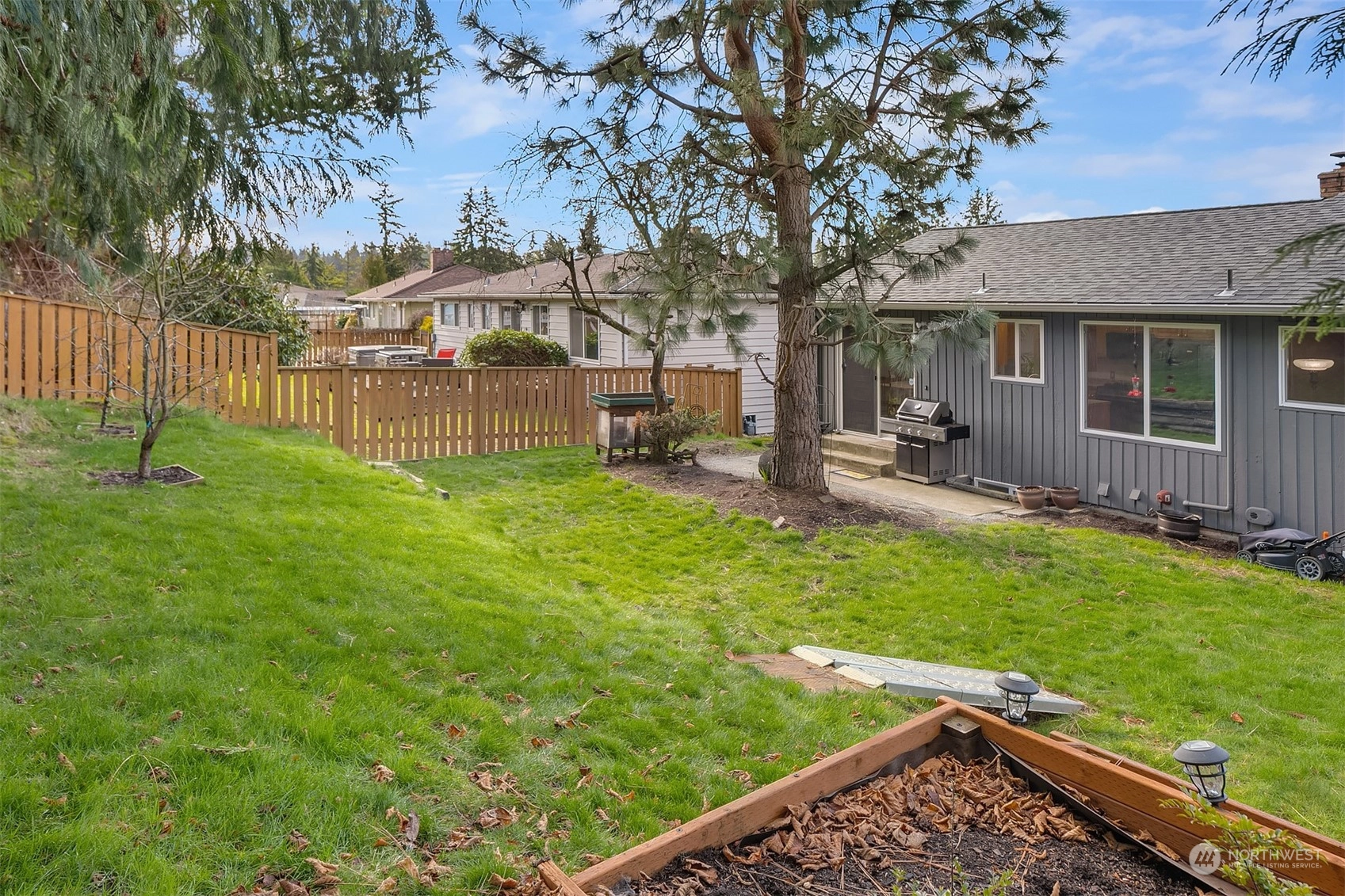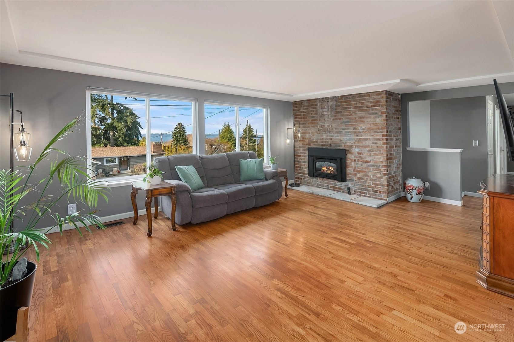 Updated 3-bed Mid-Century split-level home in the Edmonds Bowl. Enjoy sunsets & Puget Sound & Olympic Mountain views from the West-facing main floor & primary suite. New roof, fence, garage doors & tankless water heater. Rich oak hardwoods! Light & bright living & dining area offers seamless flow to the patio & backyard w/ raised garden beds. Kitchen looks out on the back yard & features built-ins & gas range. Lower level features a spacious additional entertaining area. Fireplaces on both levels! Dedicated laundry/mudroom w/ tons of storage space. Baths recently updated. Sited on a large 1/4 acre lot on a residential street. 2-car garage & ample street parking. Moments to downtown Edmonds shops, restaurants, farmer's market & beach.