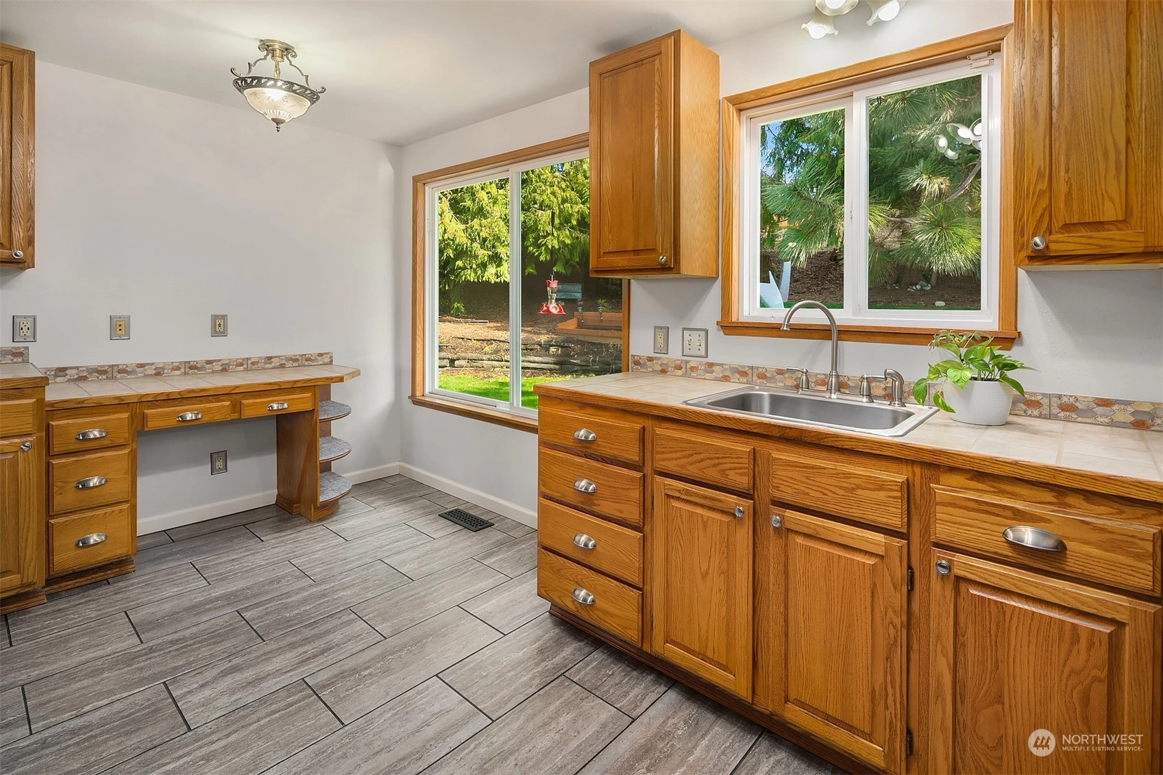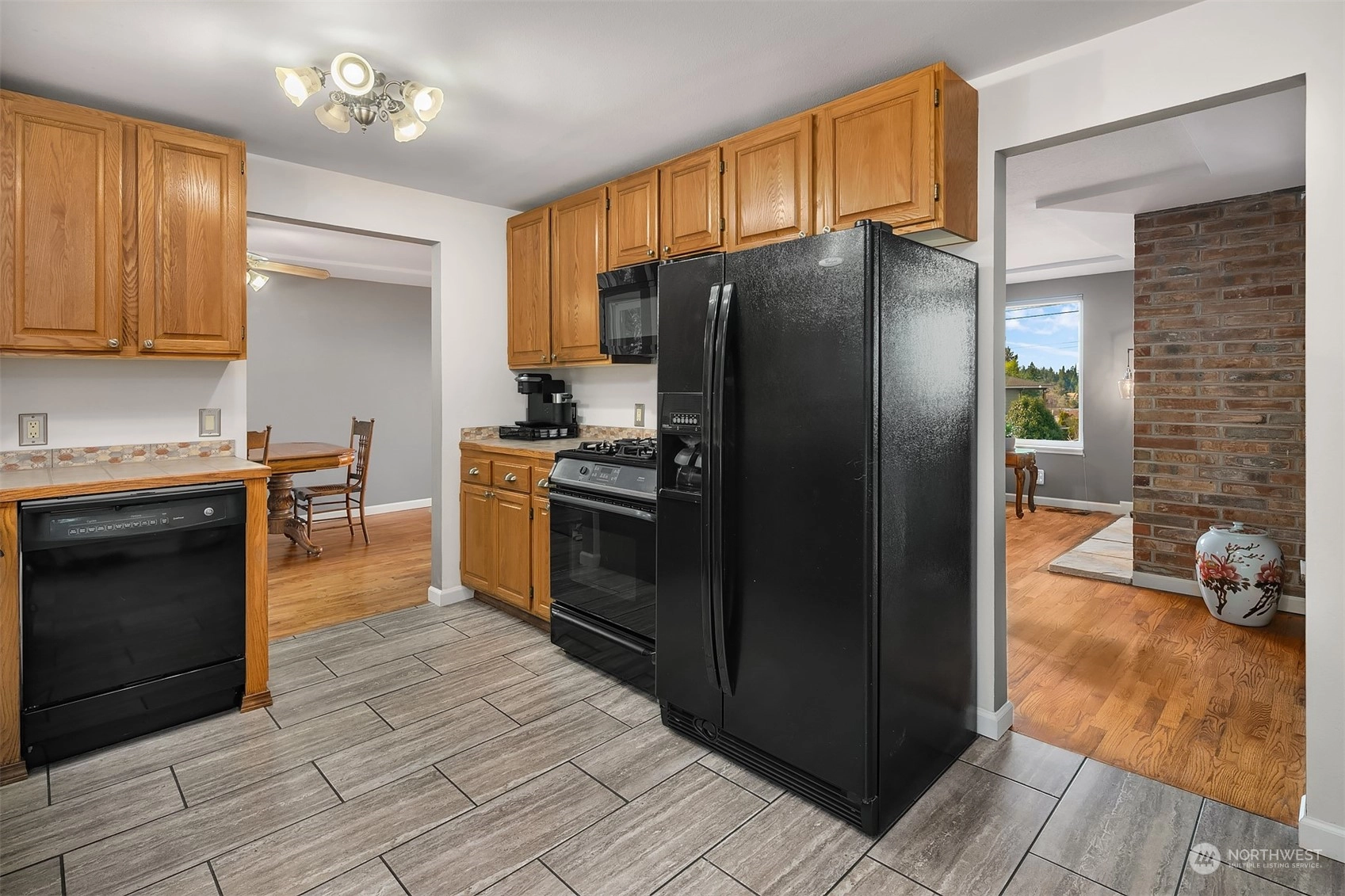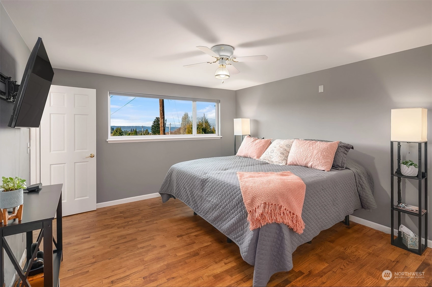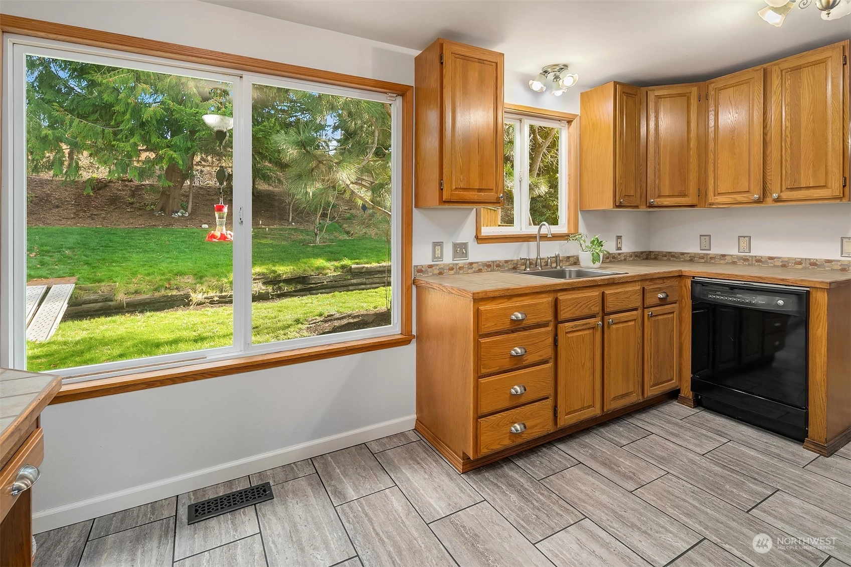 Updated 3-bed Mid-Century split-level home in the Edmonds Bowl. Enjoy sunsets & Puget Sound & Olympic Mountain views from the West-facing main floor & primary suite. New roof, fence, garage doors & tankless water heater. Rich oak hardwoods! Light & bright living & dining area offers seamless flow to the patio & backyard w/ raised garden beds. Kitchen looks out on the back yard & features built-ins & gas range. Lower level features a spacious additional entertaining area. Fireplaces on both levels! Dedicated laundry/mudroom w/ tons of storage space. Baths recently updated. Sited on a large 1/4 acre lot on a residential street. 2-car garage & ample street parking. Moments to downtown Edmonds shops, restaurants, farmer's market & beach.