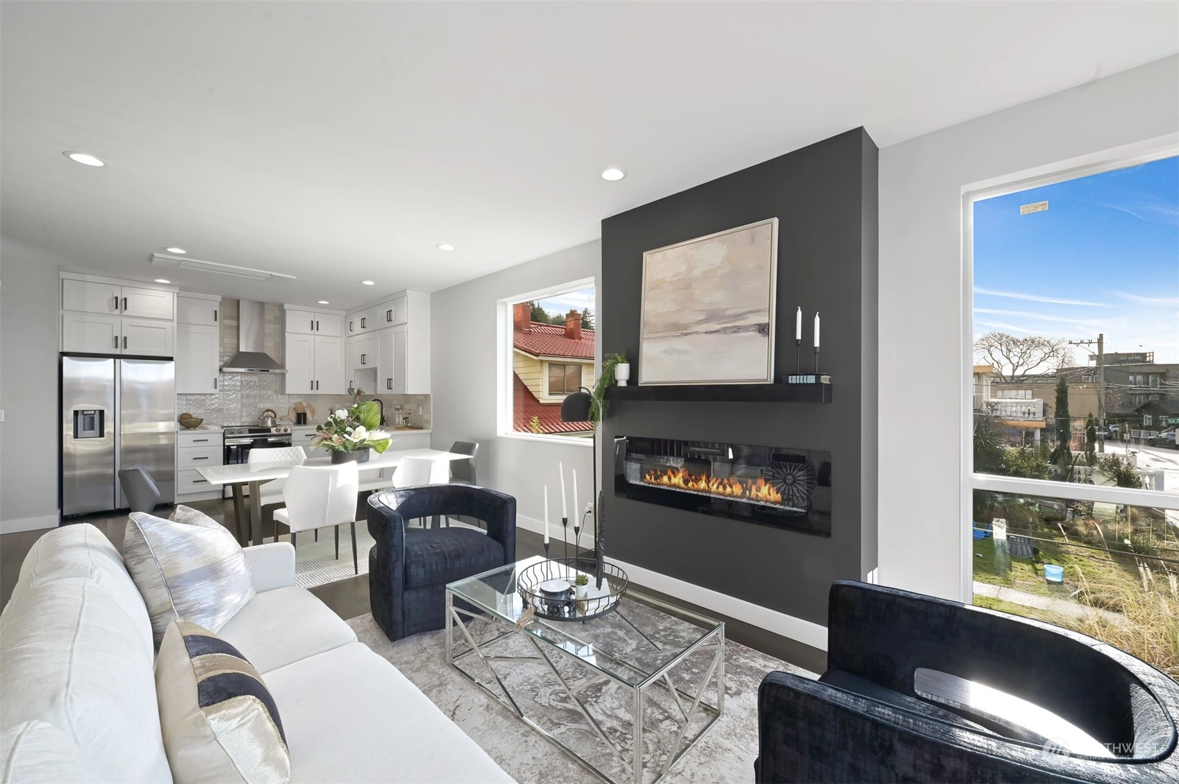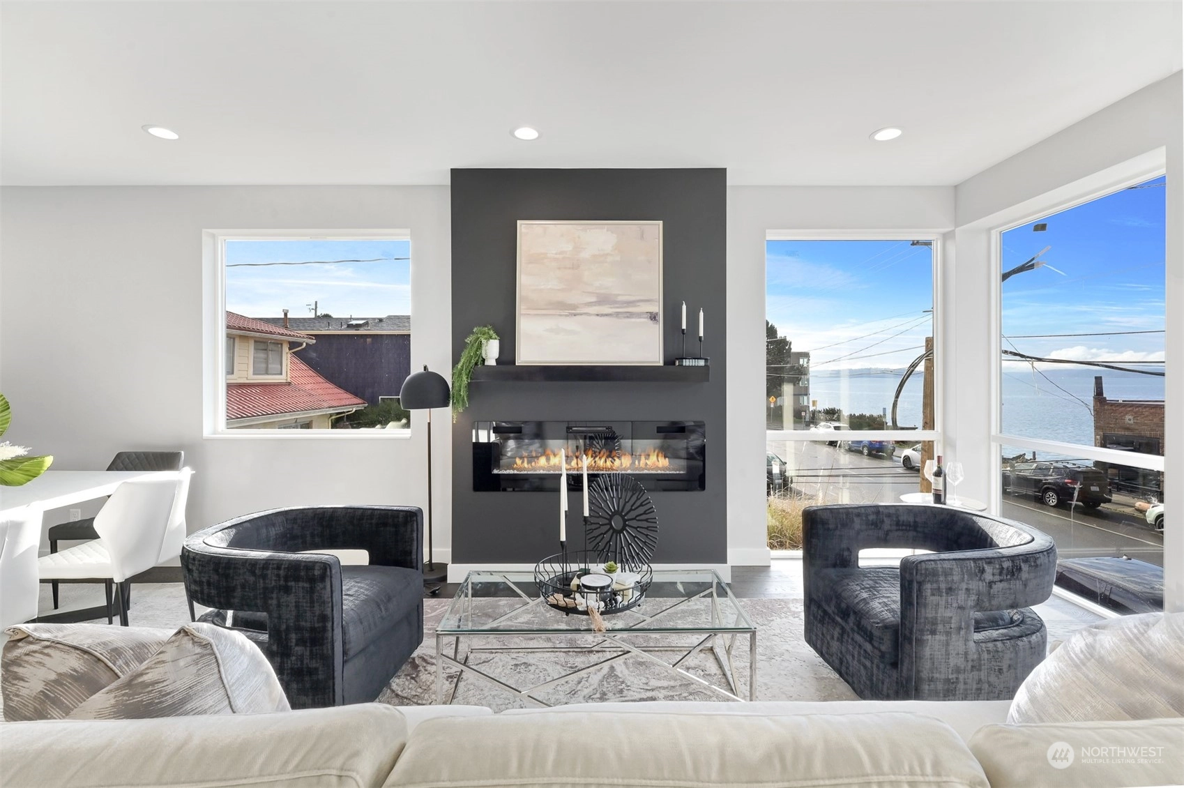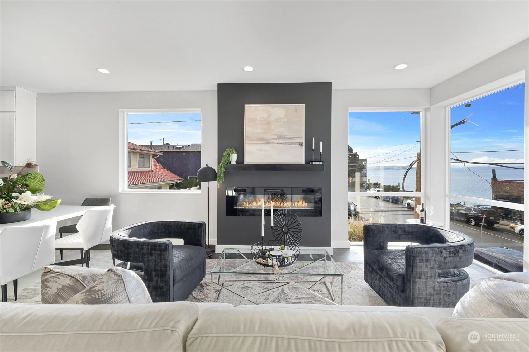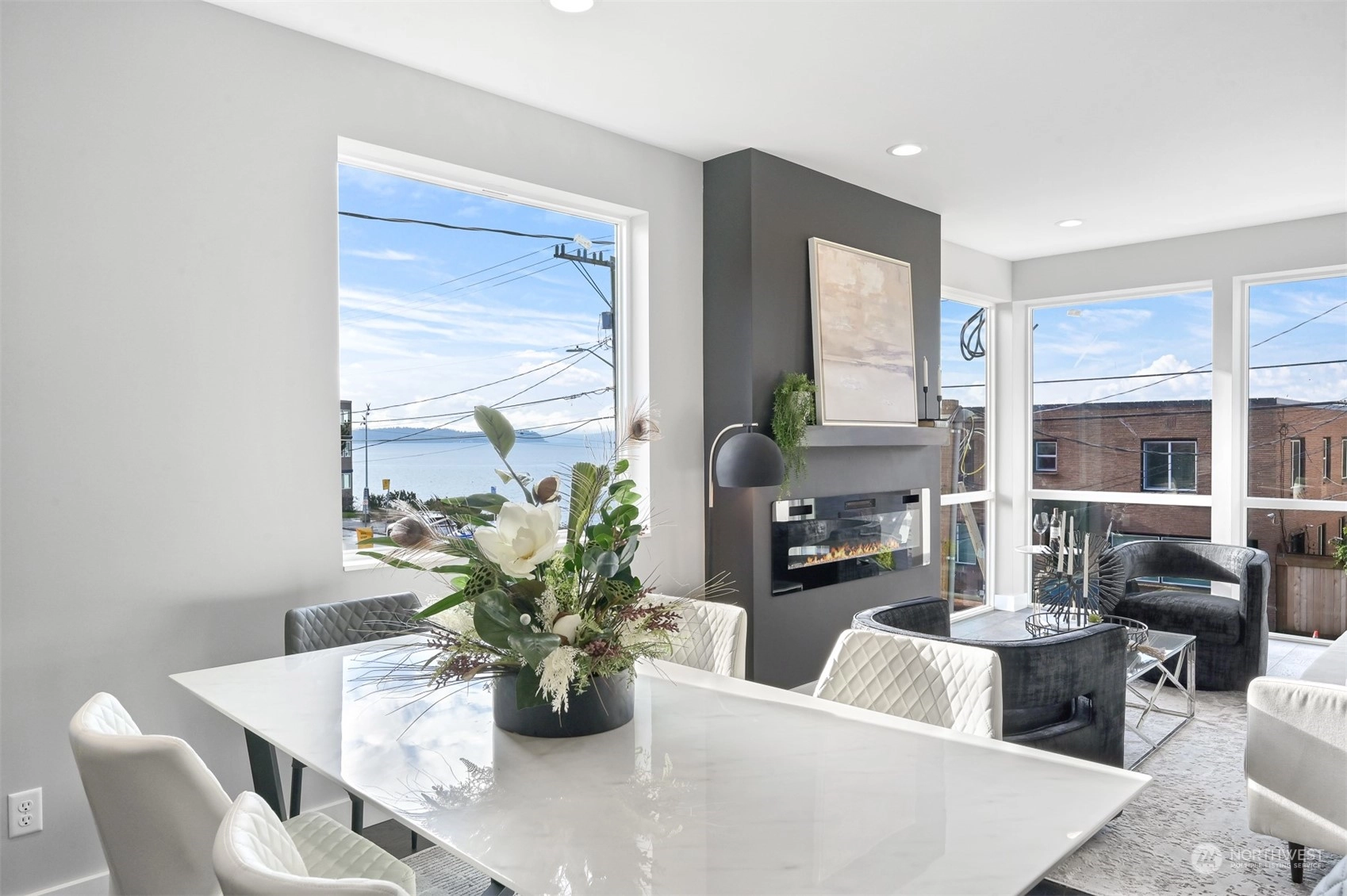 An exceptional setting, Key Development has done it again with four luxury townhomes on Beach Drive, just around the corner from Alki Beach. These units have it all – square footage, dimensions, finishes, parking, rooftops, and of course VIEWS. 4020 Beach Drive has 3 bedrooms, flex space/den, a massive kitchen with all the designer touches, Samsung Appliances, custom white shaker cabinets, floor to ceiling windows, and powder room. Large fireplace in the living with tons of natural light. Air conditioning on two floors. Master bath has beautiful marble finishes, a dual vanity and two-piece rain shower. Utility room on third floor. Rooftop deck for stunning sweeping sound and mountain views. Off-street parking wired for EV charging.