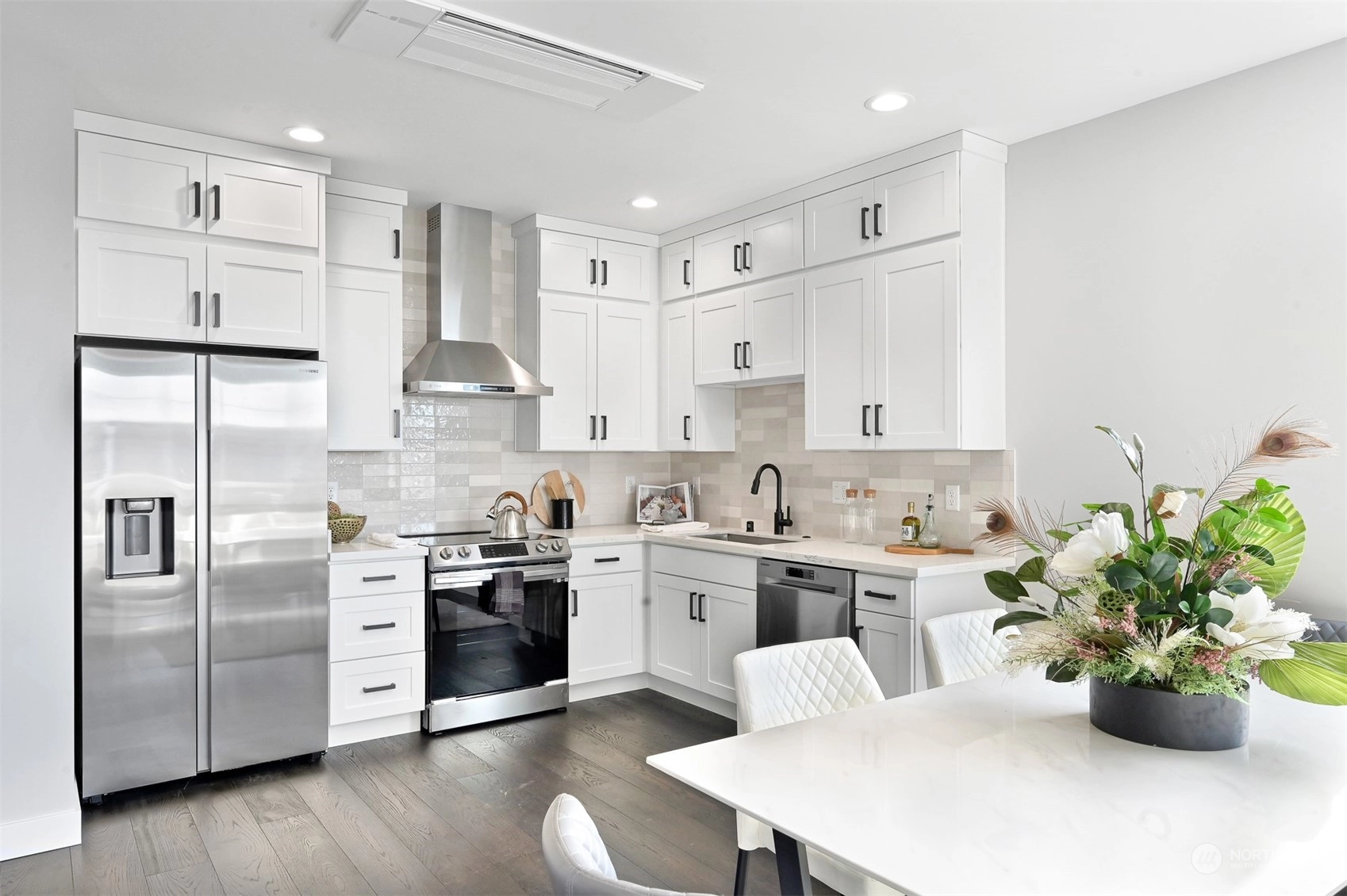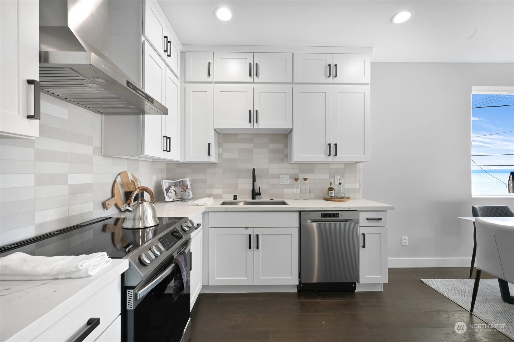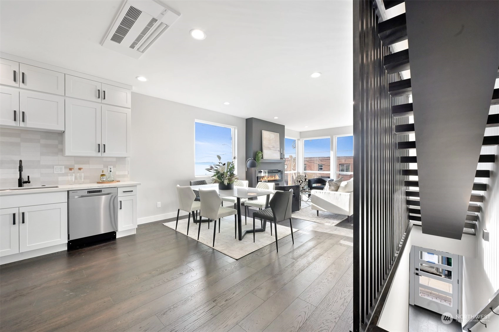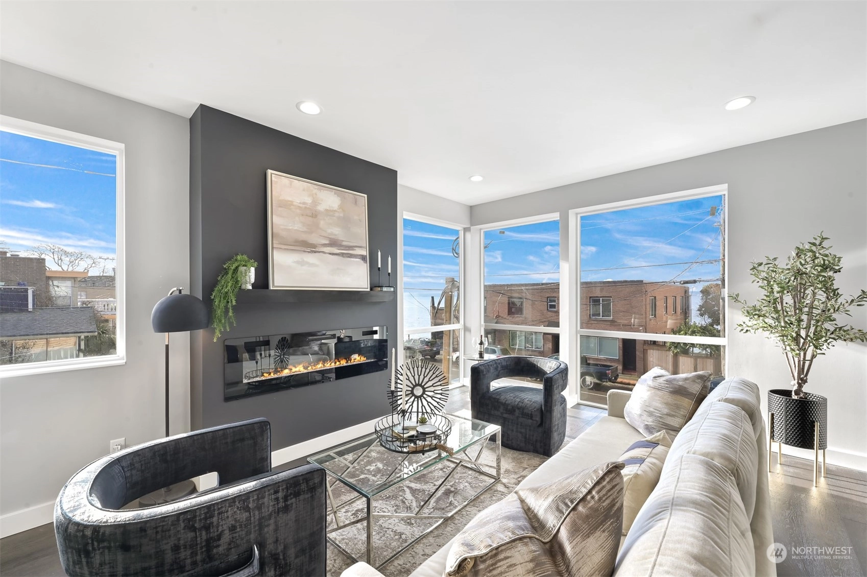 An exceptional setting, Key Development has done it again with four luxury townhomes on Beach Drive, just around the corner from Alki Beach. These units have it all – square footage, dimensions, finishes, parking, rooftops, and of course VIEWS. 4020 Beach Drive has 3 bedrooms, flex space/den, a massive kitchen with all the designer touches, Samsung Appliances, custom white shaker cabinets, floor to ceiling windows, and powder room. Large fireplace in the living with tons of natural light. Air conditioning on two floors. Master bath has beautiful marble finishes, a dual vanity and two-piece rain shower. Utility room on third floor. Rooftop deck for stunning sweeping sound and mountain views. Off-street parking wired for EV charging.