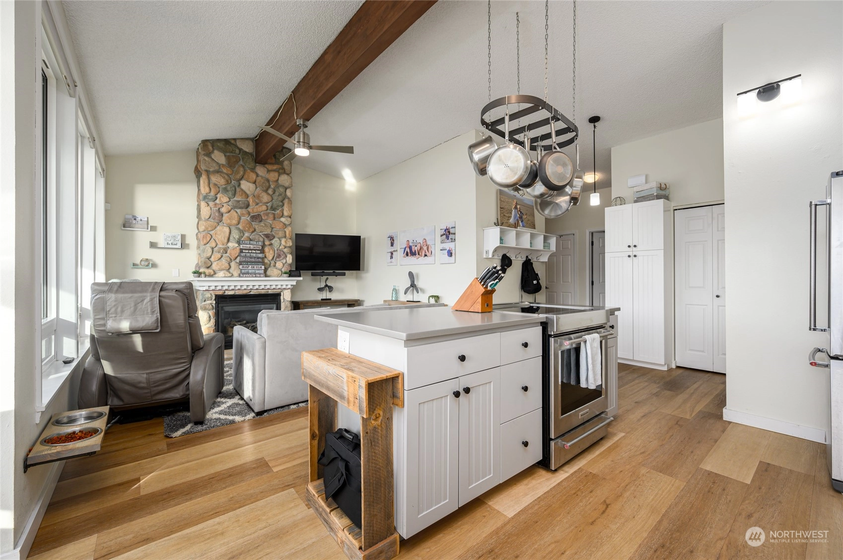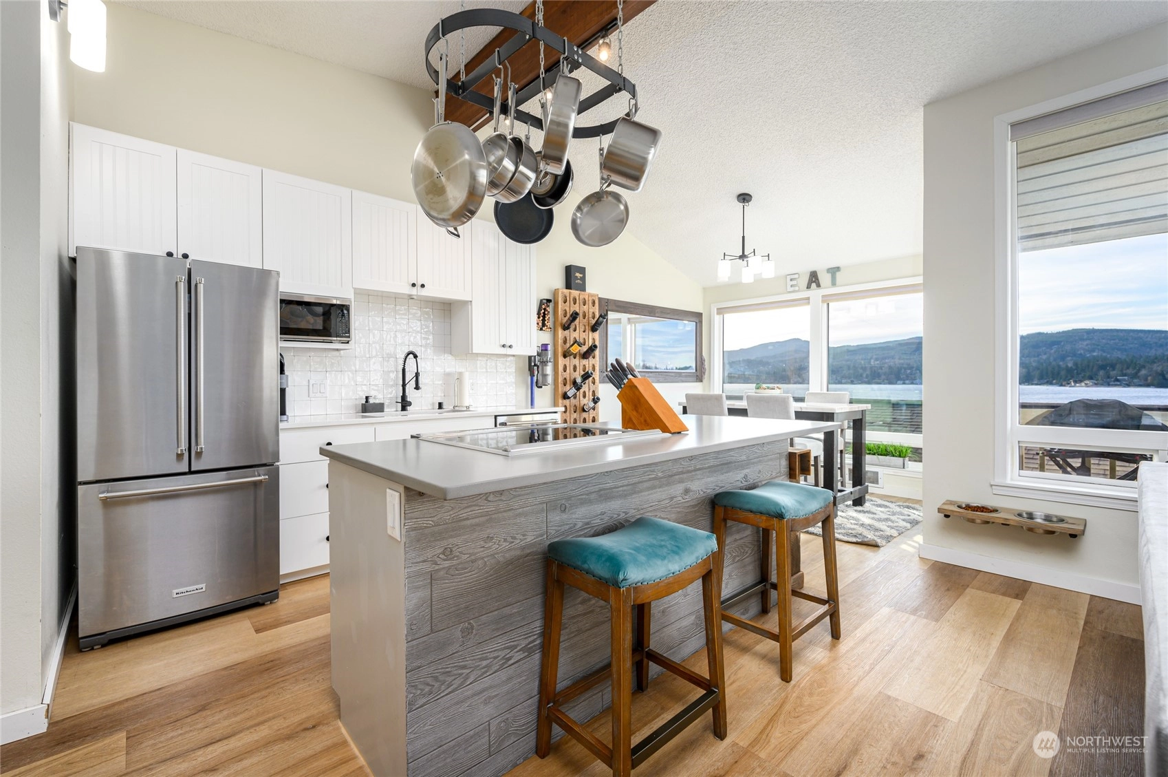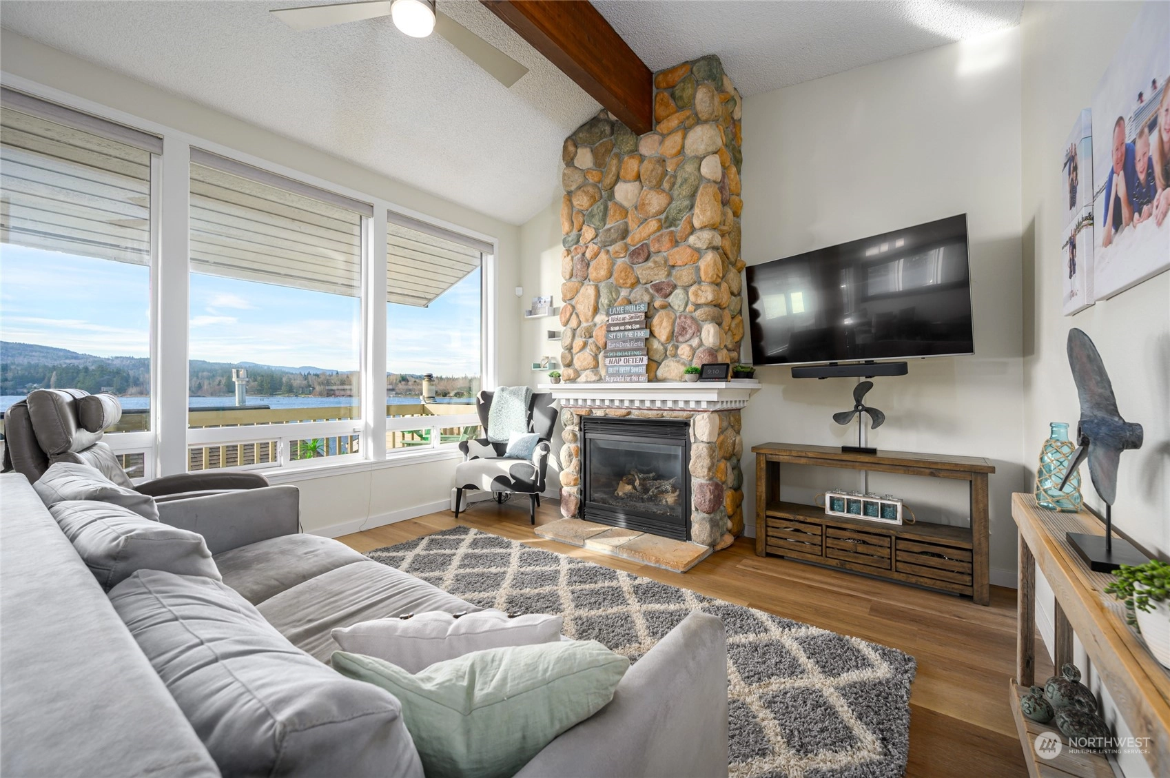 This Lakefront Condominium is an updated 2-bed 1 bath unit. The vaulted ceilings provide a spacious feel, and the cozy gas fireplace enhances the ambiance of the space. The modern kitchen offers ample storage and updated appliances. Upgraded LVP flooring throughout and a ton of south facing natural light. Residents can enjoy outdoor water activities with the convenient kayak launching area and gather around the community firepit to admire the lake views. This one-level unit is easily accessible and situated in a prime location, providing stunning lakefront views and easy access to nearby amenities. One covered parking space and a storage locker are included for convenience.