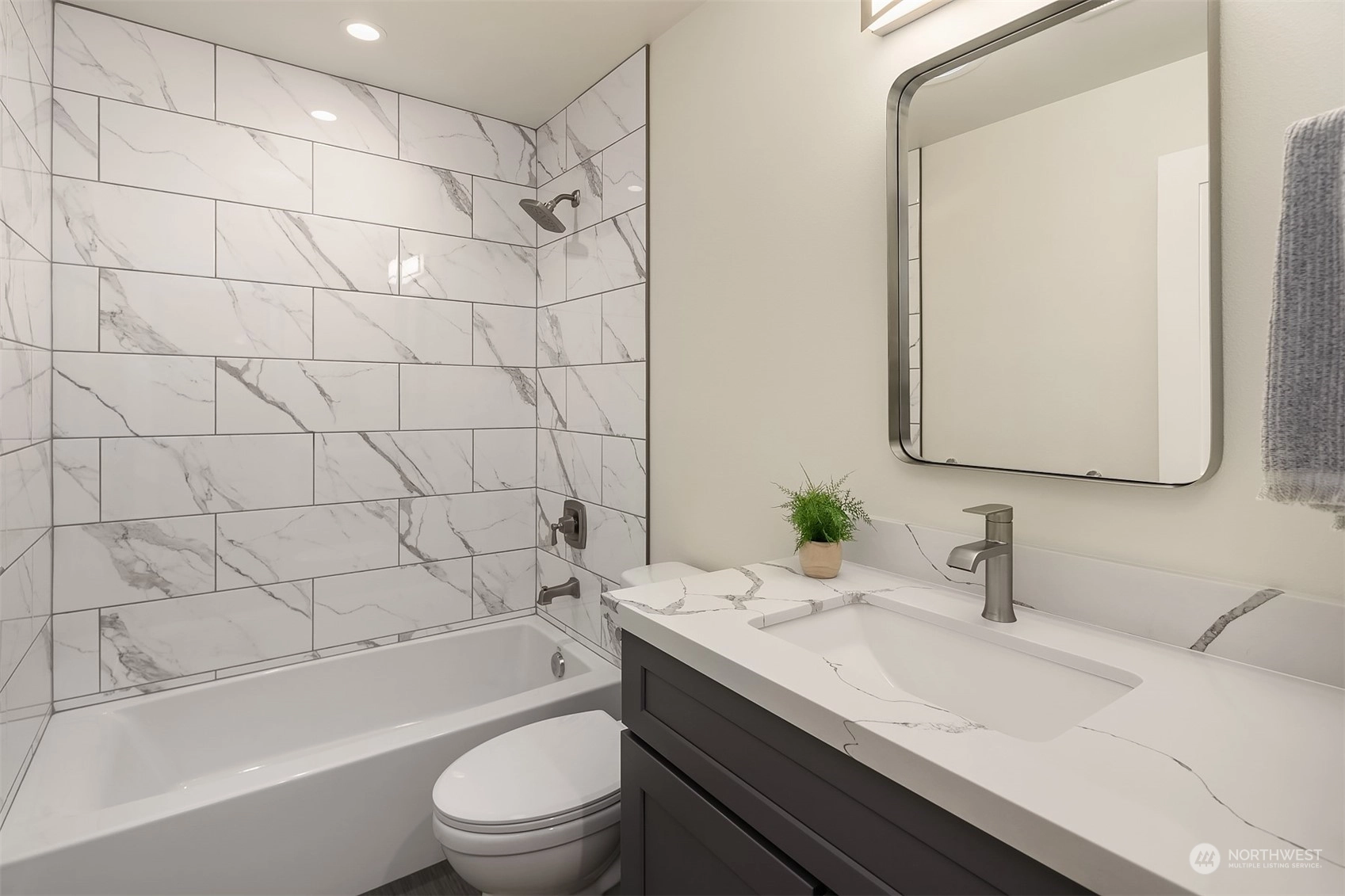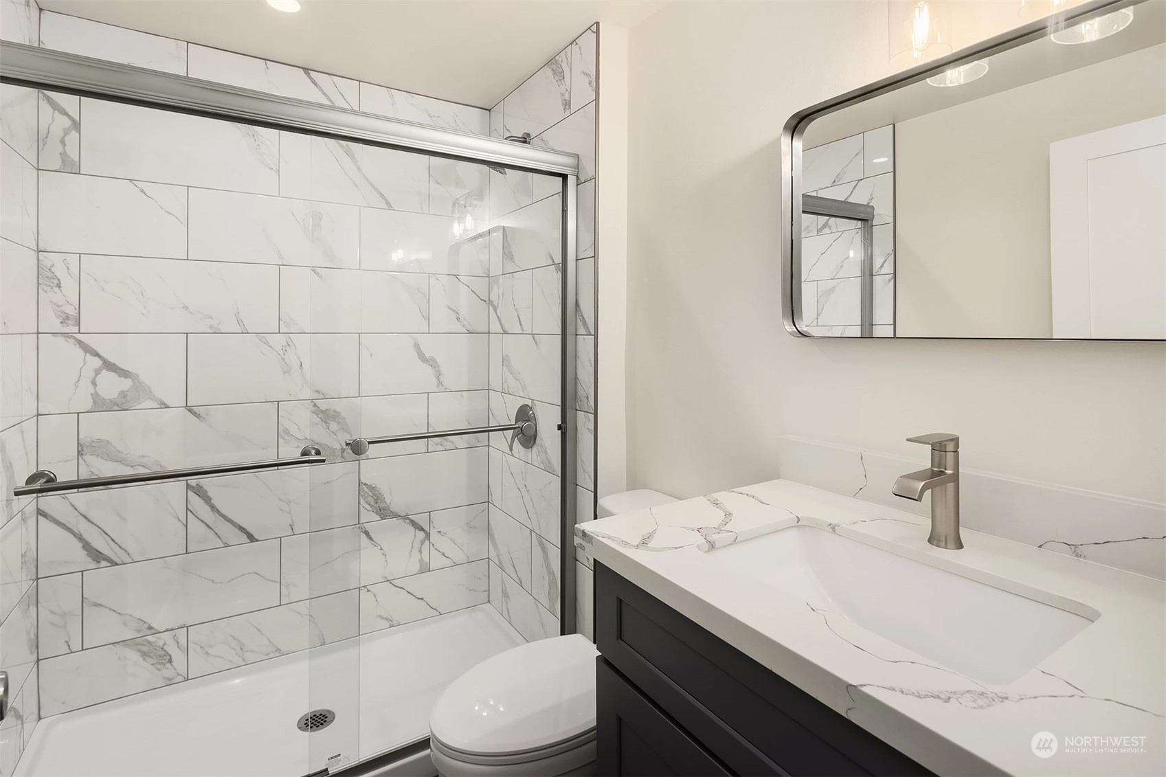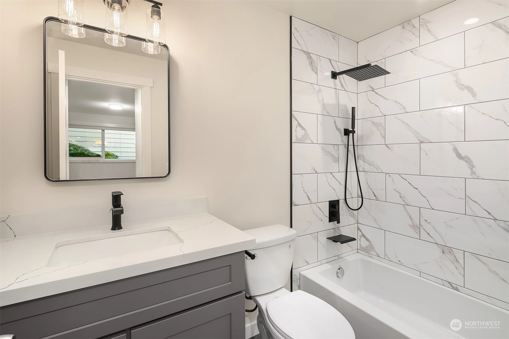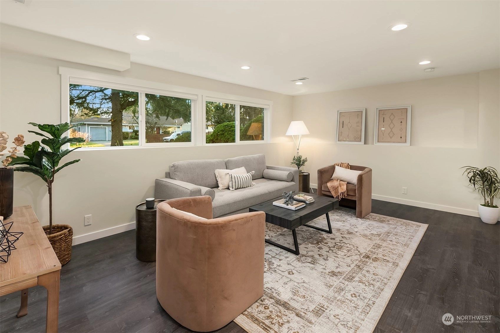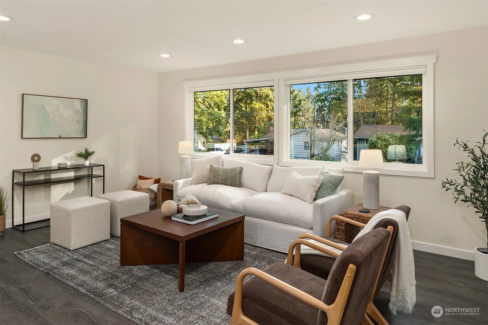 Perfect for modern entertaining, this 4-bed Hillwood home is significantly updated w/ stylish finishes! NEW roof, electrical, doors, fixtures, & flooring throughout. Inviting, light-filled spaces. All-NEW kitchen features dual white and gray custom cabinetry, quartz countertops, subway tile, & smart gunmetal appl. Incredible custom island anchors the open-concept main. Vaulted skylight adds a hint of drama. Dining opens to spacious NEW deck, enjoy summer BBQs! Lower level rec room a terrific hang-out space. Set back on a cul-de-sac & nearly ¼ acre lot, there is plenty of privacy, room for gardening, & play. Ample storage. 2-car garage w/ NEW garage doors & tons of driveway parking. Moments to Kings Schools, Einstein Middle, & the beach!