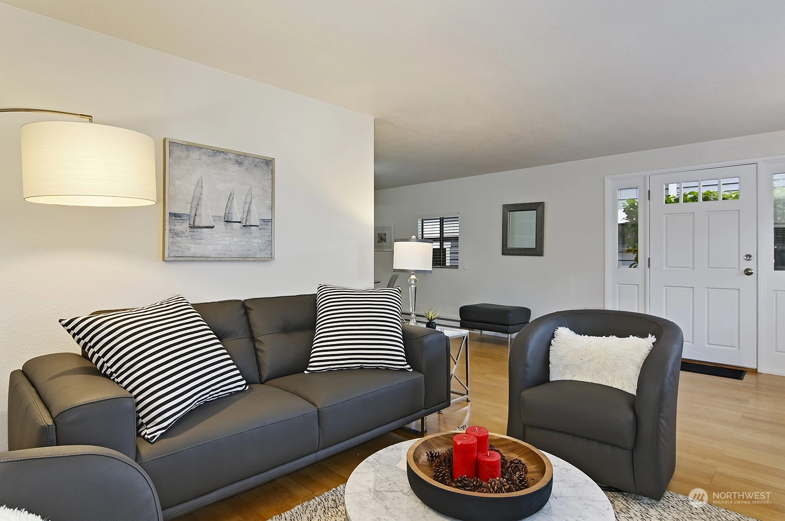 Sited in a quiet pocket of nice homes, offering easy I-5 access and convenient to The Northgate Transit Station. Upon entering , you'll be taken by the spacious floor plan and abundance of natural light. The house has had numerous upgrades including new paint both in and out , new stainless fridge , dishwasher and sink , tile back splash and bathroom vanity. In addition , the heating system , hot water tank and service panel are new as well. There is a quiet rear yard with a storage shed and a unfinished basement.