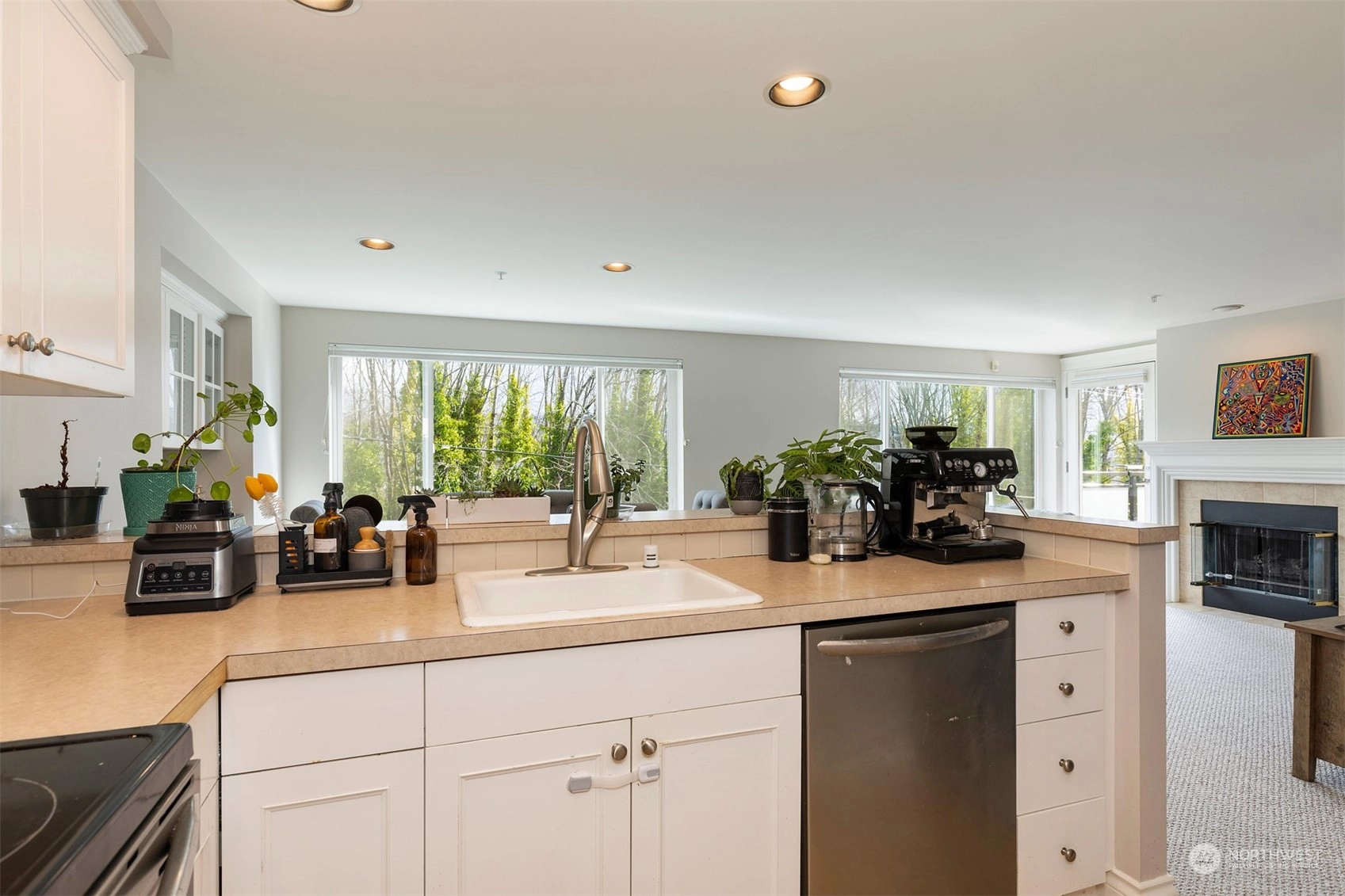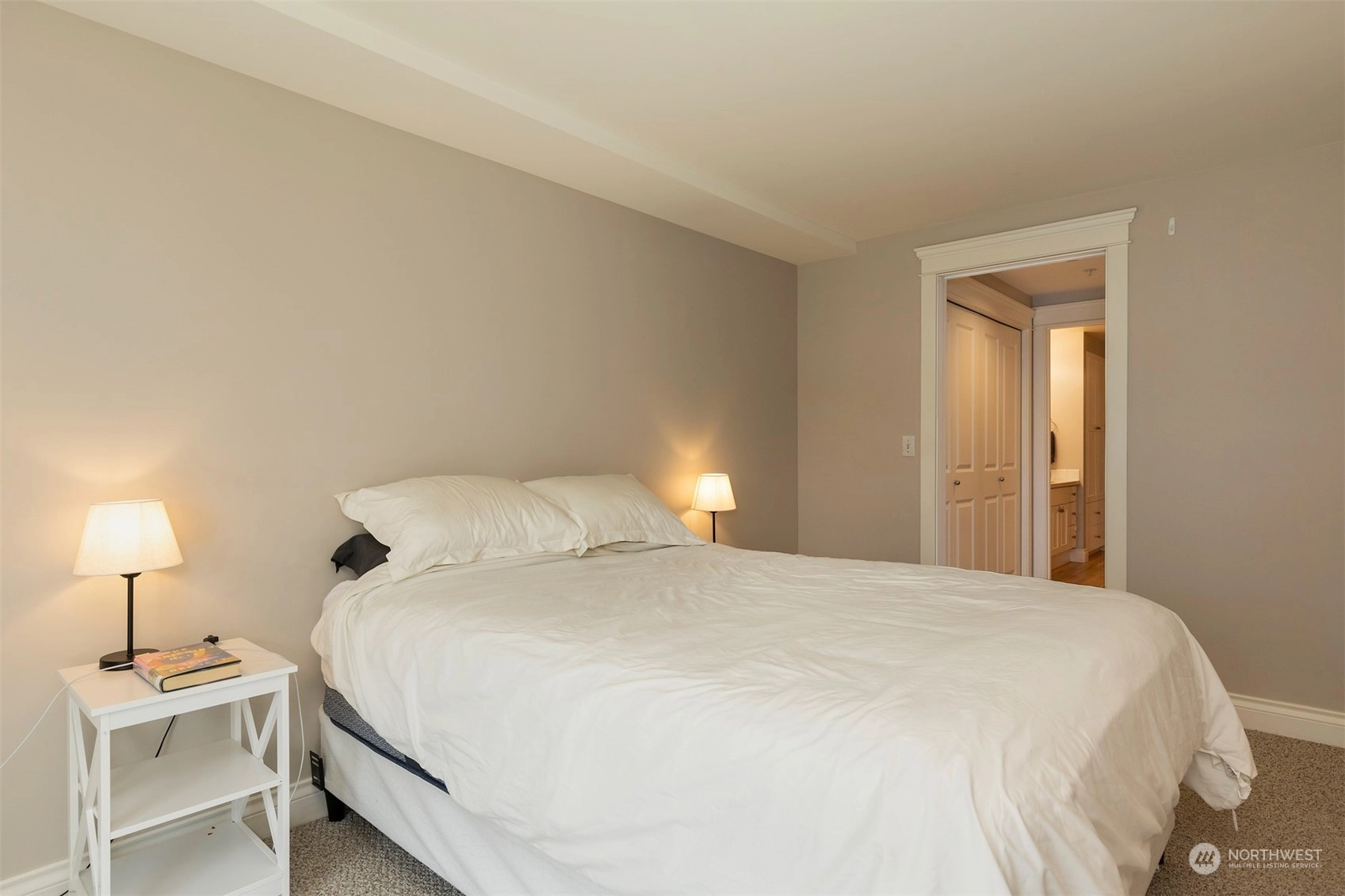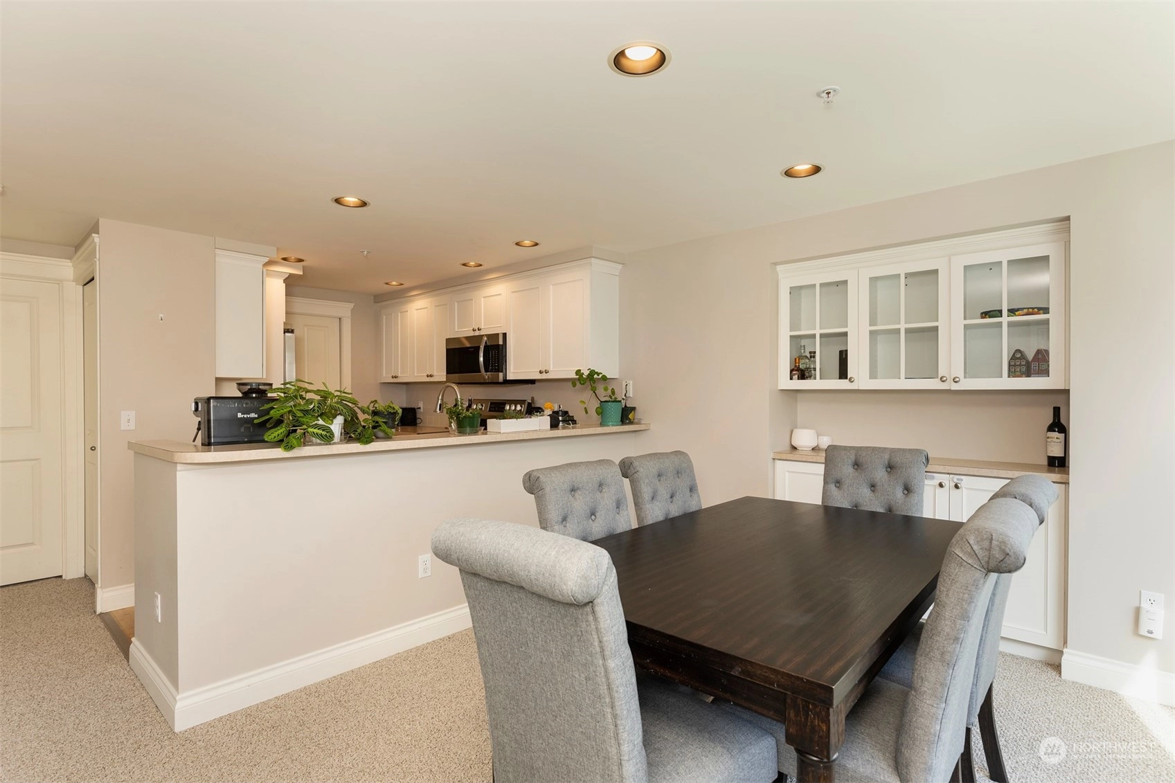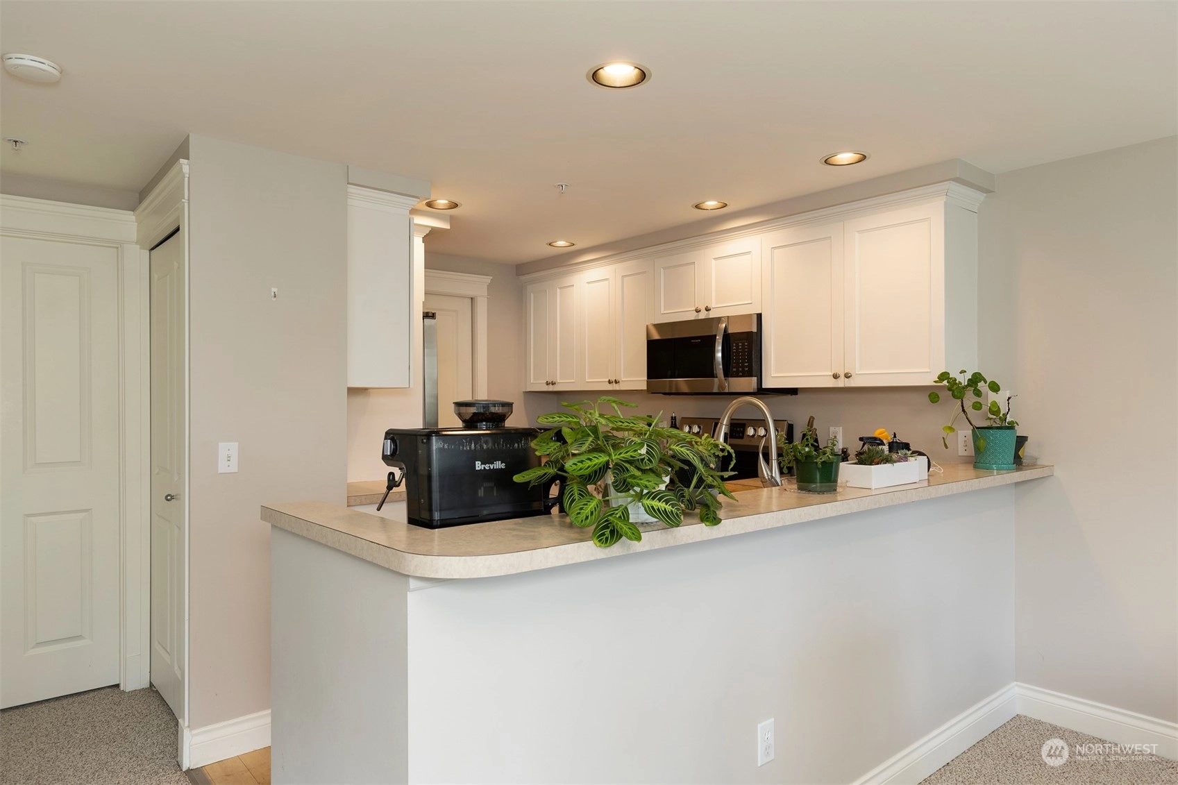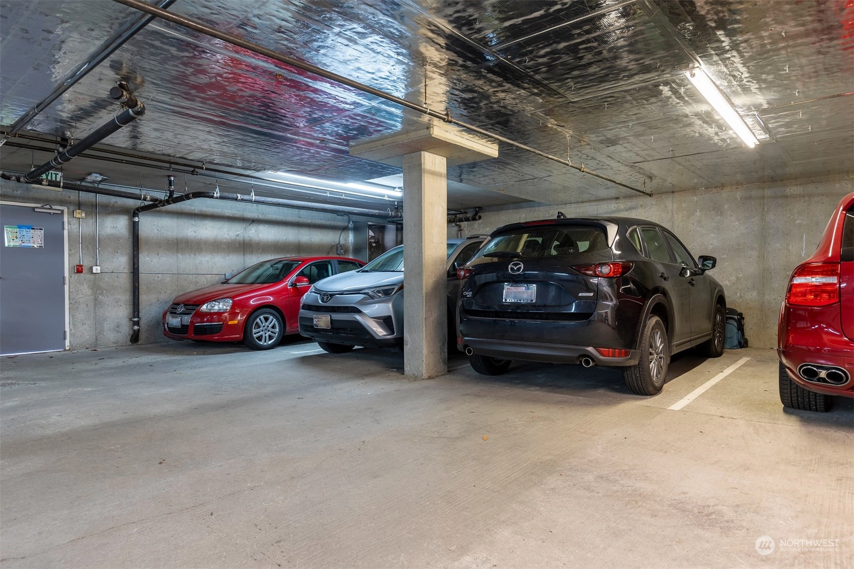Welcome home to this beautifully appointed Magnolia condo. Situated w/views of a tree line street makes for a tranquil setting. Spacious, and light filled, the living room includes a gas fireplace & access to the balcony, also accessed off the primary suite. Dining area is large enough for all those holiday meals. Kitchen is modern w/ample cabinets, stainless steel appliances & generous counterspace. A full-size laundry room is located off the kitchen. Primary suite is luxurious and spacious & features a soaking tub, separate large shower, walk-in closet,& additional closet w/built-ins. 2nd bedroom is nicely sized w/closets with built-ins, and next to the 2nd bathroom. Secure parking, elevator, plus extra large storage. Must see !