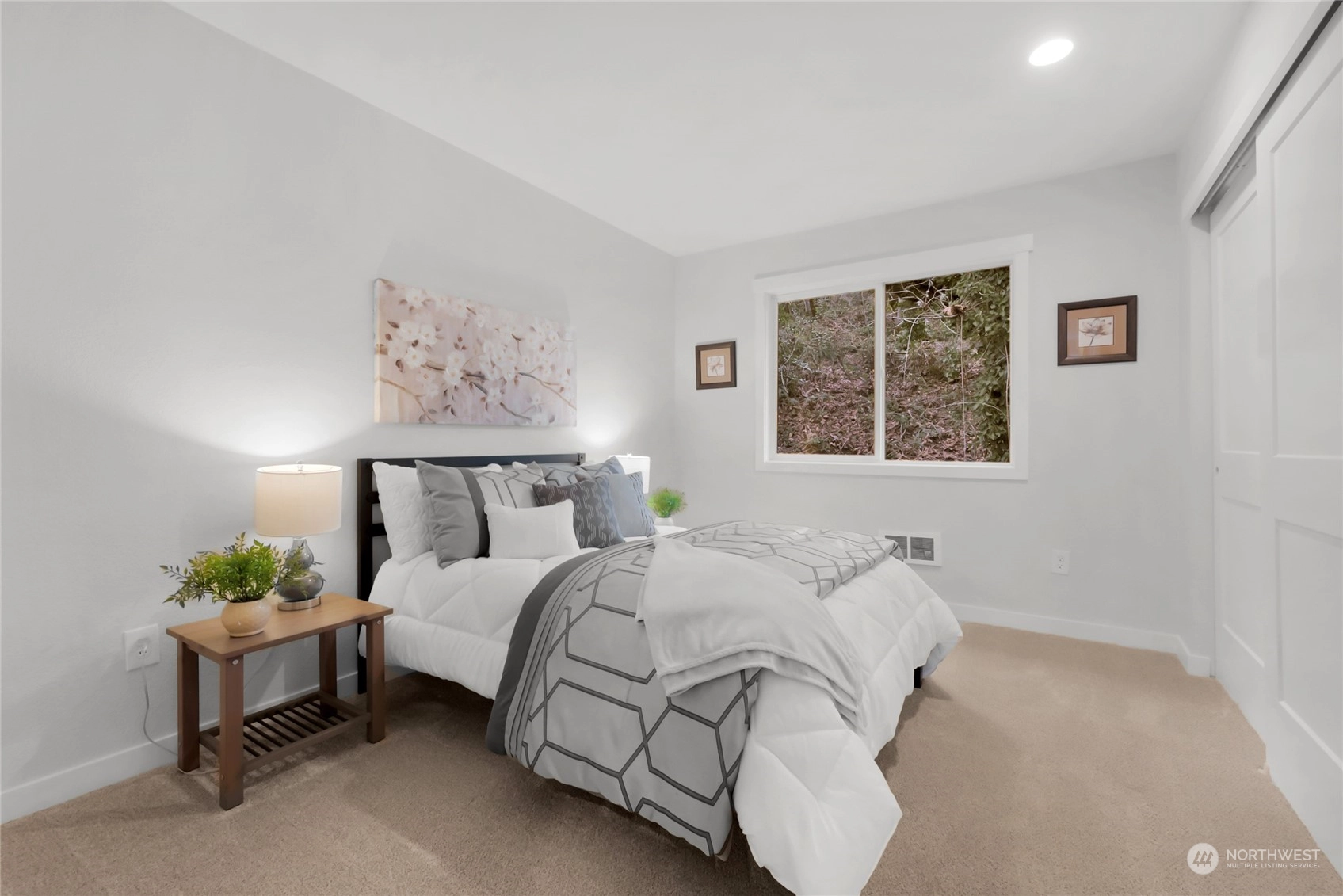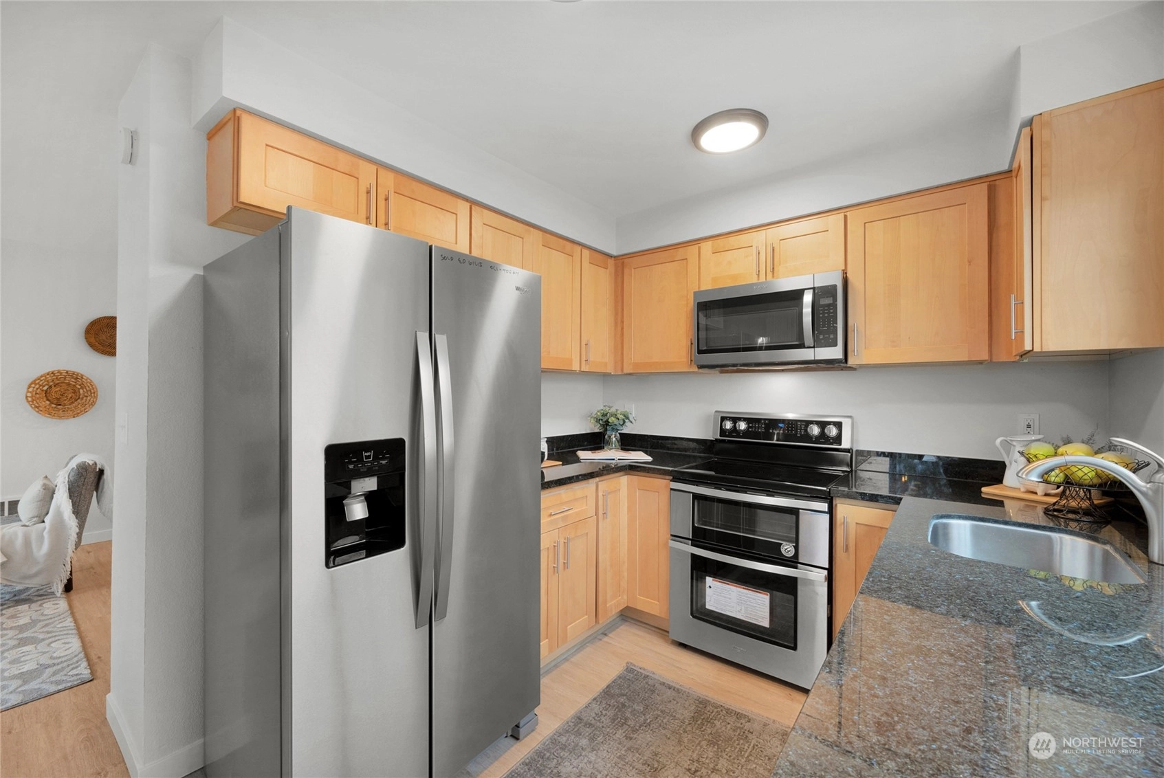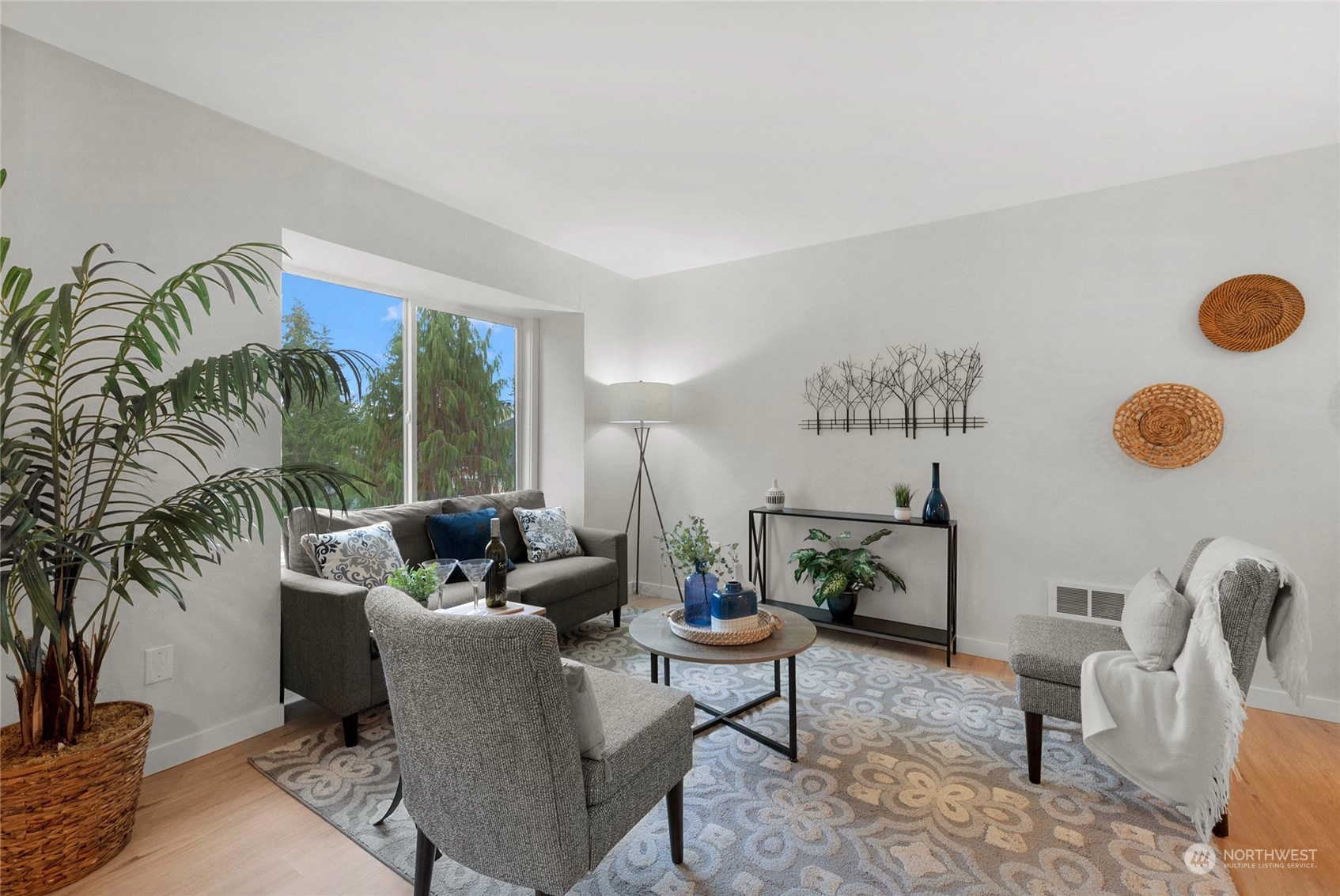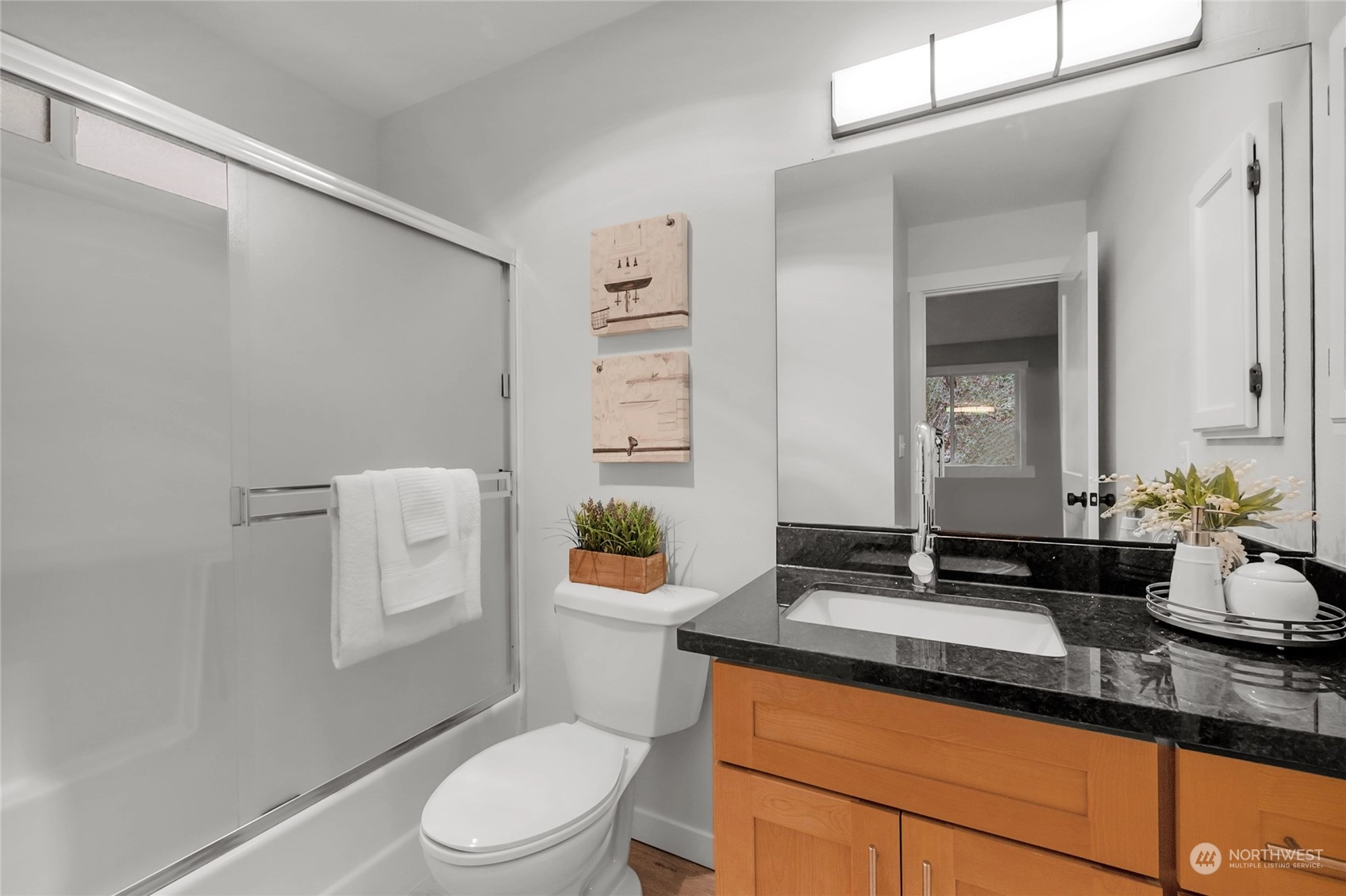 Penthouse like “Top Floor” unit in Sunridge Condominiums. Enjoy single level living with territorial views and a short walk to downtown Woodinville. This desirable top floor unit was just fully renovated with Luxury Vinyl Plank flooring, new carpet, craftsman style white mill-work and 2-panel doors. Kitchen with Maple cabinets, Granite countertops and a full suite of Stainless Appliances to include Glass-top range w/double ovens, Side by Side Refer. w/Ice and water in door. Deep 1-Car Garage w/storage room plus 1 assigned parking space. Don’t miss this uniquely appointed home.