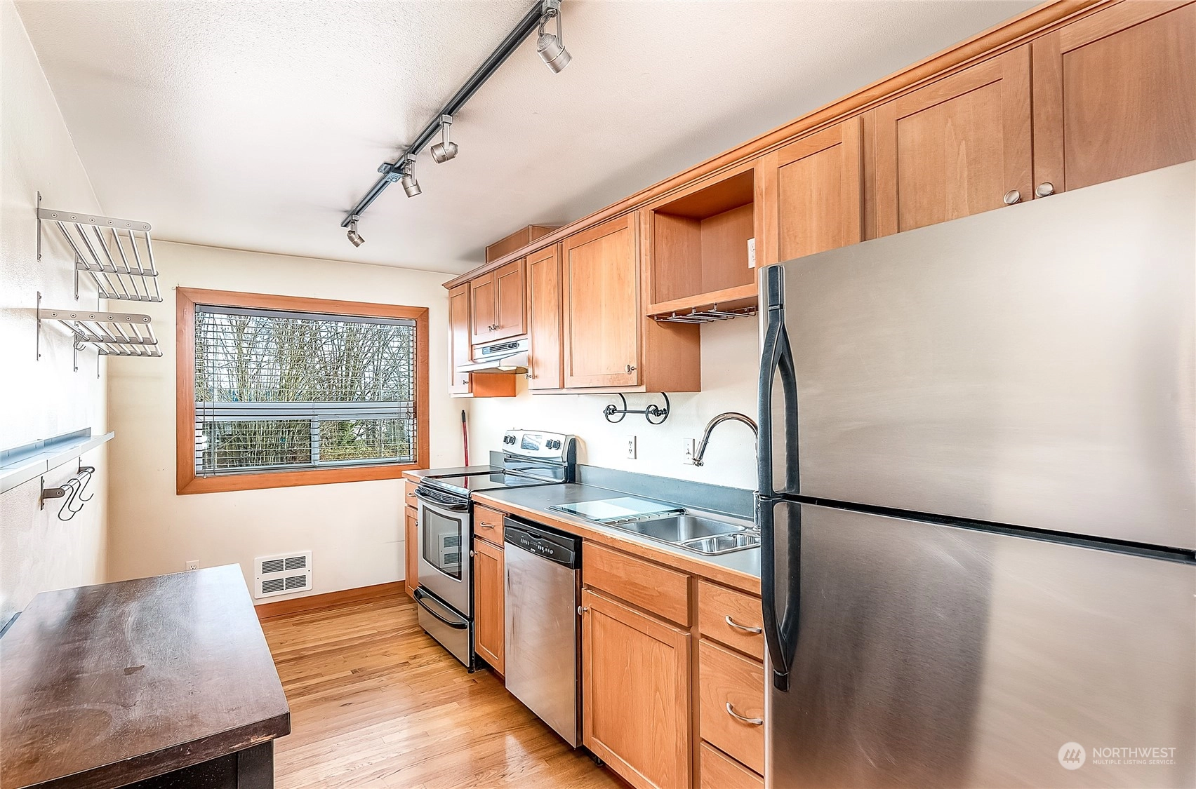 This charming one story side by side row house style condo is nestled in the desirable community of Magnolia! The unit is situated on the west side of the complex on the quiet side. It is conveniently located near Discovery Park, Ballard and South Lake Union. This unit features a private exterior entrance, beautiful hardwood floors, double pane windows, tile bath, ample natural light, spacious storage unit in secure basement and a patio. There is an updated kitchen with stainless steel appliances and plenty of cupboard space. It is an easy commute location with reliable residential street parking. No rental cap.