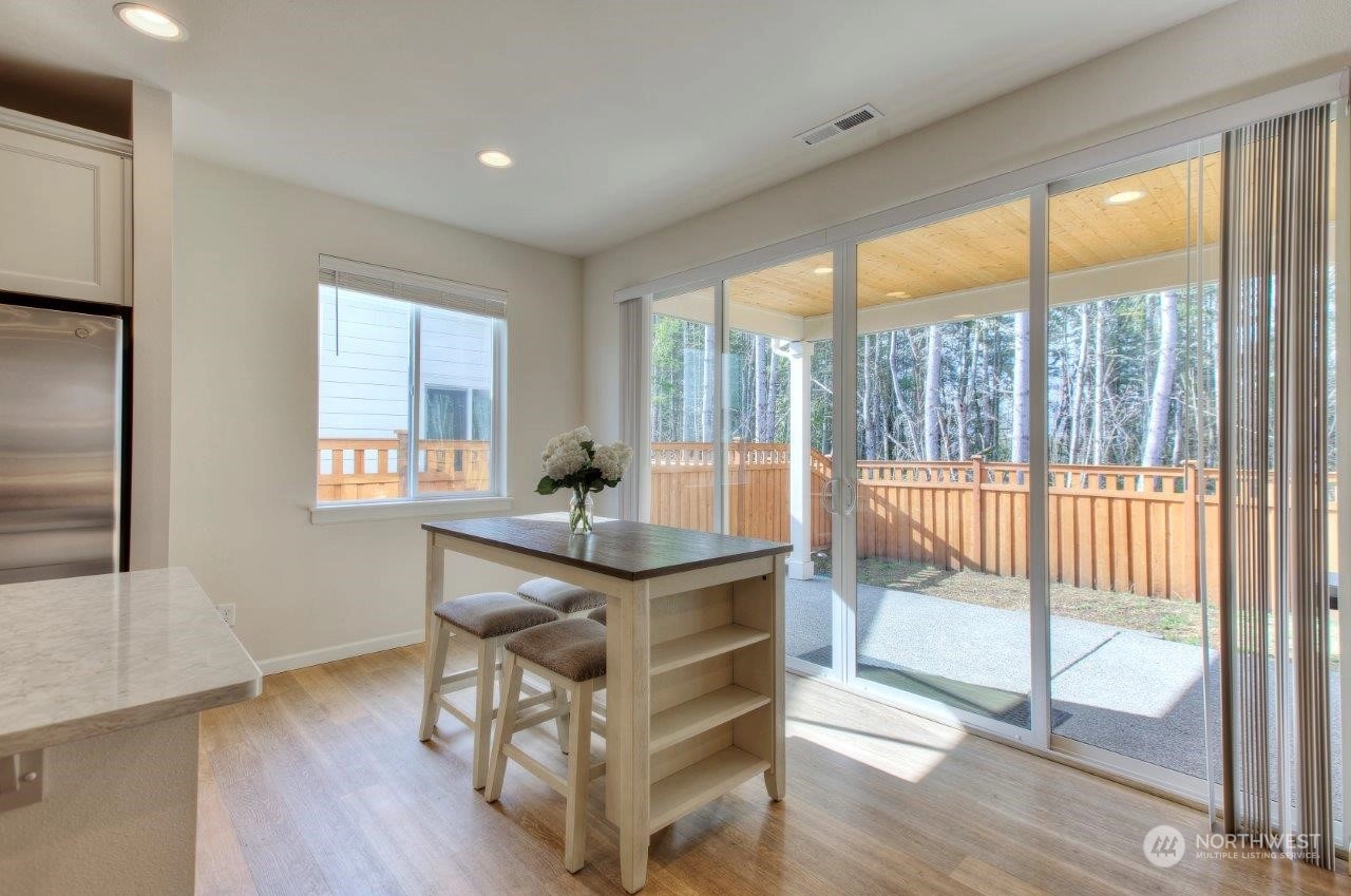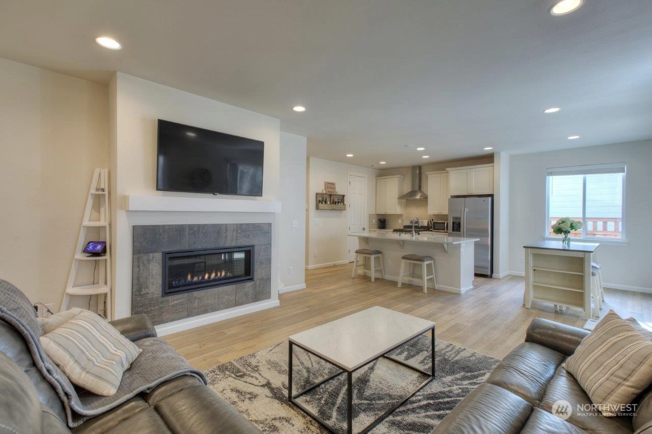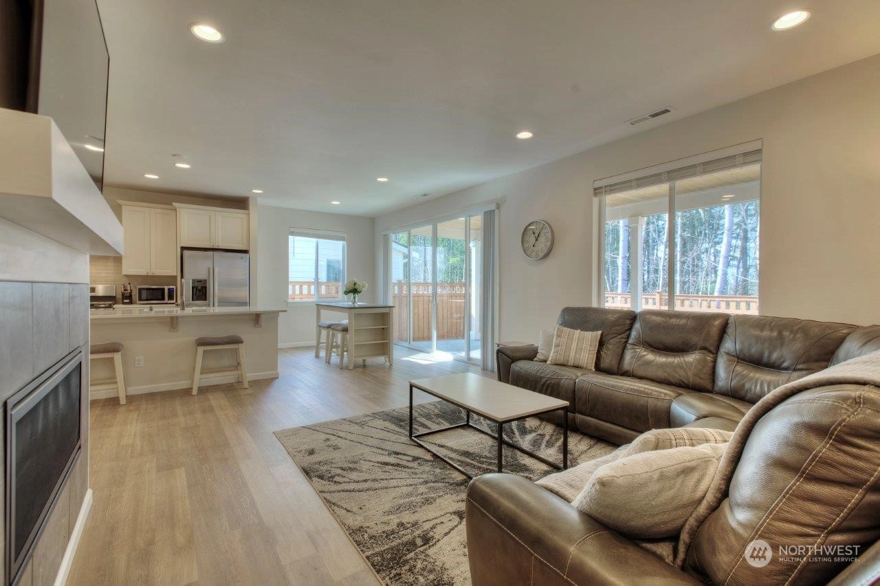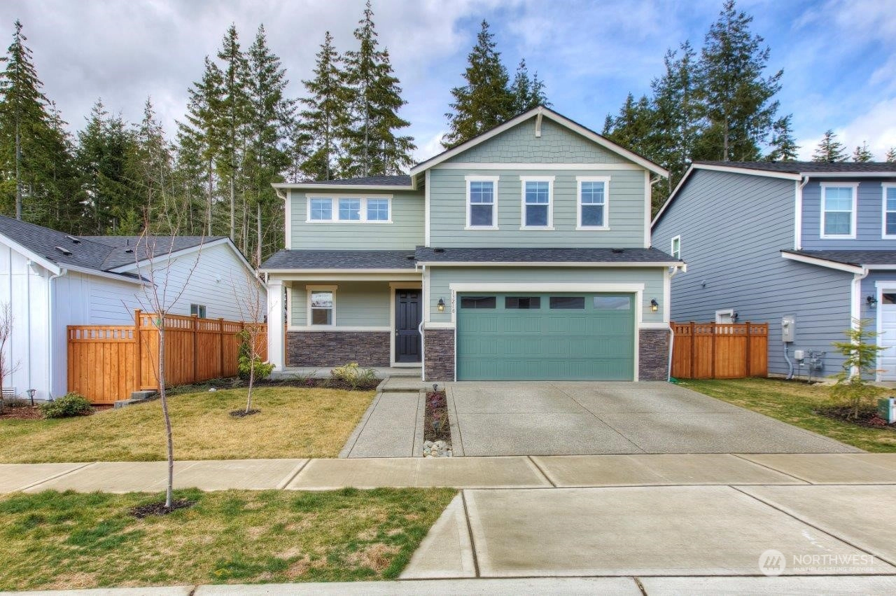 Welcome home to this newer Richmond American home that backs to an expansive greenbelt with beautiful sunsets! Tranquility in your backyard and Mt. Rainier views from the Primary and 2nd upstairs bedrooms. Built in 2021, this 3 bedroom, 2.25 bathroom home is beautifully designed with a Primary bedroom ensuite, sturdy flooring, gorgeous gas fireplace, 9 foot ceilings on main level with 8 foot doors, extra large quartz kitchen island plus many more features. The expansive outdoor covered patio is an excellent spot to entertain or enjoy your morning cup of coffee or tea. Tehaleh is a wonderful community full of mountain views, many trails and parks, including dog parks. Trail access close by but not too close! Come check it out!