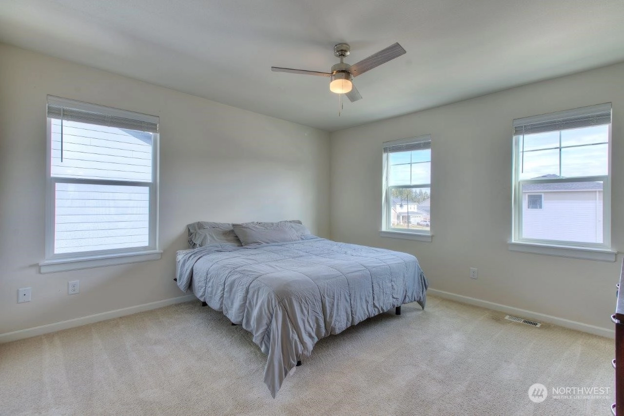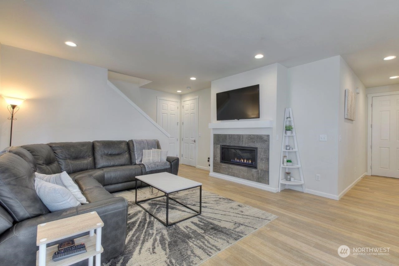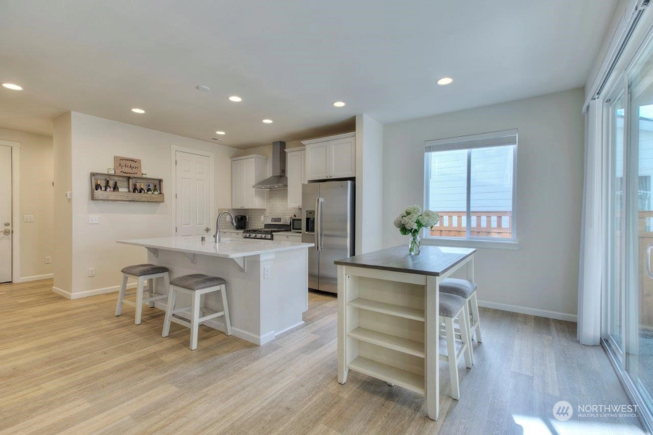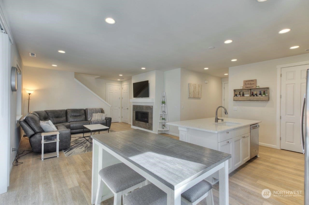Welcome home to this newer Richmond American home that backs to an expansive greenbelt with beautiful sunsets! Tranquility in your backyard and Mt. Rainier views from the Primary and 2nd upstairs bedrooms. Built in 2021, this 3 bedroom, 2.25 bathroom home is beautifully designed with a Primary bedroom ensuite, sturdy flooring, gorgeous gas fireplace, 9 foot ceilings on main level with 8 foot doors, extra large quartz kitchen island plus many more features. The expansive outdoor covered patio is an excellent spot to entertain or enjoy your morning cup of coffee or tea. Tehaleh is a wonderful community full of mountain views, many trails and parks, including dog parks. Trail access close by but not too close! Come check it out!