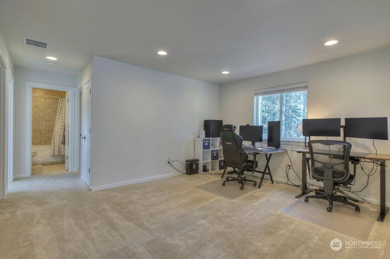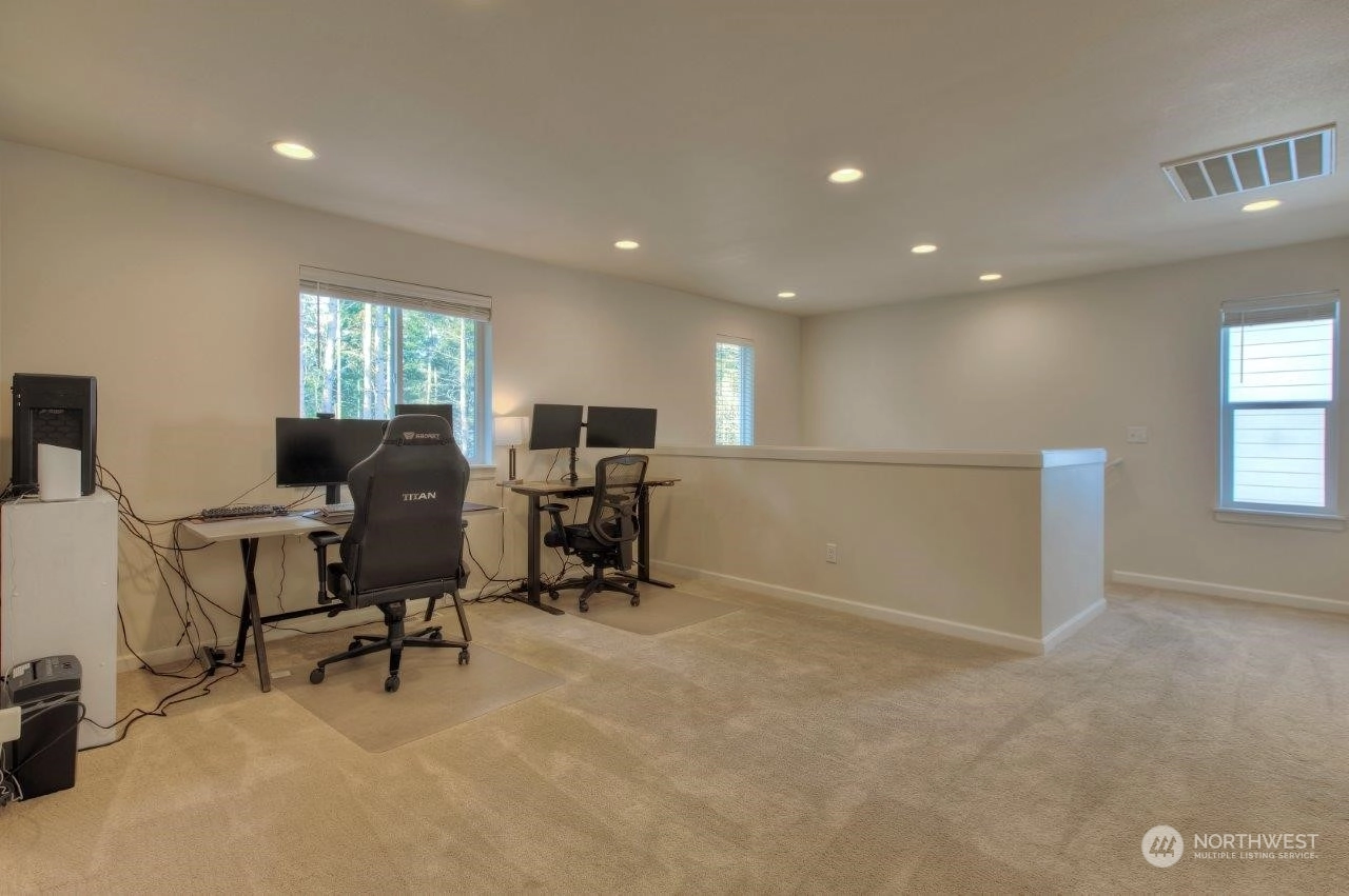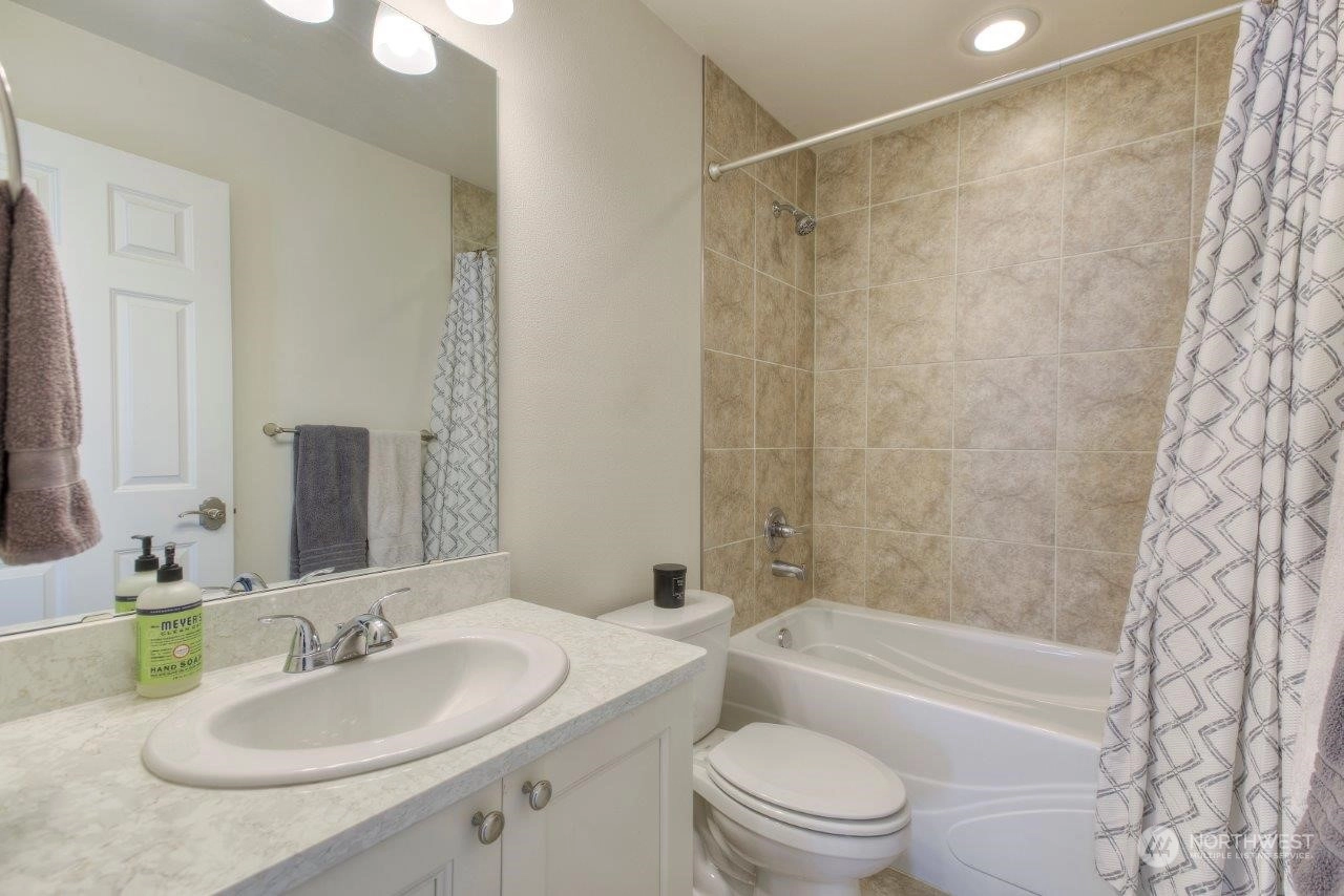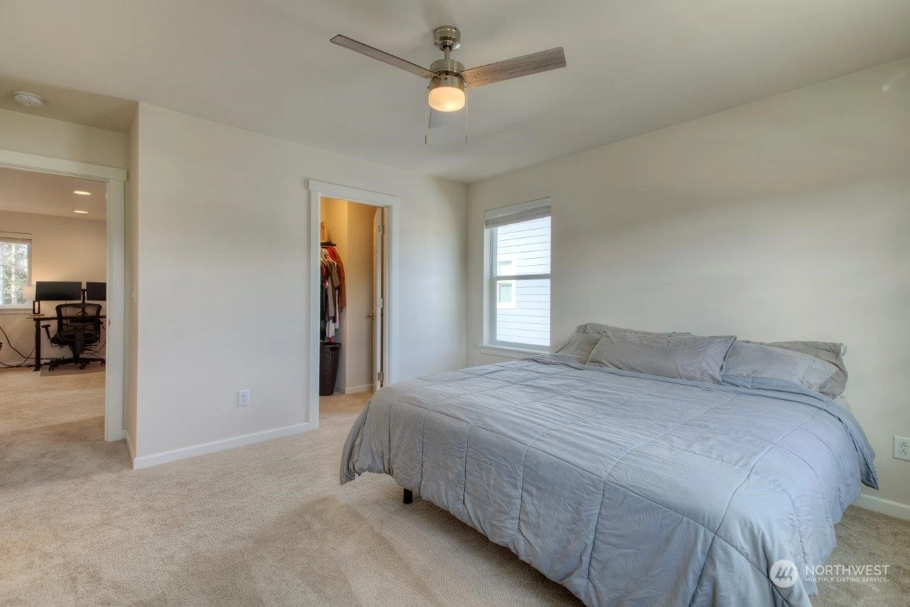 Welcome home to this newer Richmond American home that backs to an expansive greenbelt with beautiful sunsets! Tranquility in your backyard and Mt. Rainier views from the Primary and 2nd upstairs bedrooms. Built in 2021, this 3 bedroom, 2.25 bathroom home is beautifully designed with a Primary bedroom ensuite, sturdy flooring, gorgeous gas fireplace, 9 foot ceilings on main level with 8 foot doors, extra large quartz kitchen island plus many more features. The expansive outdoor covered patio is an excellent spot to entertain or enjoy your morning cup of coffee or tea. Tehaleh is a wonderful community full of mountain views, many trails and parks, including dog parks. Trail access close by but not too close! Come check it out!