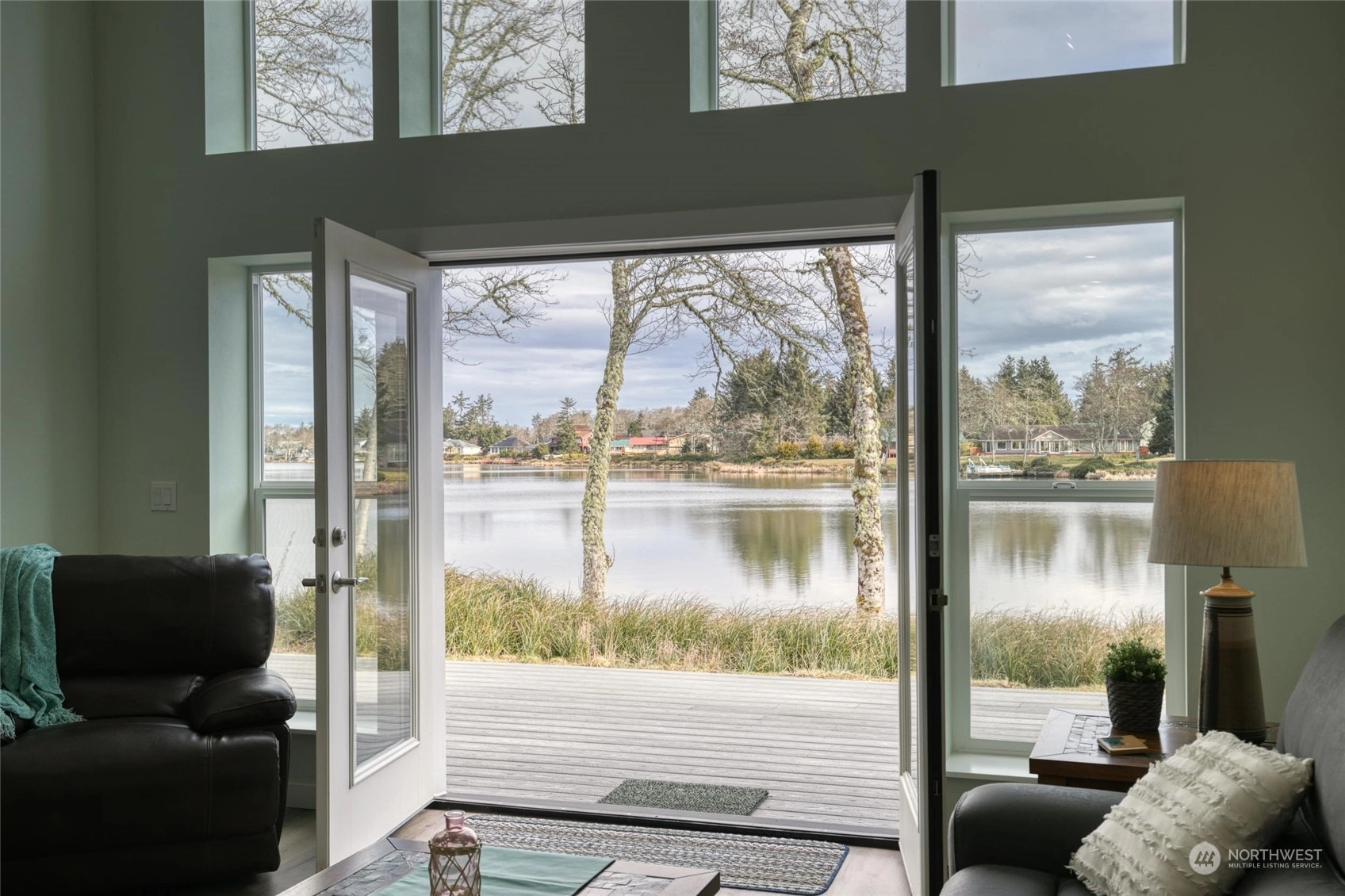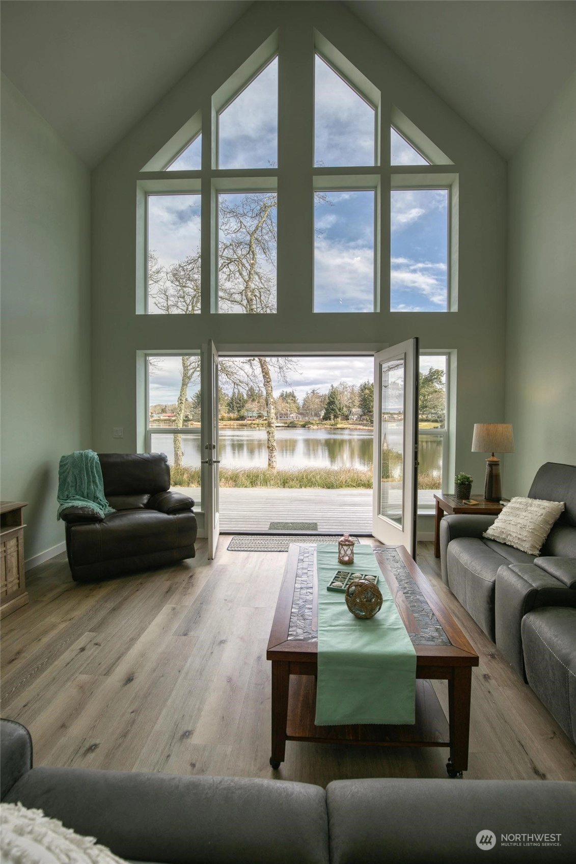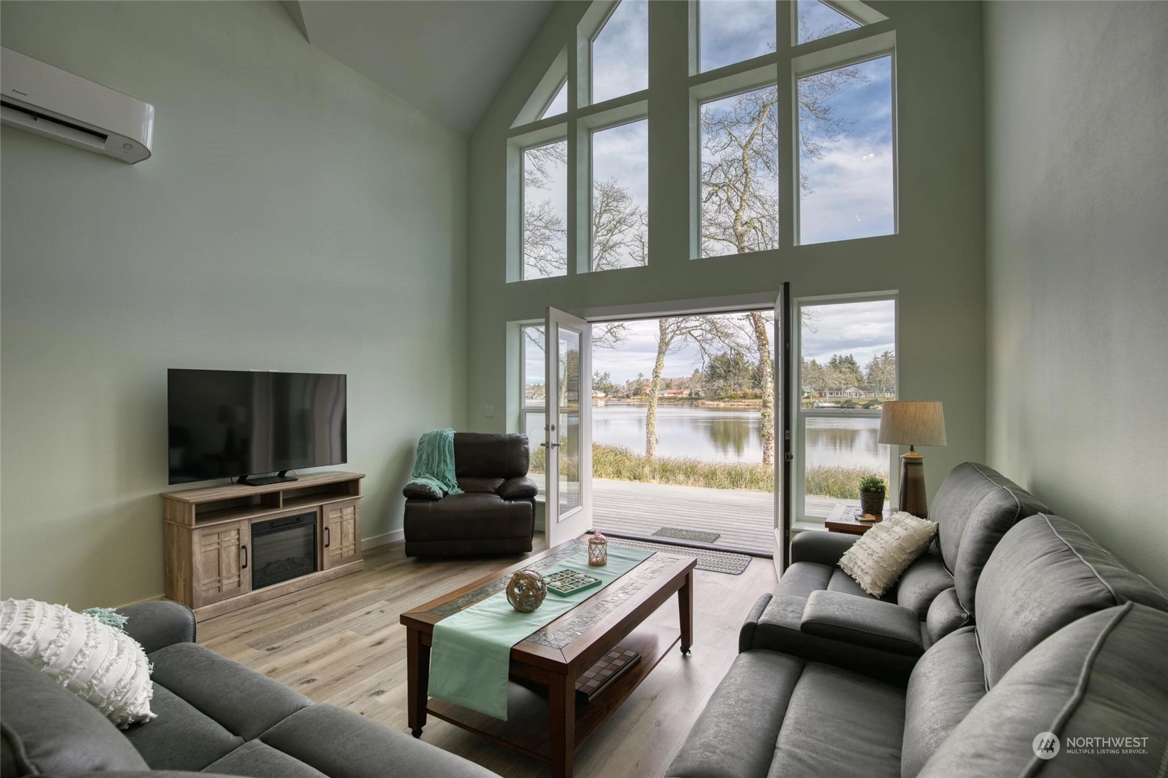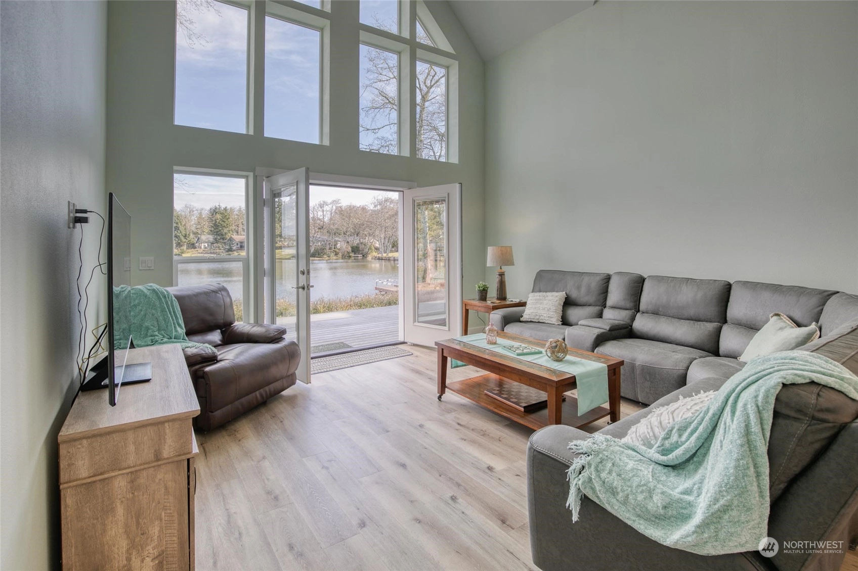 Stunning views of Duck Lake from nearly every room in the house on large lot w/67 ft of waterfront! Airy, open floor plan w/floor to ceiling windows that bathe the room w/light. Spacious kitchen w/island, breakfast bar, stainless steel appliances, white shaker cabinets & gorgeous counters. Primary suite on the main w/luxurious spa-like bath w/freestanding soaker tub. Second BR, mudroom & utility room also on the main. Upstairs is a loft, 3rd BR & additional room that is ideal for an office, craft room, exercise room! Most furniture is included. Easy access to miles of canals. OS Community Club includes access to indoor/outdoor pools, tennis courts, exercise room, clubhouse facilities & more. RV hookups. Detached 2 car garage. Come & enjoy!