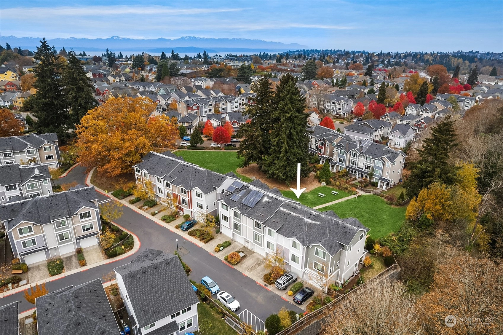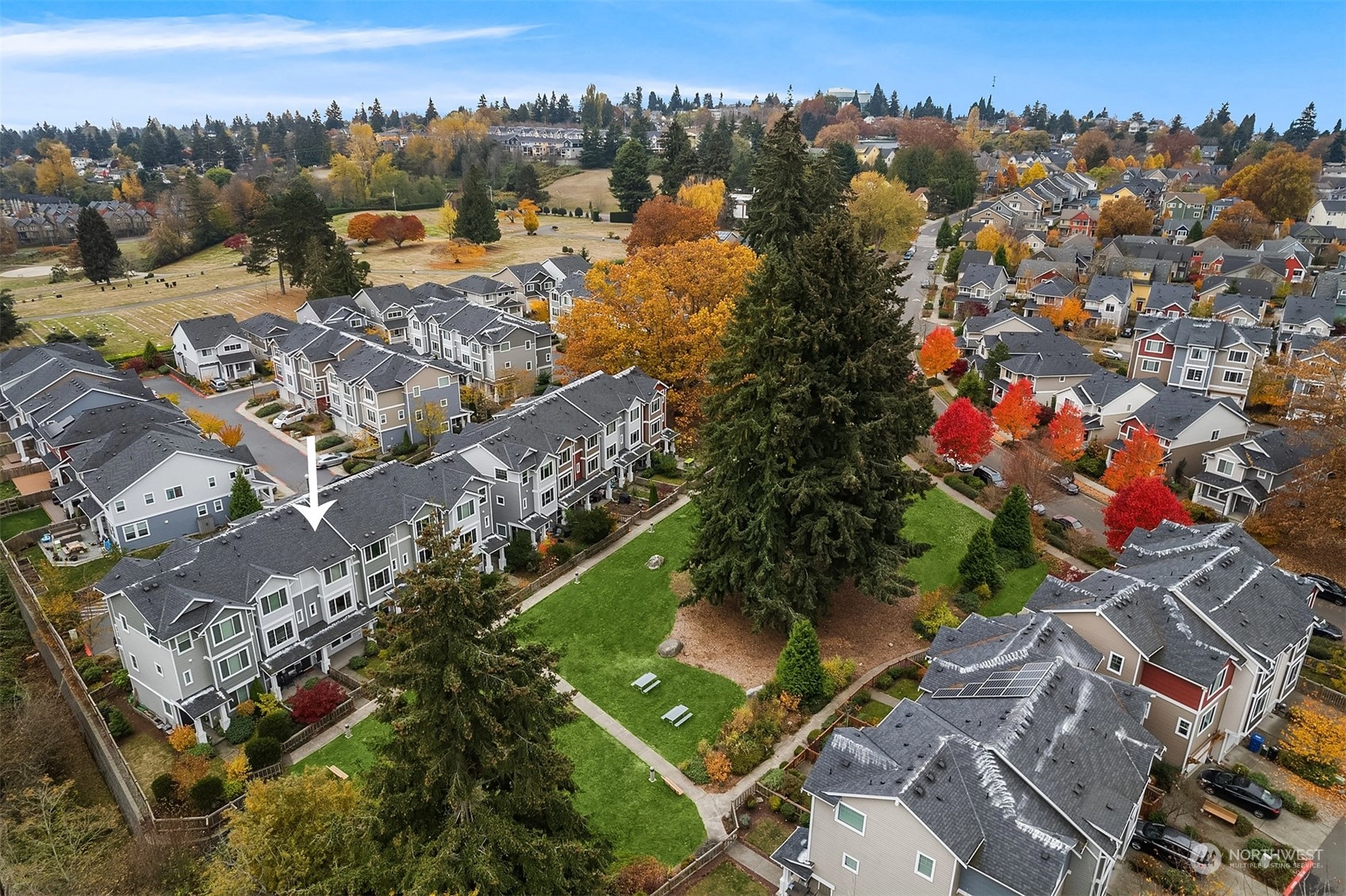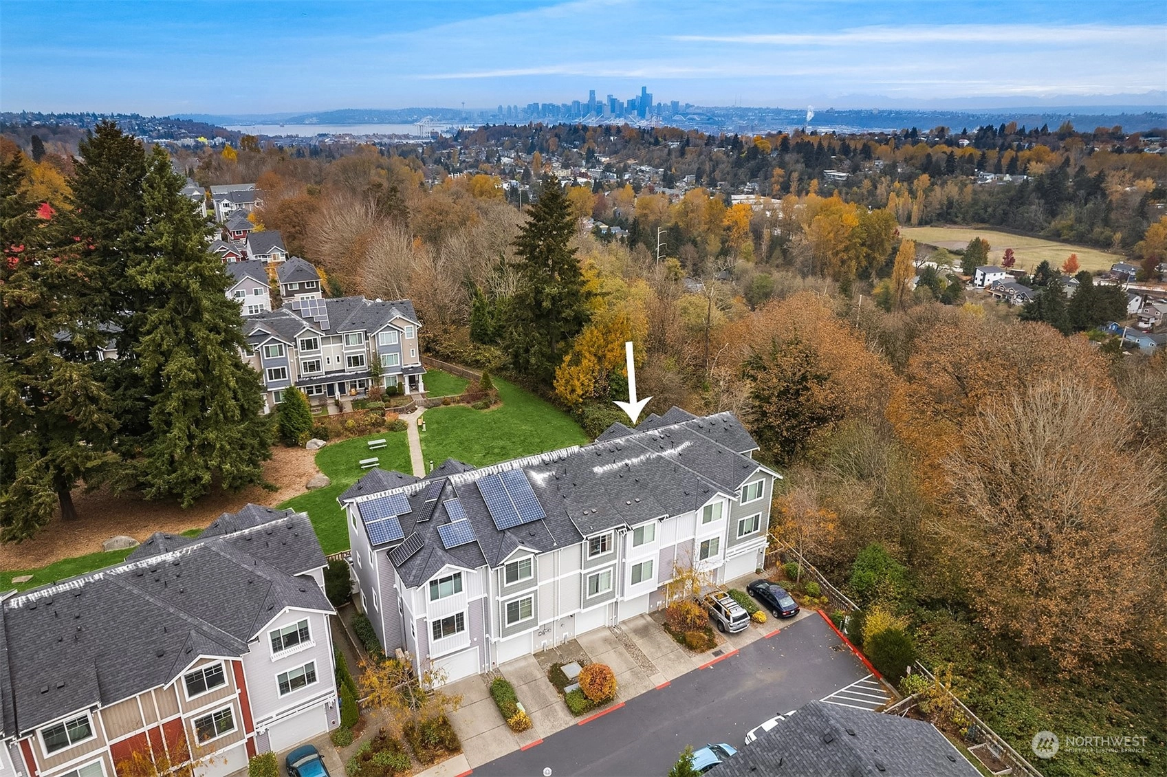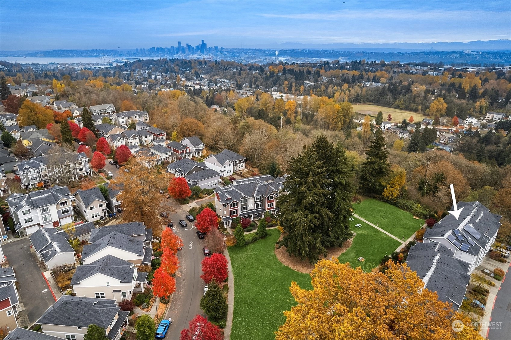 Exceptional townhome in an ideal location! Front door opens to a fenced front yard, spacious patio & a picturesque quiet park-one of many within the award-winning High Point community. Open floor plan & spacious living area w/ electric FP. Well-appointed kitchen w/ island, quartz countertop, stainless appliances, office nook & park views. Main floor features hardwoods & high ceilings. Two primary suites w/ large closets upstairs, office/den downstairs. Spacious 1-car garage w/ plenty of storage. Vibrant High Point location - amenities in every direction & quick jaunt to Alaska/Morgan Junctions, library, local parks or easy commute to DT. Not A condo...HOA dues incl. exterior maintenance (roof, siding, gutters) & common area maintenance.