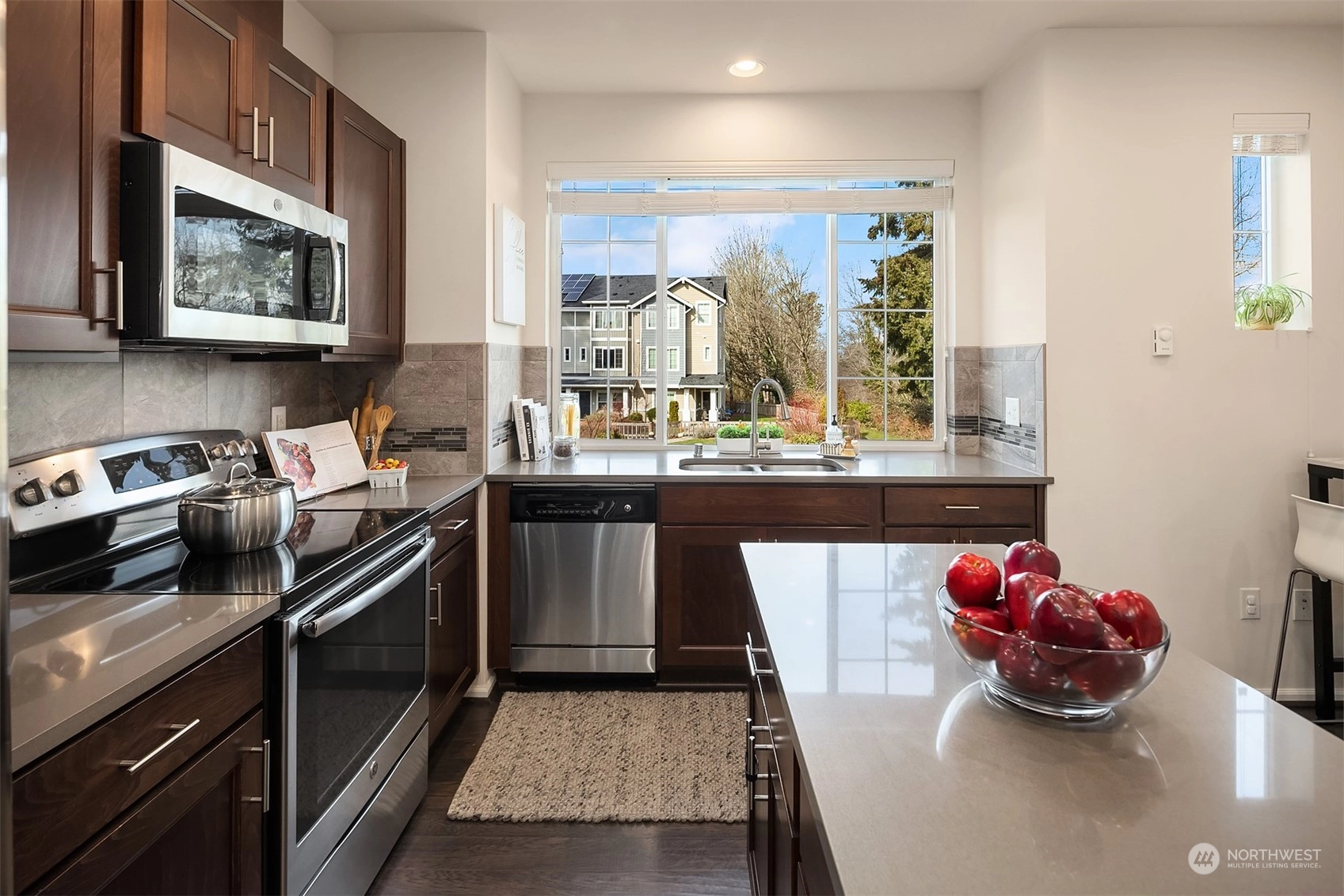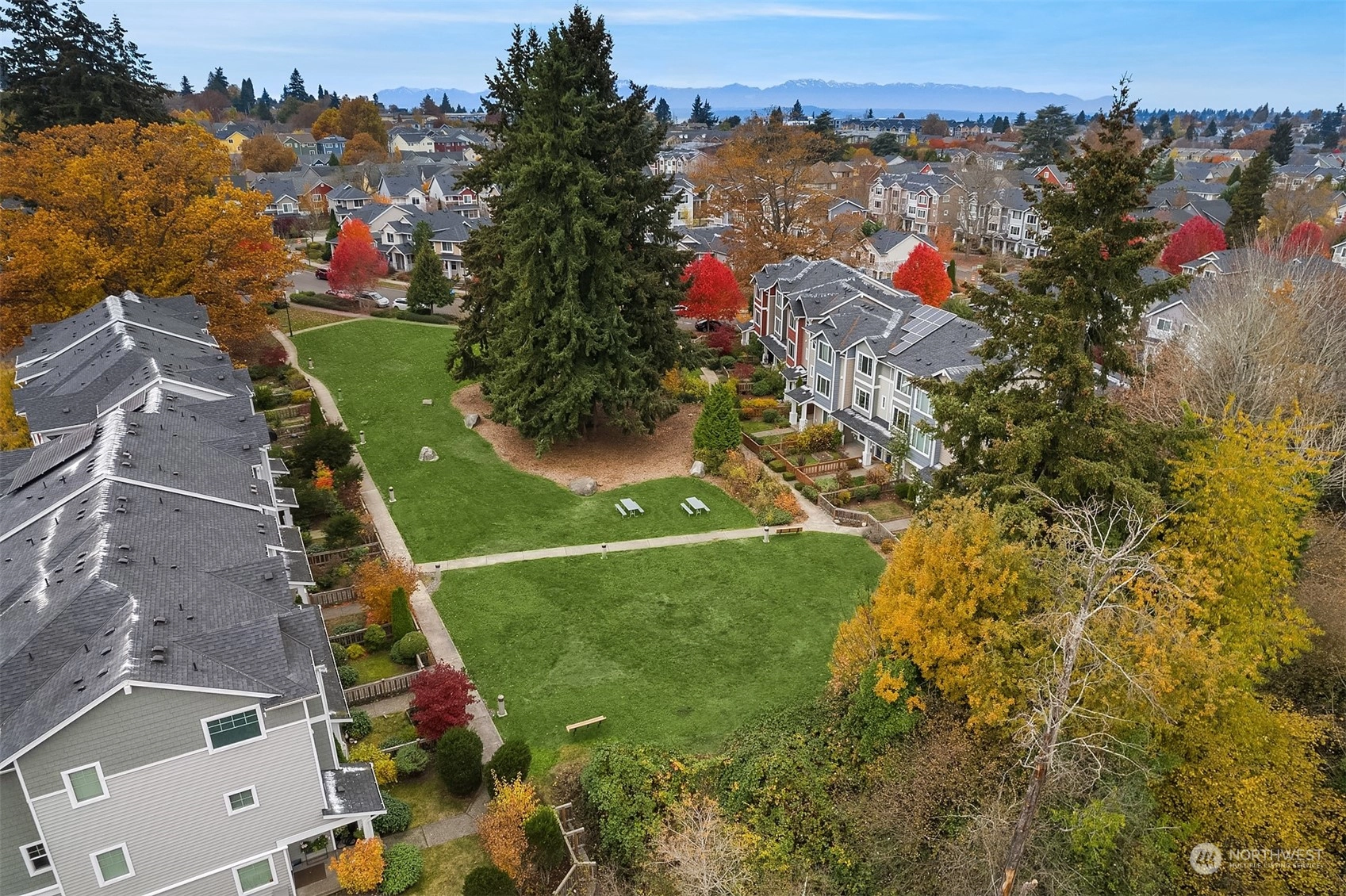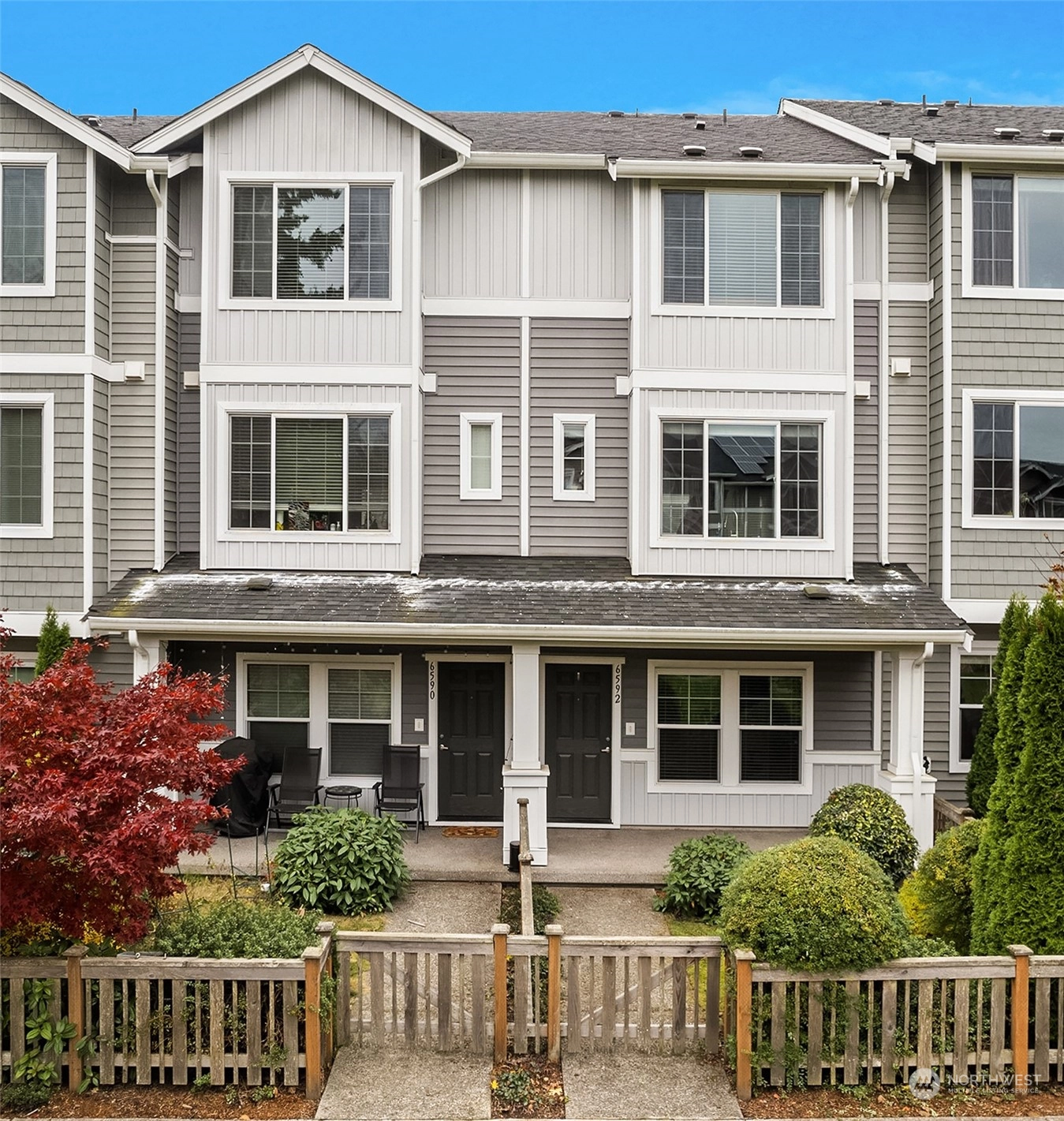 Exceptional townhome in an ideal location! Front door opens to a fenced front yard, spacious patio & a picturesque quiet park-one of many within the award-winning High Point community. Open floor plan & spacious living area w/ electric FP. Well-appointed kitchen w/ island, quartz countertop, stainless appliances, office nook & park views. Main floor features hardwoods & high ceilings. Two primary suites w/ large closets upstairs, office/den downstairs. Spacious 1-car garage w/ plenty of storage. Vibrant High Point location - amenities in every direction & quick jaunt to Alaska/Morgan Junctions, library, local parks or easy commute to DT. Not A condo...HOA dues incl. exterior maintenance (roof, siding, gutters) & common area maintenance.