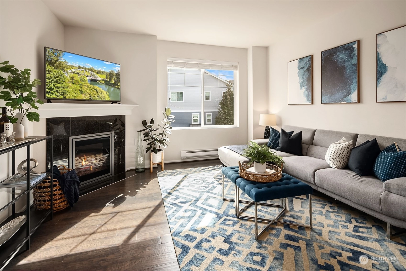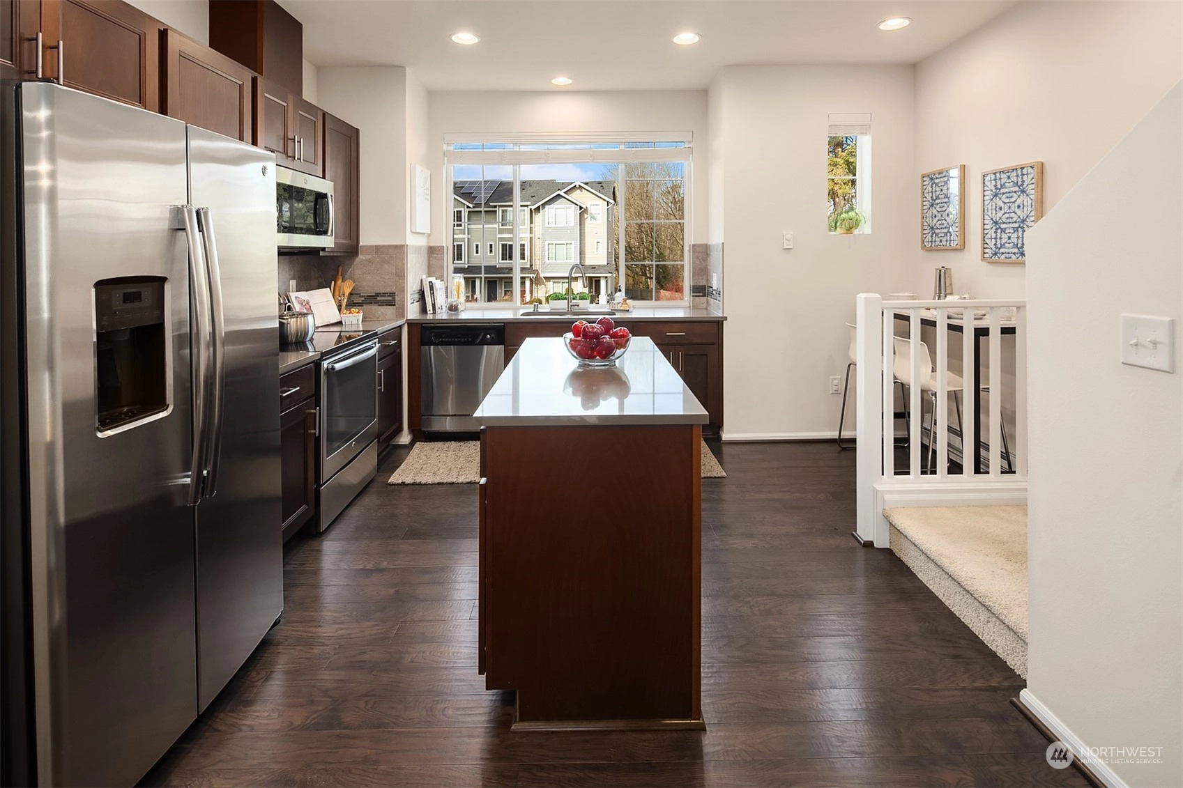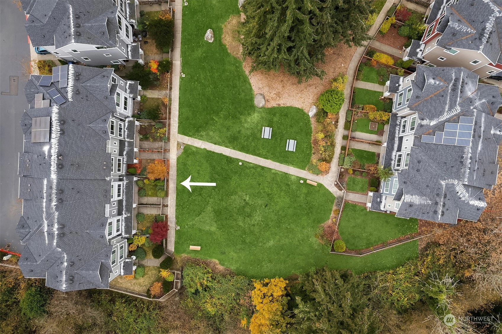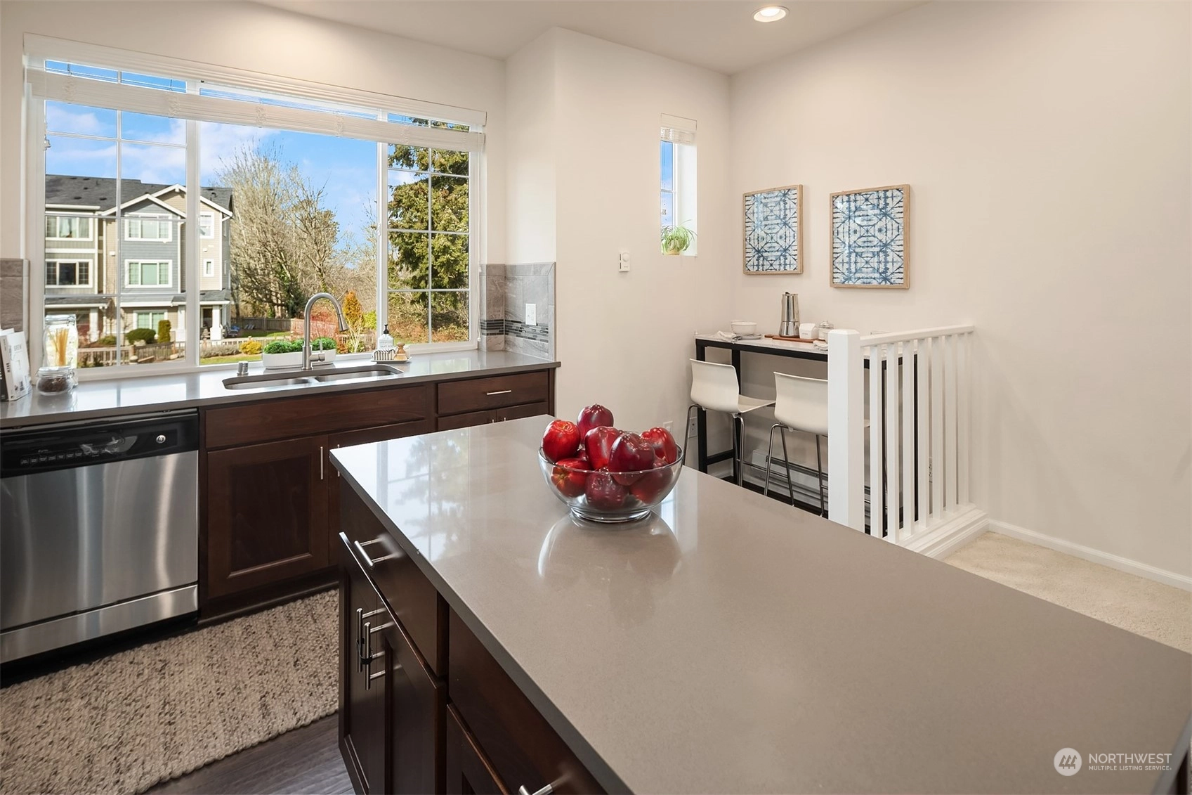 Exceptional townhome in an ideal location! Front door opens to a fenced front yard, spacious patio & a picturesque quiet park-one of many within the award-winning High Point community. Open floor plan & spacious living area w/ electric FP. Well-appointed kitchen w/ island, quartz countertop, stainless appliances, office nook & park views. Main floor features hardwoods & high ceilings. Two primary suites w/ large closets upstairs, office/den downstairs. Spacious 1-car garage w/ plenty of storage. Vibrant High Point location - amenities in every direction & quick jaunt to Alaska/Morgan Junctions, library, local parks or easy commute to DT. Not A condo...HOA dues incl. exterior maintenance (roof, siding, gutters) & common area maintenance.
