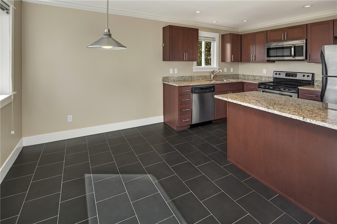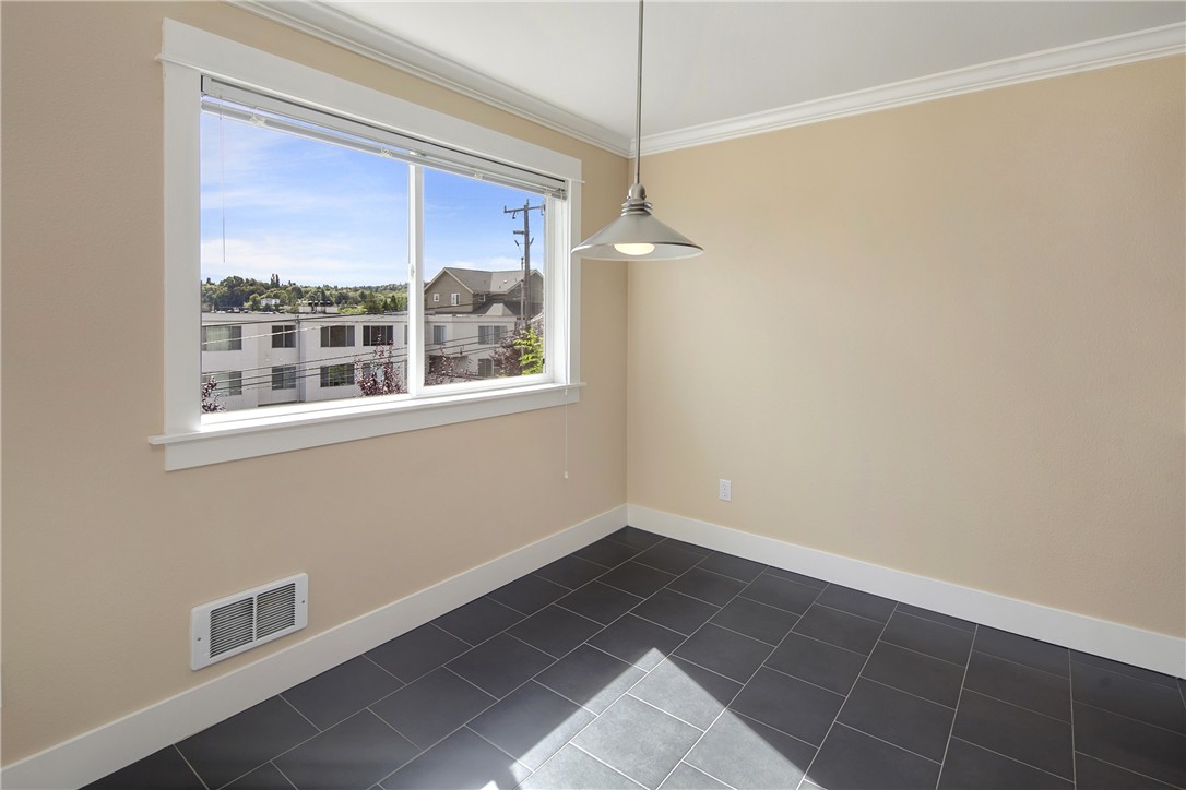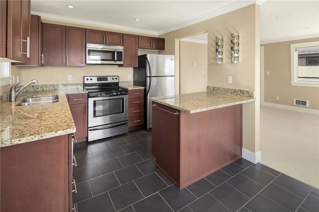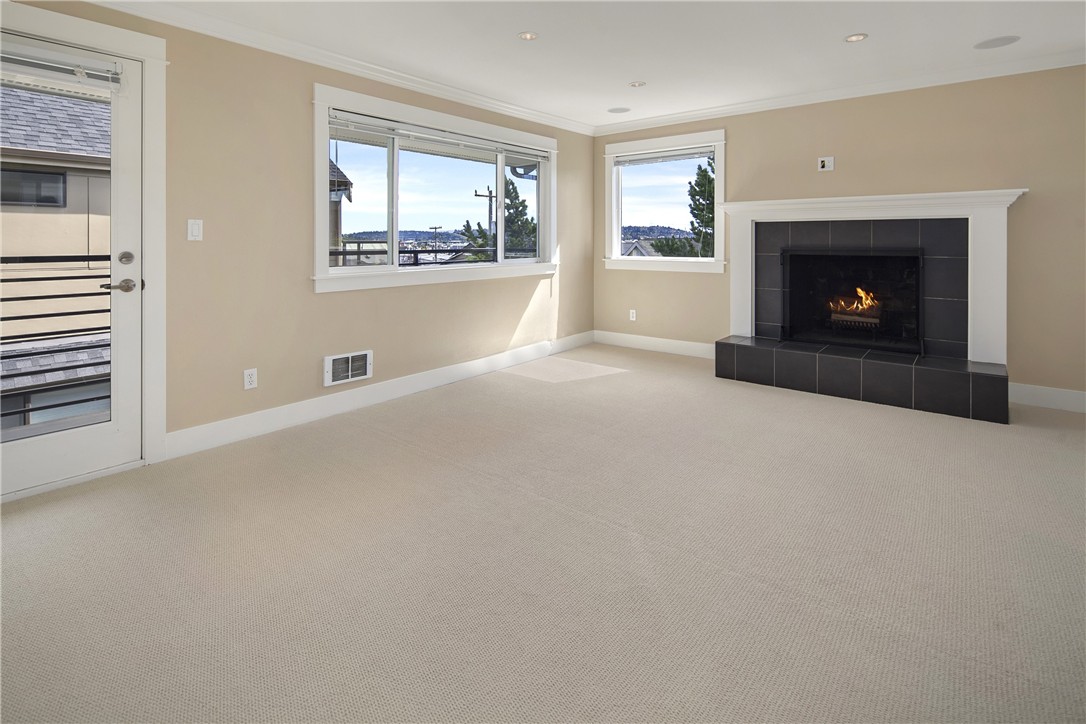 Well maintained, updated, top floor end unit 2 bed 1 bath 923 sqft condo with Mt, Canal, City views located in heart of Ballard. Features include: slab granite counter tops, cherry shaker-style cabinets, slate tile floor, stainless steel appliances, recessed lighting in kitchen. In ceiling surround sound speakers, recessed lighting, fireplace, storm door to resurfaced deck in living room. Slab granite counter tops, slate tile floor in bath. New berber carpet. Alley access 1-open parking space.