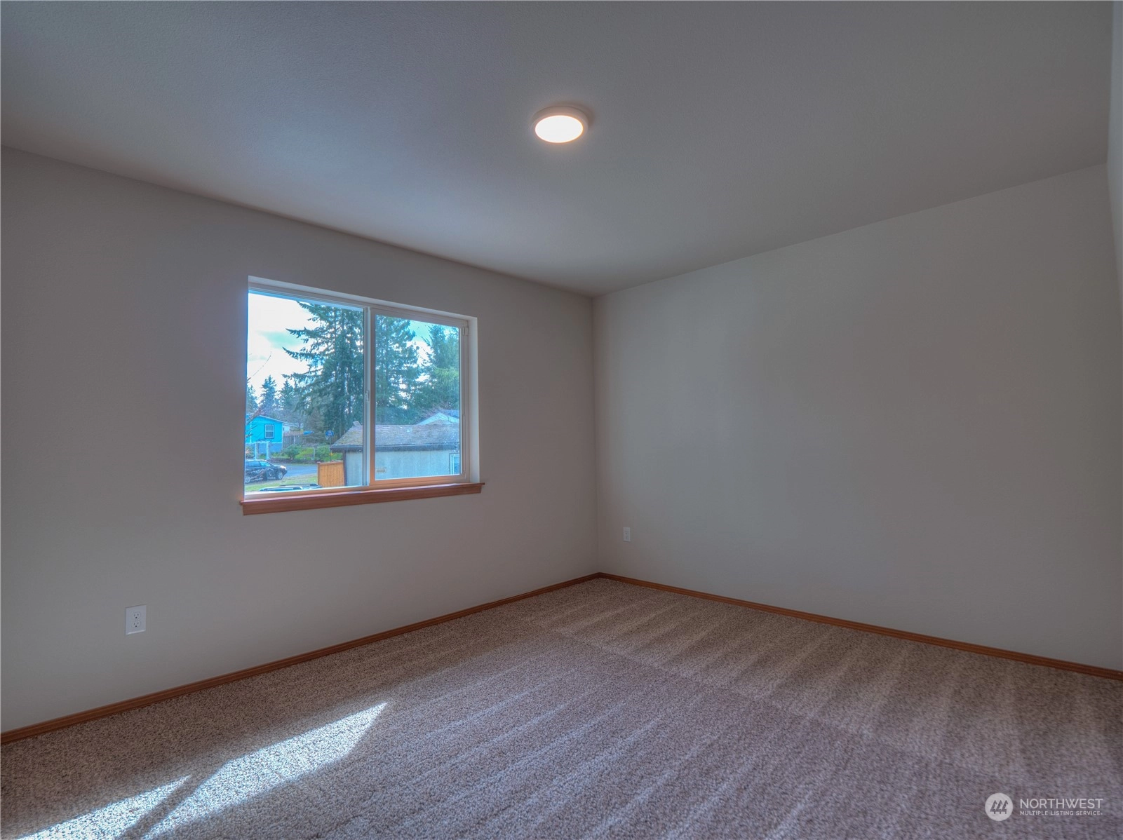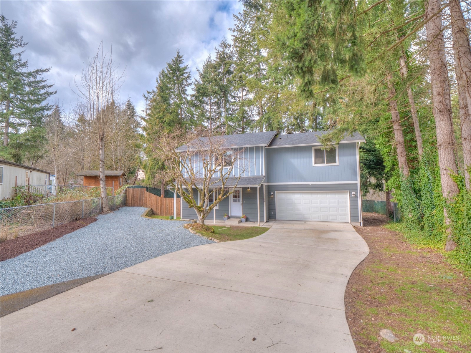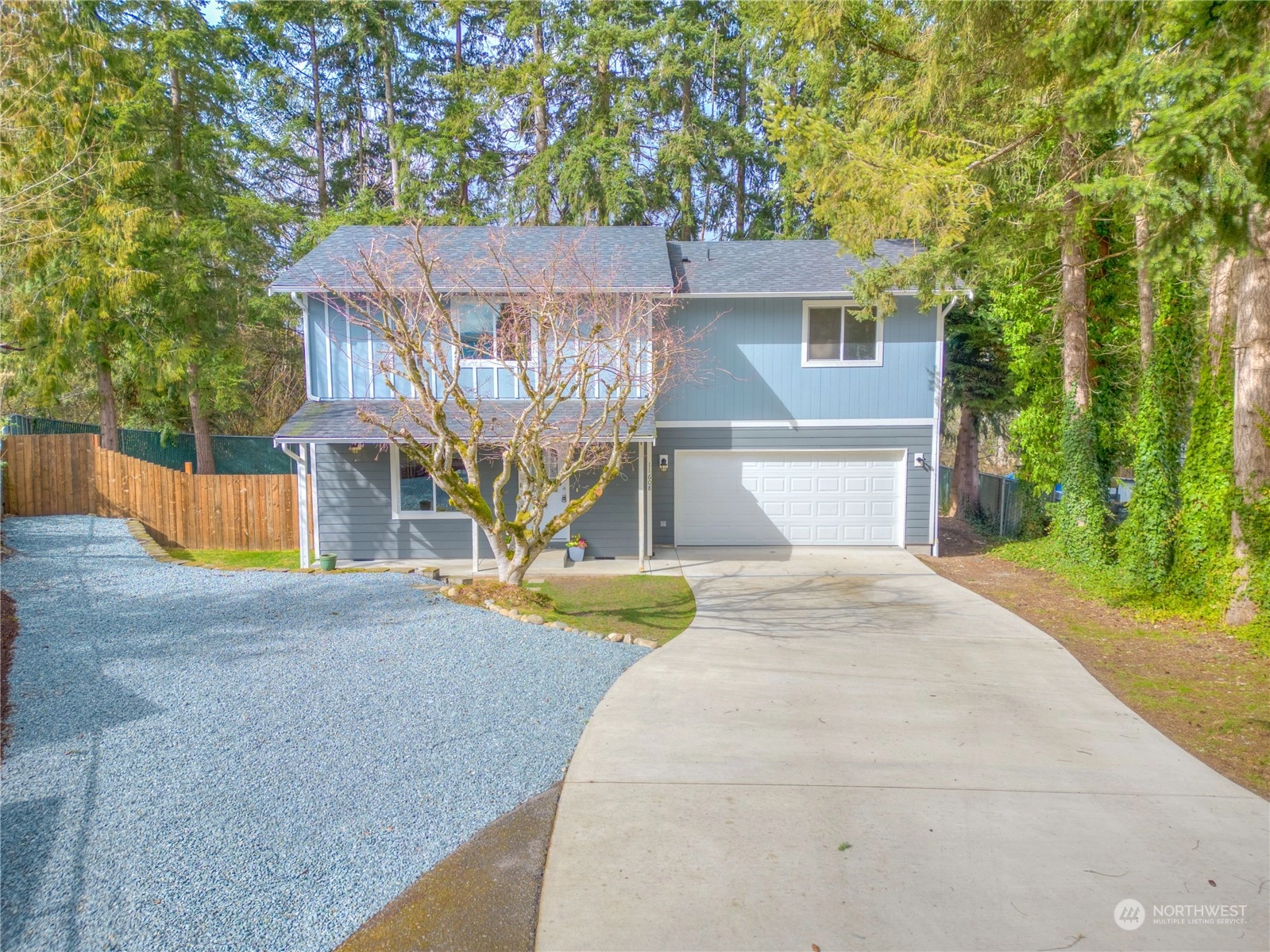 2017 built 3 bedroom, 2.5 bath home on a quiet cul-de-sac and large lot bordering neighborhood greenbelt. Open concept living/dining w/ hardsurface flooring. Spacious kitchen w/ stainless steel appliances. 1/2 bath downstairs. Efficient upstairs floorplan w/ 3 bedrooms, full guest bath, laundry/utility room, & a bonus/rec area. Primary bedroom w/ walk-in closet, private full bath, & dual vanity sinks. Sliding glass door adjacent to kitchen leads to private backyard and large deck. Attached 2-car garage w/ additional driveway/RV parking. Fresh interior paint, & new carpets in 2023.