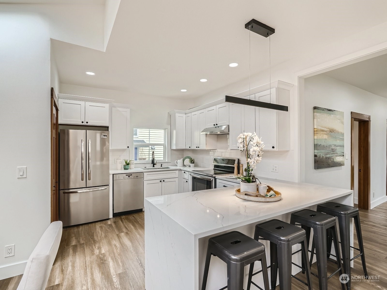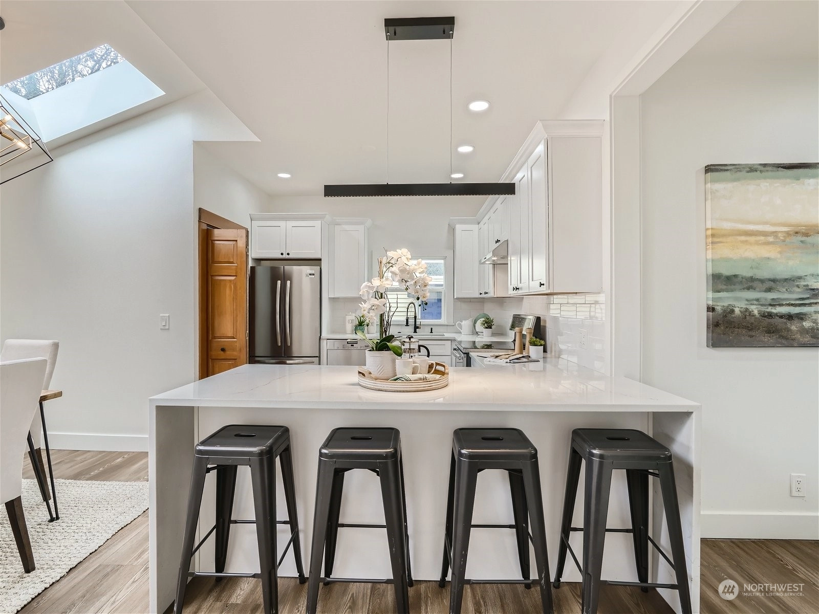 Imagine.. waking up in your massive top-floor primary suite, you begin your day with a cup of coffee on the private deck off the bedroom. After getting ready in one of your 3 newly remodeled bathrooms, you head downstairs to your light-filled lower level to get the guest area ready for that guest who is coming to visit for the weekend. In the future, you dream of converting this space into a profit-making ADU or a theater room. Once your guests arrive, you welcome them with some appetizers in your newly renovated kitchen with waterfall quartz countertop. After relaxing for a while, you all decide to walk to 'Stumbletown' to grab drinks and dinner at your favorite local restaurant. Can you imagine living here?